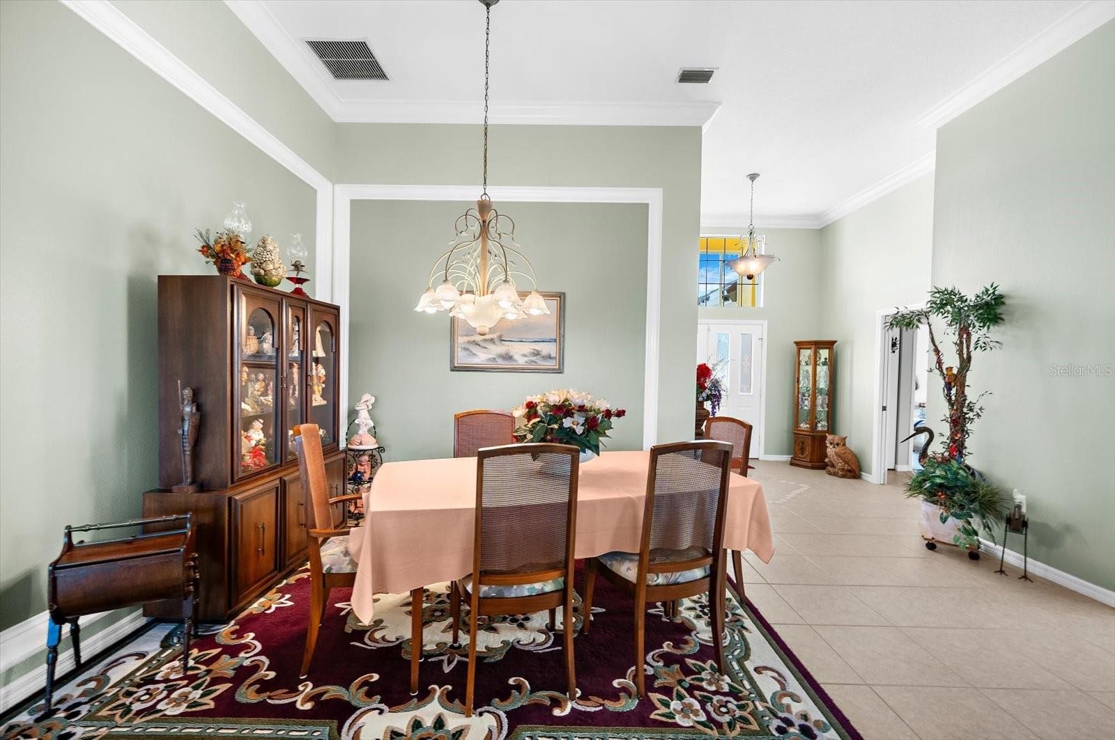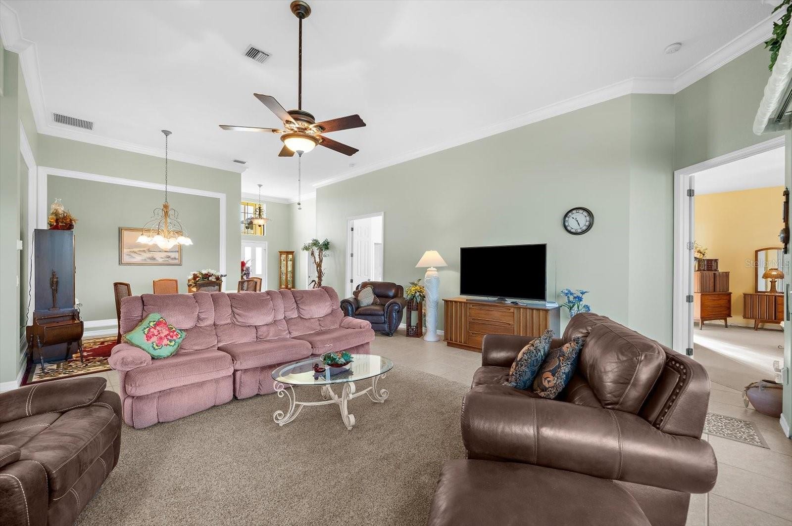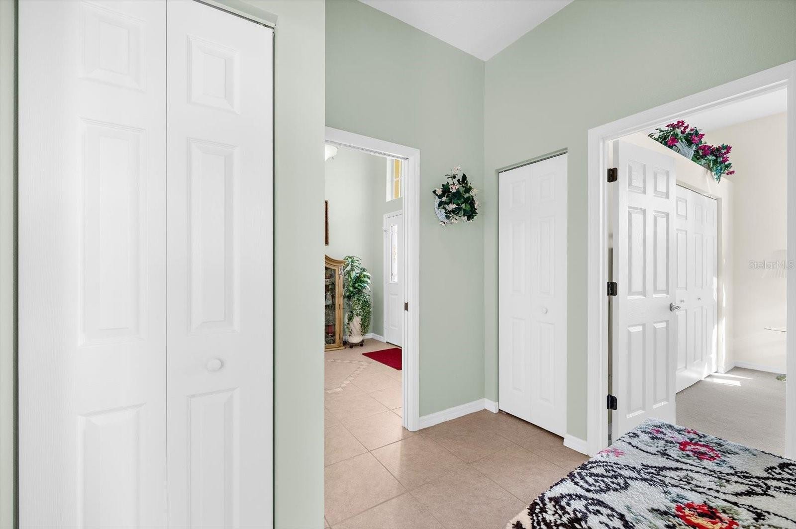 Custom built by J&J Homes, known for solid block construction and thoughtful design, this expansive 4-bedroom, 2-bath residence with an optional flex room sits on an oversized ?-acre lot with plenty of room for a pool and exceptional indoor-outdoor living. Flooded with natural light, the home feels bright and welcoming throughout. Soaring 12-foot ceilings, crown molding, and an open dining–living combination create an immediate sense of volume and comfort. The massive primary suite is a true retreat, featuring 12-foot ceilings, a large walk-in closet, and generous proportions rarely found. Storage is abundant throughout—double closets in every bedroom, linen closets in both bathrooms, additional hallway closets in the guest wing, and a laundry room complete with a utility sink and double closet. The newly remodeled kitchen features beautiful quartz countertops, abundant cabinetry, above- and below-cabinet lighting, and generous prep space—ideal for entertaining or everyday living. Natural light pours into the kitchen and main living areas, illuminating every space and enhancing the home’s open, airy feel. Enjoy both front and rear covered porches, offering inviting spaces to gather, relax, and entertain while taking advantage of desirable east and western exposure for morning light and evening sunsets. Recent upgrades include impact windows (2022), a new tile roof (2022), HVAC (2019), hot water heater (2023), well pump (2023), and kitchen appliances just 2.5 years old. Accordion shutters on the front and rear doors provide added hurricane protection. A 3-car garage offers ample space with room for overhead storage. Located in Flood Zone X, Lakes of Jacaranda offers a community pool, clubhouse, pickleball courts, scenic walking paths, no CDD fees, and a low annual HOA of approximately $900. All community roads have recently been repaved with no special assessments. This is a home defined by space, smart upgrades, and effortless Florida living. Schedule your private showing today.