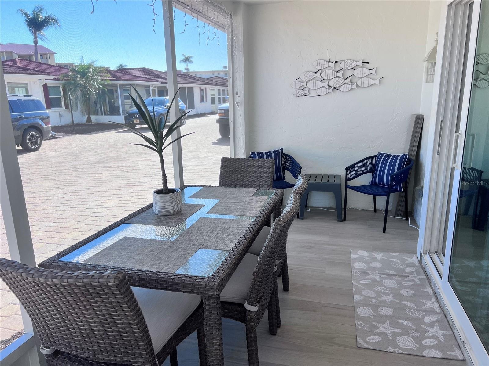 Enjoy your beach vacation in this beautiful large 2 bedroom, 2 bathroom private villa. Located halfway between the private beach and the pool/clubhouse. This unit can sleep up to 6 comfortably. Flat screen HD TV's in the living room and in each bedroom and ceiling fans throughout. Updated with tile throughout, and fully appointed kitchen with new stainless steel appliances. Roomy master bedroom with 1 queen bed and 1 full bed. Second bedroom with a king bed. Two recently renovated bathrooms with walk in showers and vanities with granite counter tops. Queen size sleeper sofa in spacious living room. Large screened in lanai and outdoor hot/cold shower. In unit wireless private WIFI. Casa Blanca is within a short distance of Crescent Beach Village restaurants and shops, with Siesta Key Village just a short drive north on the key.
