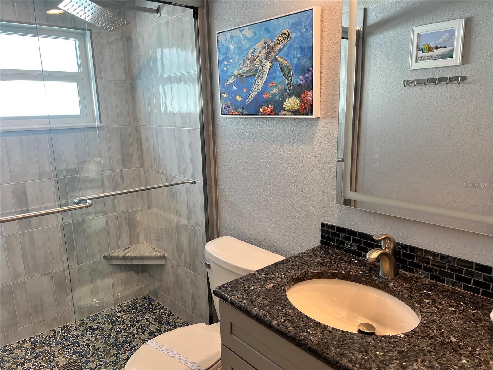 Find your Happy Place here in this LARGE 2 bedroom/2 bathroom, private entrance villa. There is new granite in the kitchen which is fully equipped. The master bedroom is furnished with a king size bed. The master vanity for the ladies comes with a hairdryer. The master bath features a walk-in shower with new tile and granite, all new from top to bottom. The second bedroom provides two double beds. The hall bathroom has also been redone with a walk-in shower and all new granite and tile. Relax on the private lanai just steps from the heated pool, recreation room, and beautiful Siesta Key Crescent Beach. The laundry room is just steps away. Take advantage of riding free up and down Siesta Key (Johnny's Free Ride - tips only). Shopping, restaurants, boutiques, and landmarks are all within a short distance. Villa B2 has all the comforts of home.