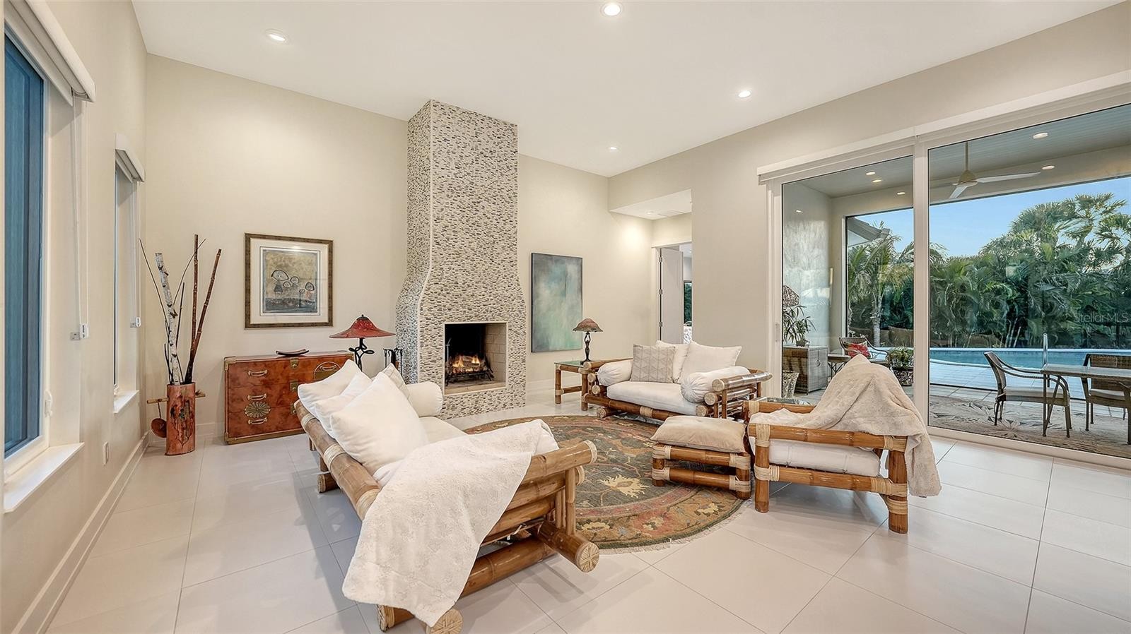 Tucked within Triton Cove, an intimate enclave of just 13 custom single-family residences, this exceptional coastal retreat at 617 Neptune Avenue delivers the privacy, tranquility, and structural confidence discerning buyers seek on Longboat Key. Ideally positioned at a quiet bend in the community and only steps from private beach access and the Gulf’s sugar-sand shoreline, this elevated concrete block home was thoughtfully designed for year-round peace of mind and storm resilience, without the burden of HOA fees. Designed by acclaimed architect Brian Phipps and built by Brista Homes in 2019, the residence offers a refined, single-level floor plan encompassing nearly 3,000 square feet of light-filled living space. Lush tropical landscaping surrounds the oversized corner lot, creating a true island sanctuary. A circular drive and double entry doors introduce interiors defined by soaring ceilings, expansive walls of glass, and clean, modern lines enhanced by elegant white tile flooring throughout. The open living and dining areas flow effortlessly to the outdoors through 10’ sliders, inviting natural light and serene garden and pool views into nearly every room. At the heart of the home, the gourmet kitchen is equally suited for everyday living and entertaining, featuring custom cabinetry with dovetail construction and soft-close hardware, striking quartzite countertops and backsplash, a center island, and a full suite of top-tier KitchenAid appliances, including an induction cooktop and double ovens. Seamless indoor-outdoor living defines the experience, with a generous covered and screened lanai overlooking a spectacular 40-foot heated pool, shell stone paver deck, and private hot-and-cold outdoor shower. The fenced yard offers additional privacy with a shell walking path and secluded seating areas, ideal for quiet reflection or intimate gatherings beneath the palms. The owner’s suite is a tranquil retreat with direct views of the pool, an oversized walk-in closet, and a spa-inspired bath featuring dual vanities, a walk-in shower, whirlpool tub, and seated makeup vanity. Two additional guest suites, each with en-suite baths, ensure comfort and privacy for family and visitors alike. Additional highlights include hurricane-impact windows and doors throughout for all-season security, a river-stone wood-burning fireplace, powder room, large laundry room with quartz counters and Electrolux washer and dryer, electric blinds, custom lighted mirrors, and an oversized two-car garage pre-wired for an EV charging station with additional parking via a separate driveway. Enjoy the rare combination of seclusion and convenience—just moments from Publix, Bayfront Park, tennis courts, leisure trails, golf, fishing, and the world-class shopping and dining of St. Armands Circle, with easy access to downtown Sarasota. Nearby deep-water marinas accommodate large yachts, completing the quintessential island lifestyle. This is a rare opportunity to own a secure, serene, single-family coastal home designed for both elegance and peace of mind in one of Longboat Key’s most exclusive, low-density communities. Schedule your private showing and experience the calm, elevated beauty of Triton Cove living.