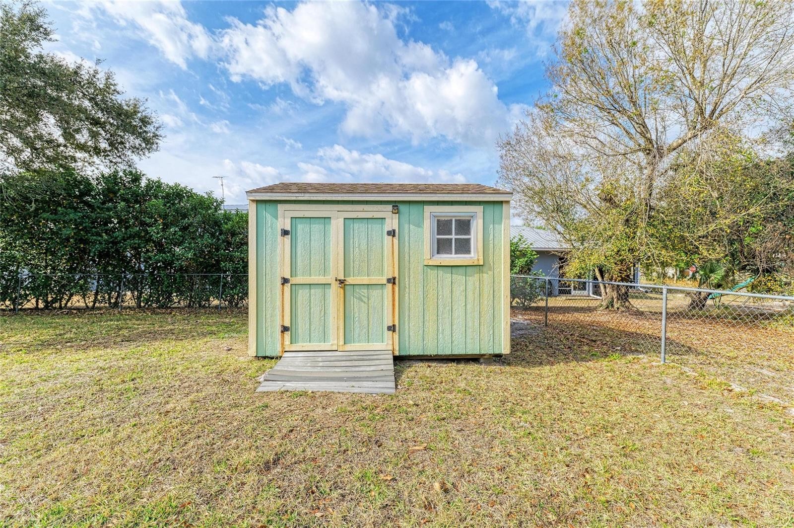 Oversized lot with a fully fenced backyard — no HOA restrictions, so bring your toys and pets! Situated on a very quiet street and surrounded by mature landscaping, this property offers privacy and a peaceful setting. Featuring a 2023 roof and hurricane shutters for added peace of mind. Enjoy outdoor living year-round with screened-in lanais in both the front and the back of the home — perfect for relaxing or entertaining. The primary bedroom features French doors leading directly to the screened-in porch, creating a private retreat with seamless indoor-outdoor flow. There is also an additional pavered area ideal for outdoor dining and grilling. The kitchen is beautifully updated with quartz countertops, a custom subway tile backsplash, farmhouse sink, newer appliances, reverse osmosis system, and both upper and lower cabinet lighting. This home offers three spacious bedrooms arranged in a desirable split floor plan for added privacy. The two secondary bedrooms share a full bathroom that has been recently updated with a new shower surround and vanity. Crown molding adds an elegant touch throughout the main living areas. The primary bathroom has also been updated with a newer dual-sink vanity and new tile flooring. The shed out back conveys with the sale and provides excellent extra storage space. Light, bright, and full of charm — this move-in ready home is one you won’t want to miss!