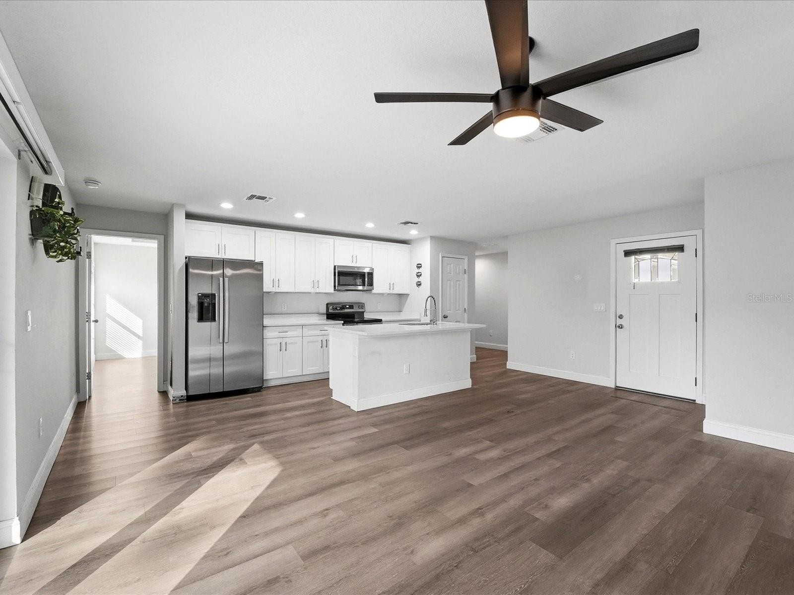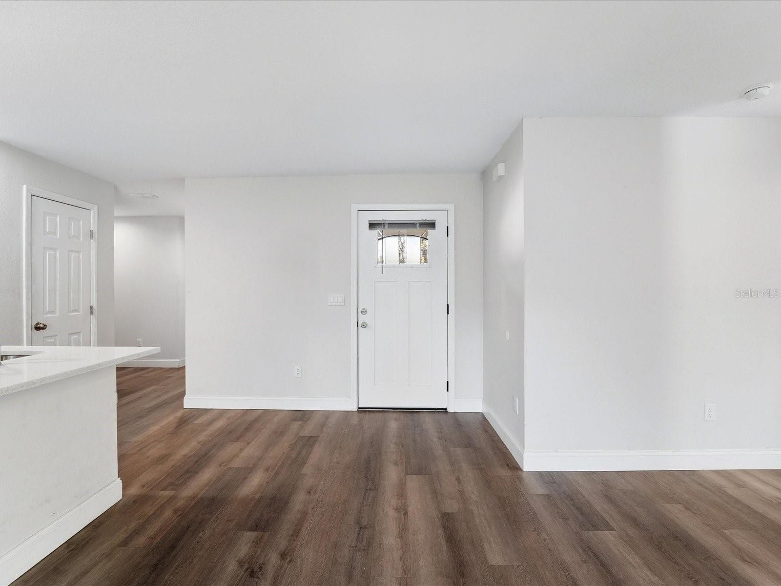Short Sale. Sale is subject to lender approval of the buyer’s offer. Welcome to this beautifully designed, energy-efficient 3-bedroom, 2-bathroom home with a two-car garage, built in 2022 and ideally located in the heart of North Port, Florida in a NO flood zone. This thoughtfully crafted residence blends modern design, quality finishes, and an open, inviting layout that is perfect for both everyday living and entertaining. As you step inside, you are immediately greeted by high ceilings and an open-concept floor plan that creates a bright, airy atmosphere throughout the main living areas. Luxury vinyl flooring flows seamlessly through the entire home, offering both durability and contemporary style, while double-pane windows enhance energy efficiency and allow natural light to pour in. The kitchen is truly the centerpiece of the home, designed with both beauty and functionality in mind. It features 42-inch shaker-style cabinetry with soft-close hinges, stunning quartz countertops, and recessed lighting that adds a clean, modern touch. An extended center island provides generous space for meal preparation, casual dining, or gathering with family and friends. The kitchen opens directly into the living room, creating effortless flow and connection, and includes a walk-in pantry for ample storage. The sink is perfectly positioned to overlook the living area, making entertaining and everyday living equally enjoyable. The spacious living and dining areas continue the open feel of the home, offering plenty of room for hosting guests or relaxing at the end of the day. This layout is ideal for creating a comfortable yet functional living space that adapts easily to your lifestyle. The owner’s retreat is a true sanctuary, offering an oversized bedroom with recessed lighting and a calm, welcoming ambiance. The suite features two generously sized walk-in closets, providing exceptional storage and organization. The ensuite bathroom is equally impressive, showcasing dual vanities with quartz countertops, a large walk-in shower, and a private water closet tucked behind its own door for added comfort and privacy. The additional bedrooms are well-proportioned and thoughtfully designed, each offering ample closet space and flexibility for guests, family members, or a home office. The guest bathroom is conveniently located and tastefully finished, easily accommodating both bedrooms. Step outside to enjoy the expansive backyard, where a cement patio area provides the perfect foundation for outdoor seating, grilling, or future entertaining space. The backyard is generously sized and enhanced by trees lining the rear of the property, offering a sense of privacy and a peaceful, natural setting—ideal for enjoying Florida mornings and evenings. With its modern finishes, open layout, energy-efficient features, and spacious indoor and outdoor living areas, this home offers both comfort and functionality in a growing and desirable area. Conveniently located near Myakkahatchee Creek, Coco Plum Shopping Center, and the Myakka River, you’ll enjoy easy access to shopping, dining, outdoor recreation, and all that North Port has to offer. This move-in-ready home is the perfect opportunity to enjoy modern Florida living at its finest.