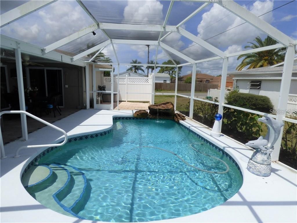 Turnkey Furnished 3-Bed, 2-Bath Pool Home on Oversized Corner Lot! This beautifully maintained home is move-in ready—perfect as a full-time residence or vacation retreat. Step inside to an open floorplan that blends comfort and style, featuring updated flooring throughout and a spacious living area with a stunning floor-to-ceiling window that fills the space with natural light. The kitchen is a chef’s delight with granite countertops, ample cabinetry with roll-out shelves, and a large window that overlooks the sparkling pool. Adjacent, the open dining area offers sliding glass door access to the screened lanai, where you’ll find a fully equipped outdoor kitchen with running water and a gas fireplace—ideal for entertaining or relaxing poolside. The private primary suite boasts a large updated bathroom, generous his-and-her closets, and direct access to the pool area through sliding glass doors. Two additional bedrooms are smartly designed with Murphy beds, providing flexible use as guest rooms, home offices, or hobby spaces. Storage is abundant throughout, including a large outdoor workshop/storage building. Ideally located close to shopping, dining, medical facilities, and with easy access to US 41, I-75, and the stunning beaches of Southwest Florida—this home truly has it all!