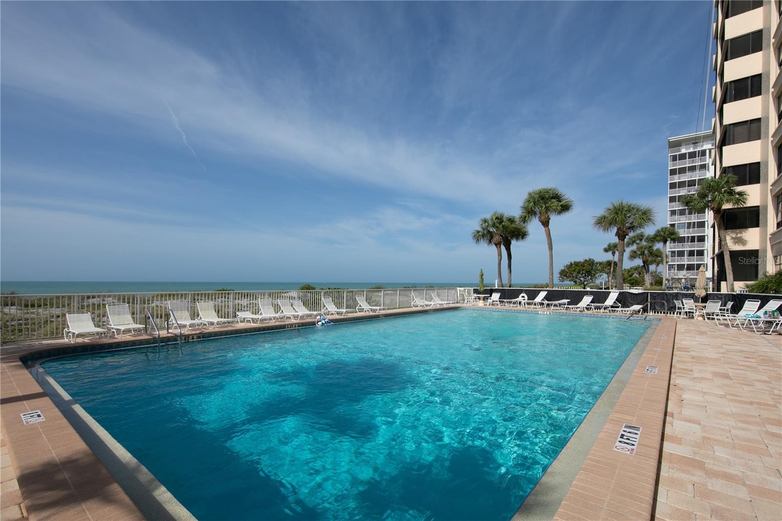 FULLY UPDATED. HURRICANE RATED WINDOWS/DOORS. TURNKEY FURNISHED. MOVE-IN READY. WASHER/DRYER IN UNIT. BEACHFRONT LIVING. Welcome to Valencia on the Gulf, an award-winning beachfront community on Venice Island. This light and bright CORNER RESIDENCE offers 1,284 square feet of refined coastal living, featuring 2 bedrooms, 2 bathrooms, and 2 private screened lanais - one off the dining room and another off the primary suite. You’ll enjoy the beautiful Florida sunsets and tranquil partial Gulf views from the living room, bedrooms, and lanai off the primary suite, and the peace of mind that comes from the newer condo’s windows and doors (2018) that meet current hurricane standards. The kitchen features updated cabinetry, granite countertops, a custom tile backsplash, under-cabinet lighting, stainless steel appliances, and breakfast bar. The primary suite is a spacious retreat with a large walk-in closet and an ensuite bathroom featuring a walk-in shower and an in-unit stackable washer/dryer for the convenience of private laundry. Both bathrooms feature updated showers and cabinetry with granite counters. The roomy second bedroom has plenty of space for your guests. Easy-maintenance Luxury Vinyl Plank flooring flows through the living area and bedrooms, complemented by ceramic tile in the kitchen, dining area, and baths. Additional peace of mind comes from the newer A/C (2021) and Water Heater (2019). Valencia on the Gulf is impeccably maintained with a strong balance sheet and onsite management and maintenance. Recent major capital improvements include NEW ROOFS (2023), EXTERIOR PAINTING (2024), and NEW CARPORTS (2025). This is a very social and AMENITY RICH community, featuring a party room with a full kitchen in your building, newly renovated FITNESS ROOM and library/card room located on the ground floor of the North Building, gas BBQ grills, shuffleboard court, one assigned/covered parking space, bike storage, and a storage closet for beach essentials on the ground floor. The community ensures security with cameras and key fob access to the elevators and all amenities. Living at Valencia on the Gulf also means you will have 376’ of PRIVATE BEACH as your backyard and a large, heated BEACHFRONT POOL for year-round enjoyment. Located within walking distance of historic downtown Venice’s boutique shops and dining, this is the turnkey Florida lifestyle you’ve been waiting for. Call today for your private tour!