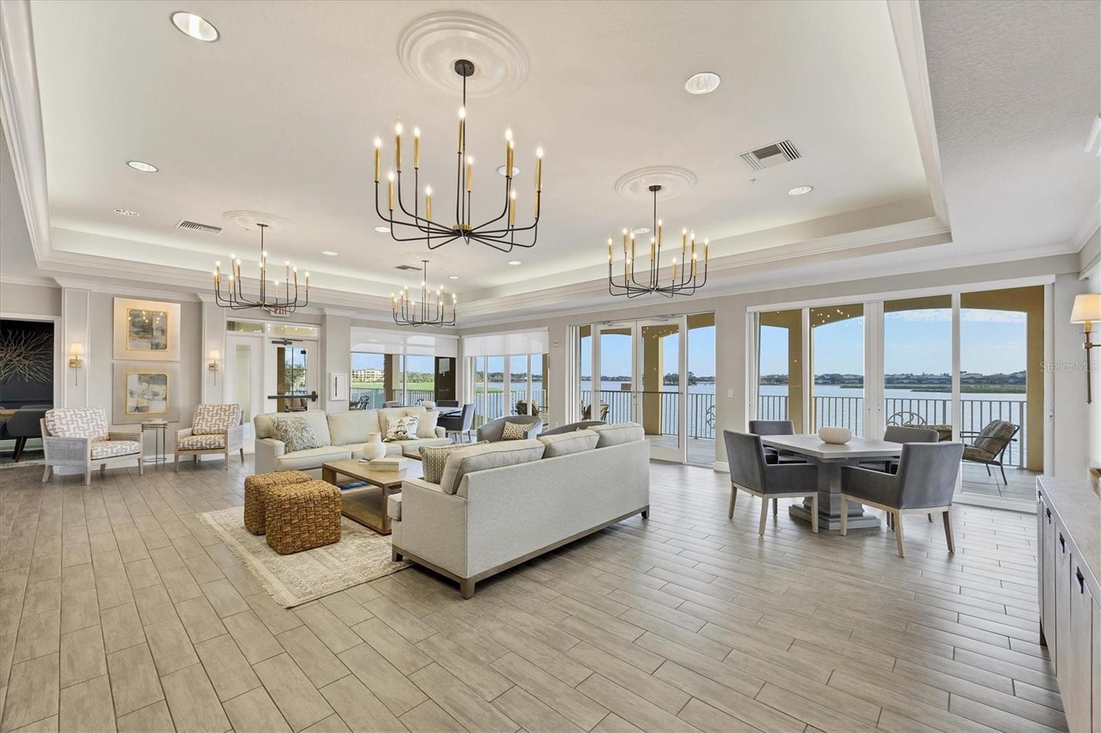 Lakefront, Three bedroom, Two Bath Penthouse Located in Watercrest of Lakewood Ranch with Glorious Views! Oversized Two car enclosed garage with upgraded epoxy flooring, a bump out enough to store a golf cart or plenty of storage. Engineered Wood Flooring in Great room and triple 8ft sliders to your expansive screened in Lanai exhibiting a Breathtaking view of Lake Uhlein! Preferred Morning sun with plenty of light into the unit, while the afternoon sun is setting behind the building. Open Kitchen concept with upgraded induction range and Stainless Steel Appliances. Granite counters, Breakfast Bar, and 42" Wooden Cabinetry, and large pantry closet compliment your cooking experience with a view of the Lake. Large King size Primary Bedroom with access to Lanai, two walk-in upgraded Custom Closet Cabinetry. Primary Bath featuring custom tile with frameless shower enclosure, Dual Sinks and Large Soaker Tub. Split floor plan Guest bedrooms up front with Guest Bath off hallway. Separate Laundry room with full size washer/dryer, sink and built in iron board. Lakewood Ranch, is an award winning Master Planned community, has glorious weather, and a perfect location to all. Inland, and safe during storms. Golf Courses, world renowned Siesta, Lido, & Longboat Key, and Anna Maria Island Beaches, Boating, Fishing, Biking, walking trails, etc ...hobbies you can enjoy year round! Short drive to UTC Mall and numerous restaurants. Downtown Sarasota, a jewel of a city with Hip chic vibe, wonderful restaurants...Historic Bradenton, more wonderful restaurants and rooftop bars, and cultural venues to explore. Several international airports within an hour drive or less. Welcome to the Gulf Coast of Florida, a lifestyle second to none!