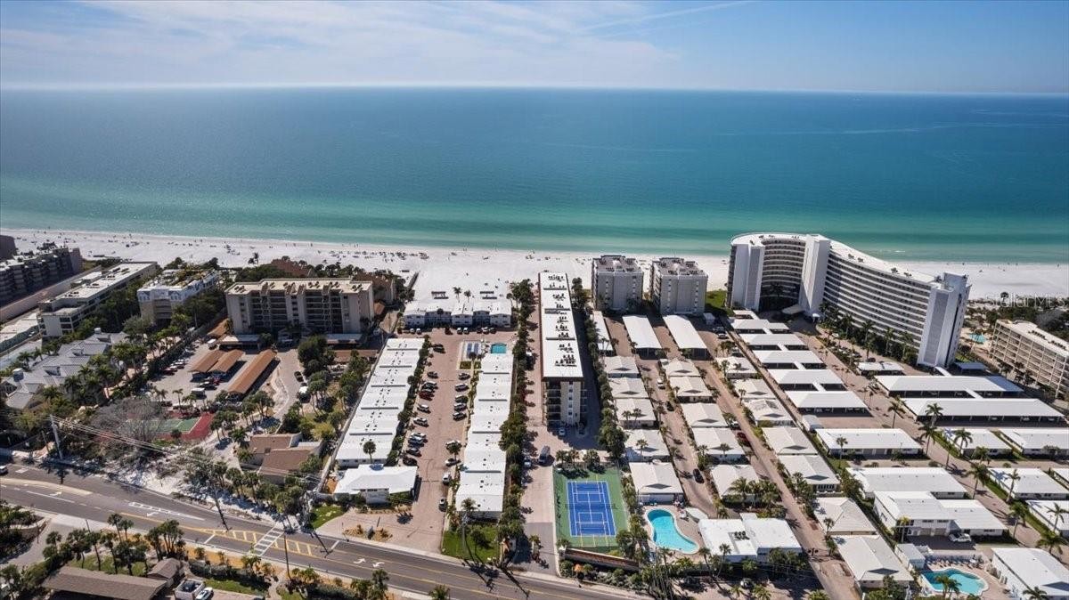 This lovely 1,496 SQ FT, 2 bedroom 2 bath condo has been nicely UPDATED in 2024 and 2025. 2024 UPDATES include, a NEW KITCHEN, STAINLESS STEEL APPLIANCES, LVP FLOORING, COUNTER TOPS, and a IN UNIT LAUNDRY ROOM. 2025 UPDATES include a NEW A/C SYSTEM, IMPACT WINDOWS, IMPACT SLIDERS, SOLID CORE INTERIOR DOORS, BASEBORDS, and CROWN MOULDING. The condo has also been FRESHLY PAINTED. In 2025, the entire El Presidente property has had a NEW ROOF installed, RESURFACED PICKLEBALL COURTS, and a NEW POOL BATH AREA. The MILESTONE SURVEY IMPOVEMENTS have begun and are scheduled to be COMPLETED SUMMER OF 2026. El Presidente is a GATED, BEACH SIDE property located directly on SIESTA KEY, and has its own PRIVATE BEACH ACCESS & BEACH FRONT POOL. El Presidente also features a BEACH FRONT OWNERS LOUNGE complete with an ON SITE SAUNA and EXTERIOR GUEST CHANGING ROOMS. HARD TO FIND, El Presidente boasts an ON SITE, HANDS ON, PRO-ACTIVE MANAGEMENT/RENTAL that will provide you with certainty of care and ease of ownership. This property is nicely positioned to be your primary residence, 2nd home, or income generator. This is YOUR opportunity to own a slice of paradise with the benefit of knowing that the heavy lifting has been done. Call me today to schedule arrange your private viewing!