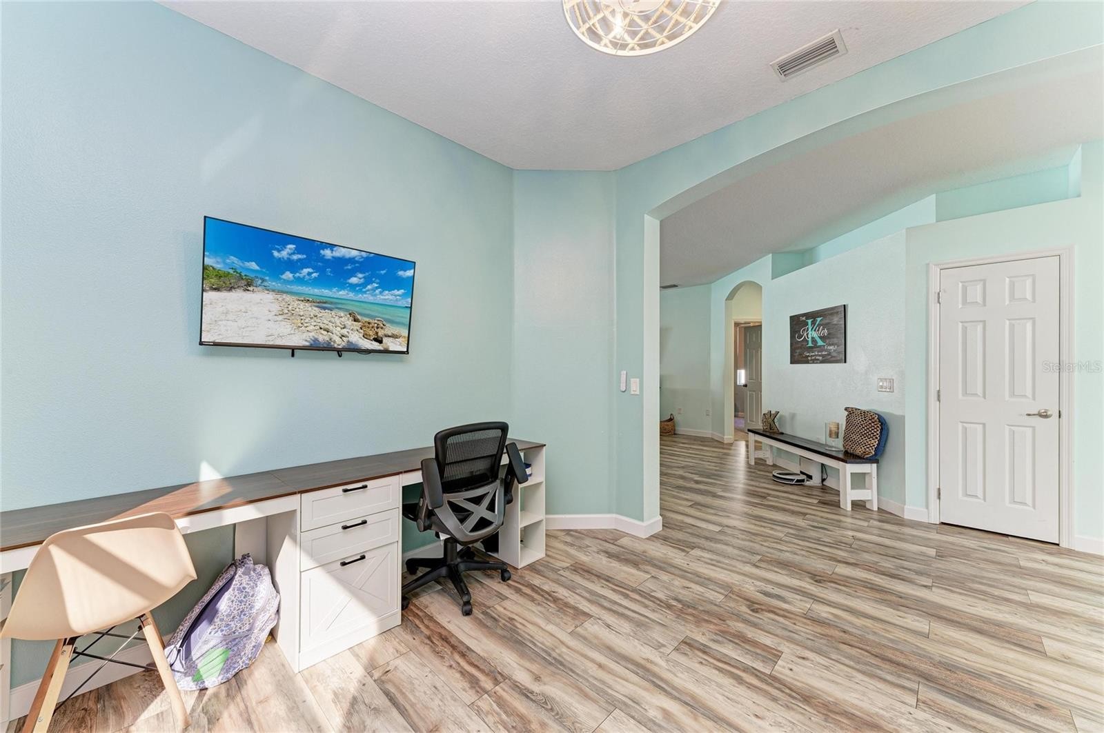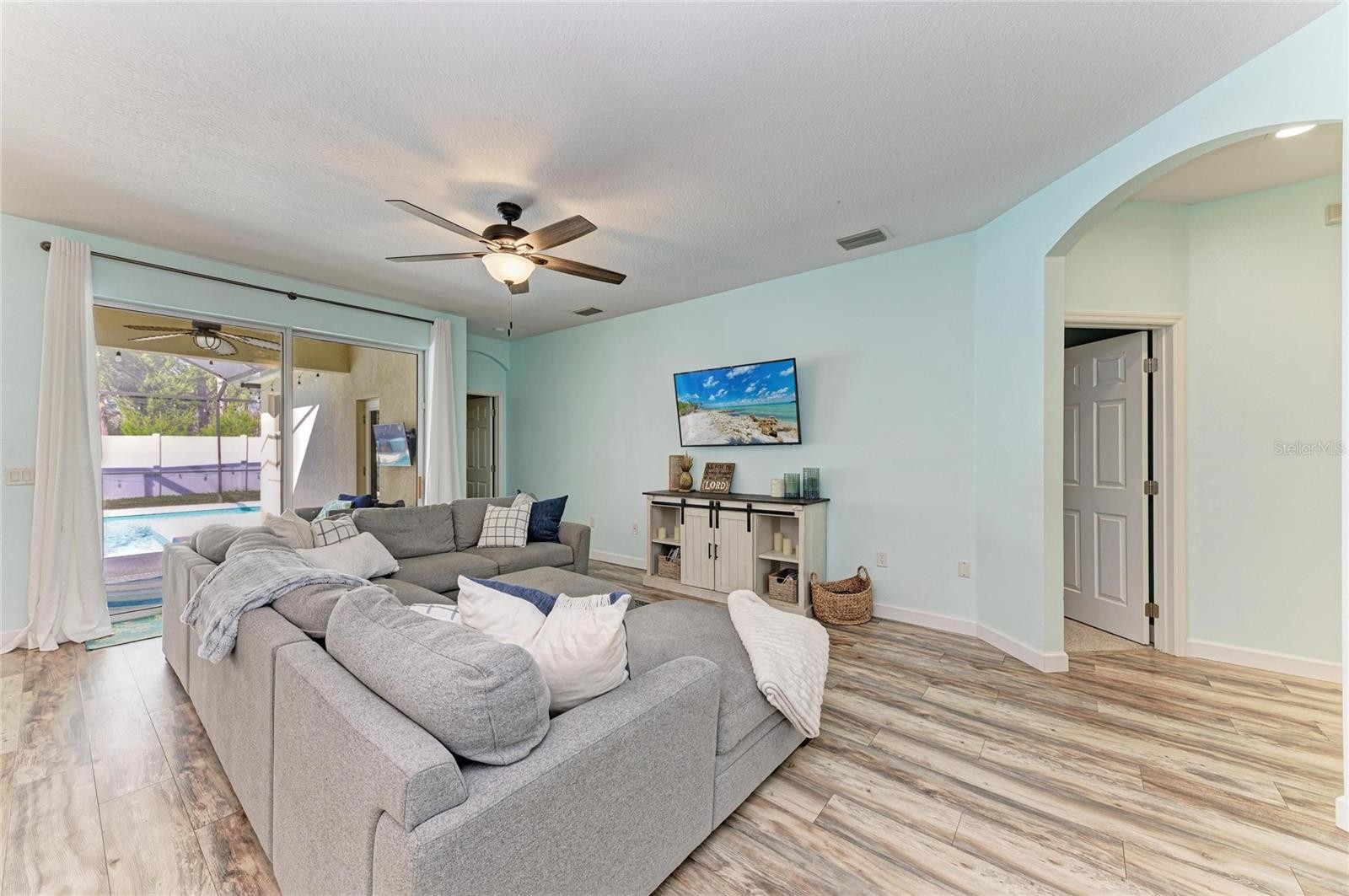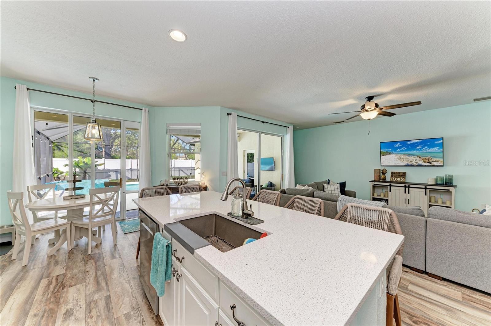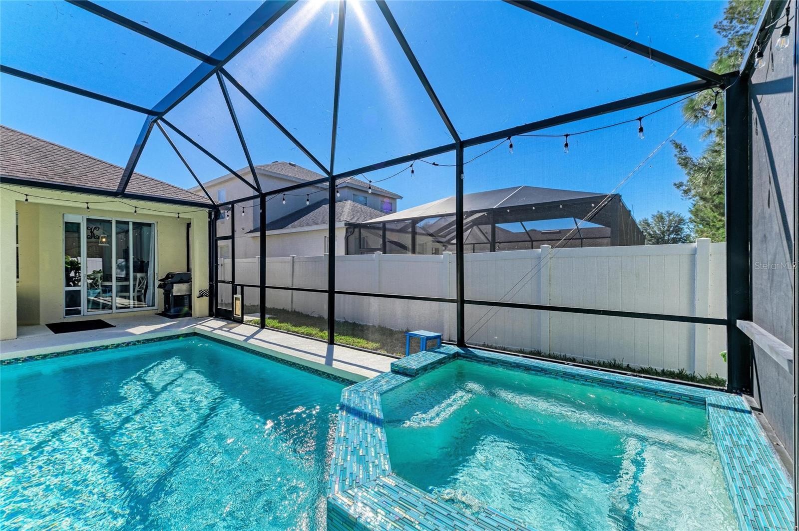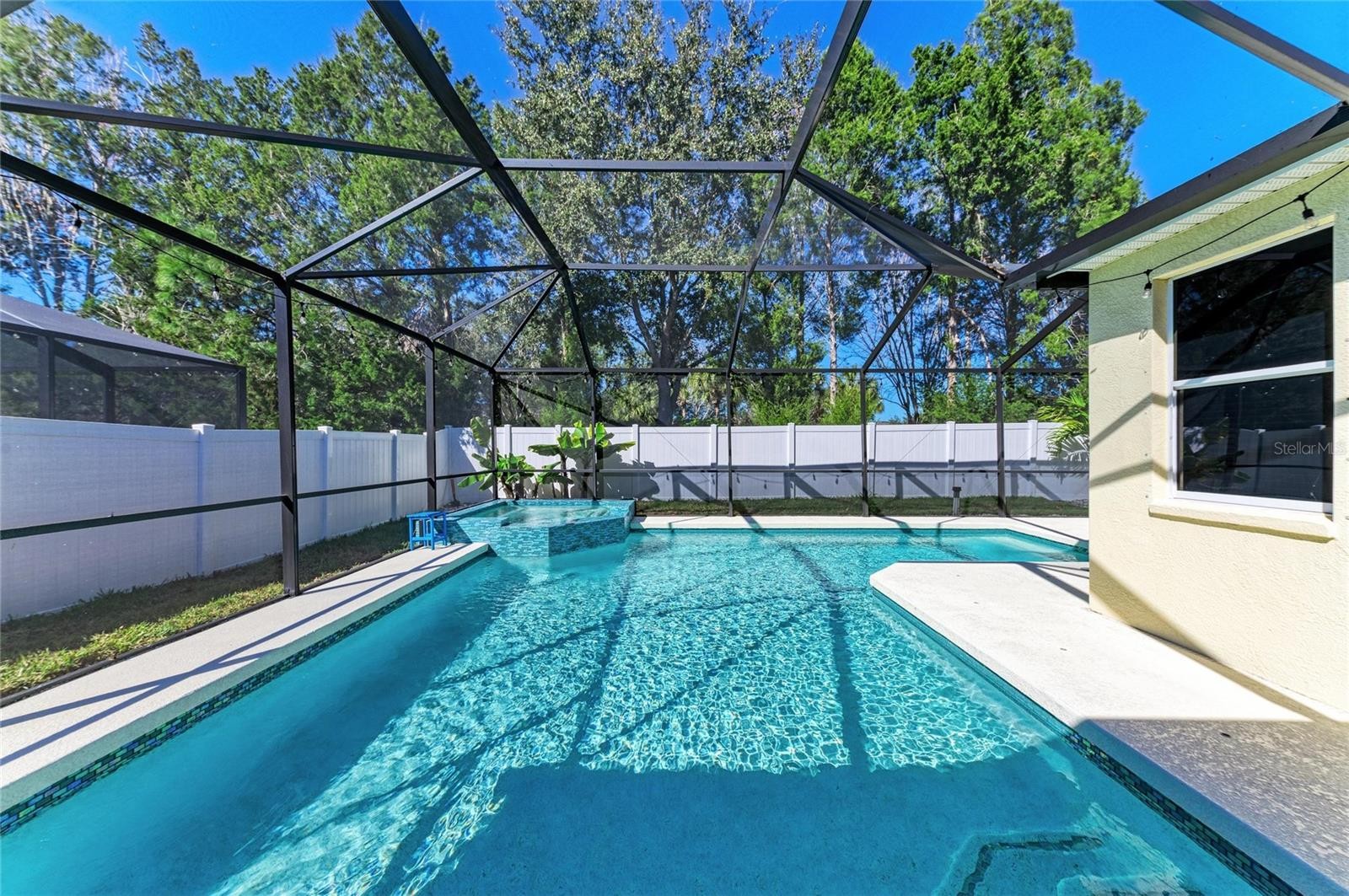 Welcome to an exceptional opportunity in Greenbrook Village, located in the picturesque Lakewood Ranch, Florida. This charming pool home perfectly blends comfort and style, offering an inviting atmosphere for anyone seeking a serene yet vibrant living experience. The home features three spacious bedrooms and two full bathrooms, along with a versatile office or study that can easily be converted into a fourth bedroom if needed. A dedicated dining room provides additional flexibility, allowing it to be used as a playroom, exercise area, or a cozy space for a large screen TV, catering to various lifestyle needs. The heart of this home is its expansive open floor plan, designed for modern living and entertaining. It boasts an updated kitchen equipped with sleek appliances, a convenient dining area, and a spacious pantry, making it a perfect setting for family gatherings. Step outside to your private oasis, where a beautiful saltwater heated pool and hot tub await. Both are gas-heated and securely nestled within a screened cage and covered lanai, allowing for year-round enjoyment. A privacy fence enhances the seclusion, creating a tranquil retreat for relaxation and entertainment. Enjoy beautiful sunsets while relaxing around the pool, entertaining guests or cooking on the grill. This home is thoughtfully prepared for the future with a new roof scheduled for installation in February 2026 and a recently replaced AC unit in 2024, and storm shutters for the windows providing peace of mind and comfort for years to come. The home also has a whole home water softener system which was recently added. The primary bedroom serves as a true sanctuary, offering direct access to the pool area. It features a large walk-in closet and an en-suite bathroom, which has been tastefully renovated with separate vanities, an updated glass shower, and soaking tub. Two additional bedrooms share a generously sized second bath, accommodating family and guests with ease. Ideally situated near Lakewood Ranch's top-rated schools, including the newest high school in the Lakewood Ranch area. Residents enjoy easy access to local amenities such as the LWR Post Office, Premier Sports Campus, the new LWR Library, and the future Aquatic Complex. For shopping and entertainment, the UTC Mall and Waterside in Lakewood Ranch are just a short 15-minute drive away. Plus, you're only 12 miles from the stunning beaches of Lido, Longboat, and Siesta Keys, offering endless opportunities for leisure and adventure. This perfect pool home in Greenbrook Village presents a wonderful community and a lifestyle filled with convenience and leisure. Don't miss the chance to make this dream home yours and start enjoying all that Lakewood Ranch has to enjoy and create the lifestyle of your dreams!