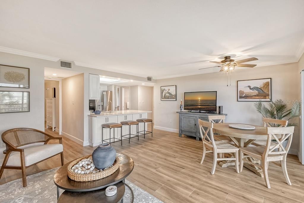 Beachfront condo with full gulf views. Completely renovated unit in 2024 with direct access to the sugary white sand beaches. New tile floor throughout. All new kitchen with new custom kitchen cabinetry, granite counter tops and stainless-steel appliances. Turnkey furnished. Excellent rental history. Private end unit location on the southern end of the complex. Brand new gulf front community pool, gulf to bay property with community fitness room, tennis courts, barbeque areas and dockage.