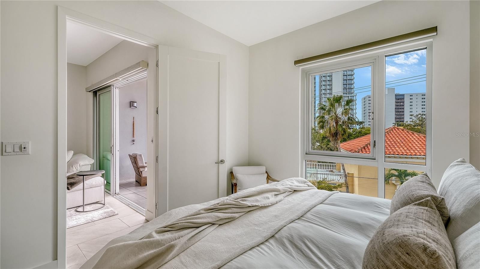 Welcome to Unit #301 at Orange Club — a stunning corner residence that perfectly captures the cosmopolitan sophistication and relaxed coastal lifestyle of downtown Sarasota. Ideally positioned in the highly sought-after Burns Square District, this is refined urban living at its best. Featuring the Harbor floorplan with over 1,100 square feet, this beautifully designed two-bedroom, two-bath residence offers both style and functionality. The chef-inspired kitchen is a true showpiece, appointed with premium Jenn-Air appliances, natural gas cooking, imported Cucine Ricci Italian cabinetry, sleek quartz countertops, and an oversized island ideal for entertaining. The open-concept living space flows seamlessly to a large private balcony through dramatic sliders. Complete with frameless glass railings, a smart-control ceiling fan, and natural gas hookup for grilling, this outdoor retreat is perfect for dining al fresco or enjoying Sarasota’s year-round sunshine and western views. Inside, every detail reflects curated luxury — Oversized tile flooring, custom automated Hunter Douglas shades, high-end plumbing fixtures, smart-control fans, and a spacious laundry room with custom pantry cabinetry. The primary suite offers a serene escape with a spa-inspired bathroom featuring dual vanities, a rain shower, and a walk-in customed designed closet system. This residence includes assigned covered parking, multiple guest spaces, and climate-controlled ground-level storage for added convenience. Residents of Orange Club enjoy exclusive access to a heated pool and elegant pool deck — a peaceful retreat just steps from the vibrant energy of downtown. Located moments from Sarasota Bay, fine dining, boutiques, galleries, and cultural venues, this is a rare opportunity to own in one of Sarasota’s most charming and walkable neighborhoods. Modern design. Prime location. Exceptional value.