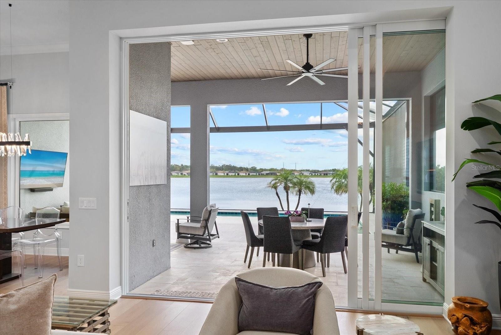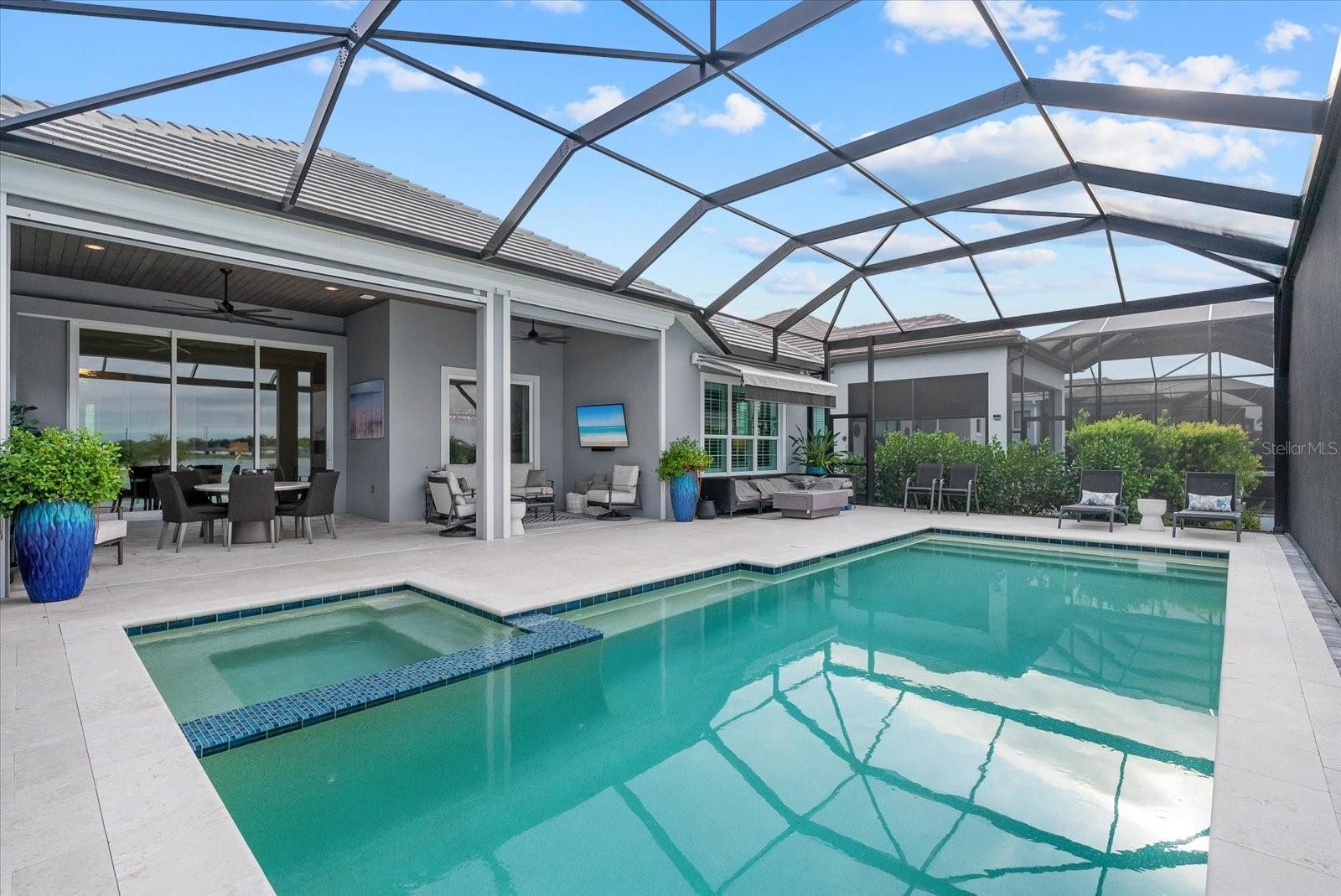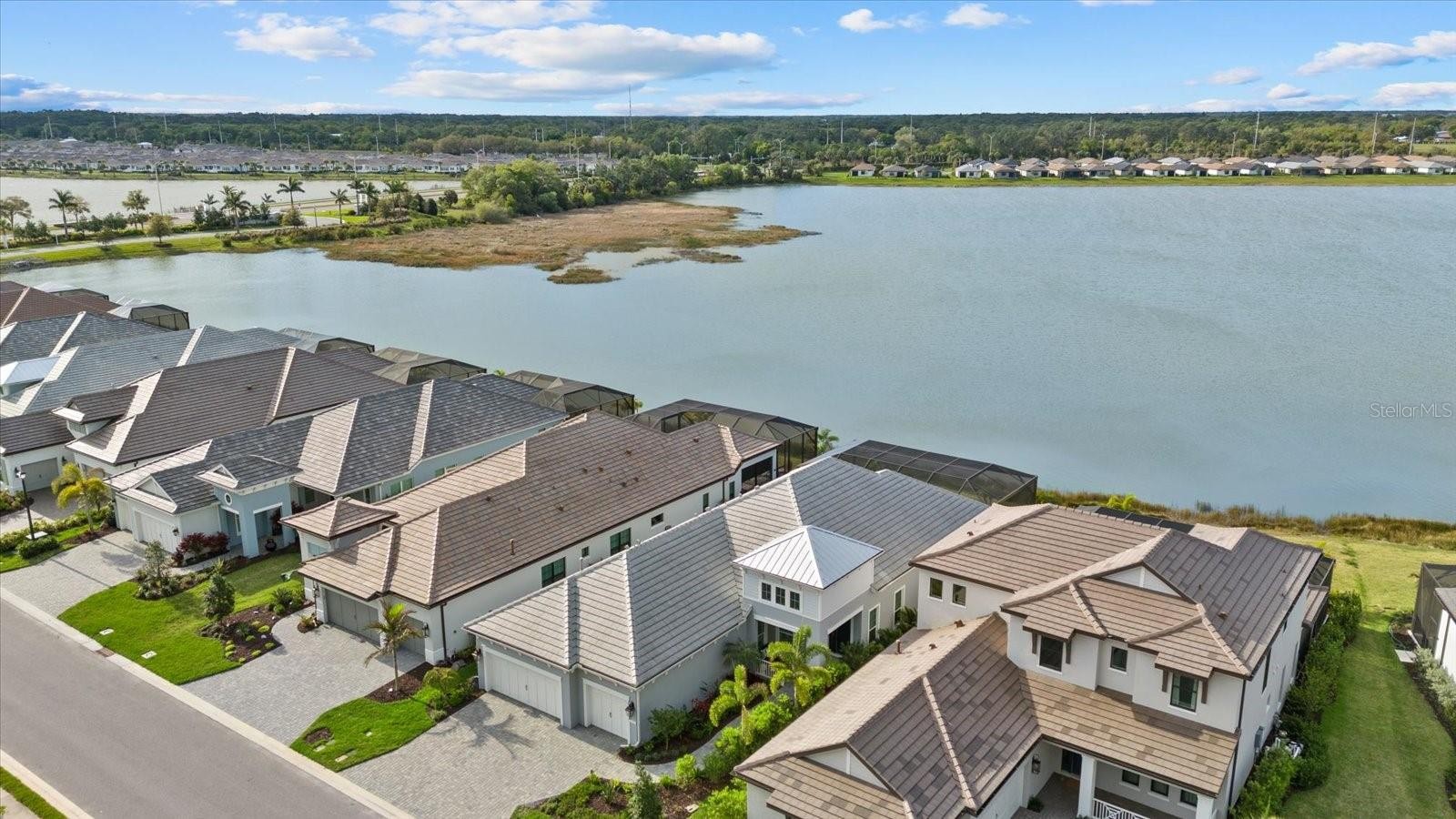 You won't want to miss this one......Indulge in the epitome of lakeside luxury at The Alcove at Waterside by Neal Signature Homes, an exclusive enclave within the vibrant Waterside District of Lakewood Ranch. This stunning residence offers three bedrooms, three full baths, a private den, and 2432 square feet of thoughtfully designed living space with IMPACT RESISTANCE GLASS AND SLIDERS! This beautiful home has a private saltwater pool with LED lights and a large covered lanai area measuring 28 x 17 feet. Plumbed for an outdoor kitchen and comes with electric hurricane screens to give you that peace of mind you are wanting. Inspired by a Coastal architecture, the home showcases elegant stucco exterior, a classic tile roof, and refined architectural details. Inside, elevated design touches abound, including custom ceiling treatments, designer wallpaper, and plantation shutters, creating a sophisticated yet relaxed coastal ambiance. Seamlessly blending indoor and outdoor living, custom 10-foot-high by 12-foot-wide sliding glass doors open to the outdoor living space and frame picturesque views of Blue Heron Lake, filling the home with natural light. Enjoy evening sunsets like you have never seen from your beautiful lanai overlooking the lake. Additional upgrades include a whole-house Kohler generator for peace of mind, mini-split air-conditioning system in the garage, insulated garage doors, custom ceiling treatments inside and out, automatic sun shade, shell stone pavers that are cool to the touch and additional storage in the garage. Perfectly located just one mile from the coveted Waterside Place Village, residents enjoy easy access to waterfront dining, boutique shopping, farmers markets, and community events. Center Point at Waterside is only 1.5 miles away, offering even more popular lunch and dinner destinations along with everyday conveniences. With breathtaking lake views, thoughtful upgrades, and an exceptional location in one of Lakewood Ranch’s most desirable areas, this remarkable home offers luxury living and lifestyle at its finest — and so much more to discover.