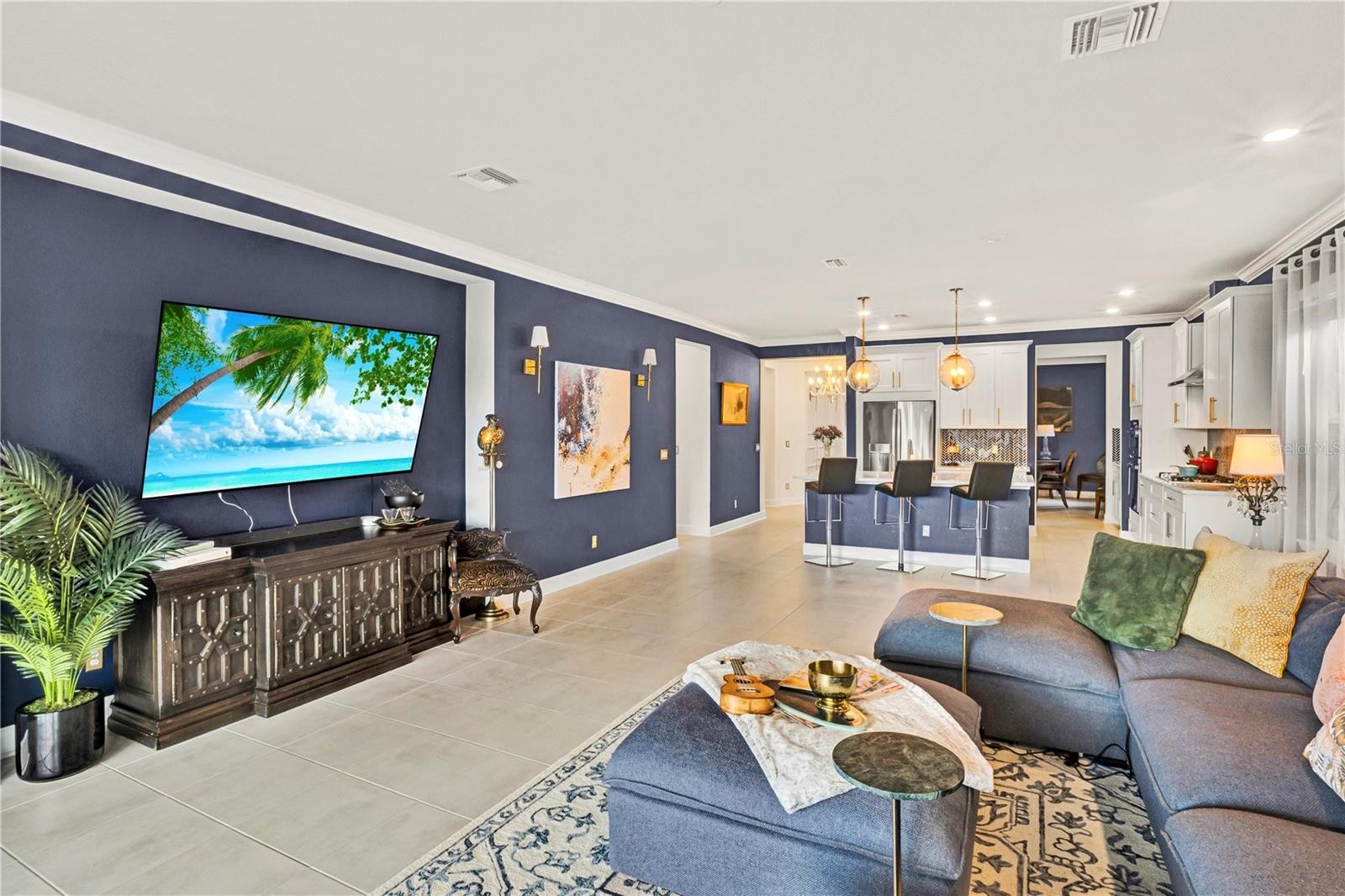 Discover Grandview at The Heights, home to this striking four-bedroom, three-full-bath pool and water view residence. Grandview at The Heights is a gated community with exceptional amenities including a private park with elevated views of Manatee and Sarasota County along with kayaking and paddle boarding on the adjacent Lake Ward. The home features meticulously maintained landscaping with colorful flower beds which leads to an impressive entry through an opaque glass and leaded front door. A circular foyer features a hexagon double tray ceiling with accent lighting and crown molding. The breathtaking water view draws you through the bright kitchen and great room, enhanced by a designer color palette. The kitchen includes stainless steel appliances such as a three-door refrigerator, five-burner gas cooktop, built-in wall oven, microwave, and dishwasher. Quartz countertops, a herringbone backsplash, a butler's pantry, and an oversized island with a farm sink make this space ideal for entertaining. Choose between a formal dining area at the front of the home or use that space as a den and place your dining table in the open area between the kitchen and great room. The expansive great room features an oversized 12’ sliding glass door that pockets out of view, opening to a brick paver lanai with covered and screened deck space. Enjoy the heated saltwater pool with a drip-over spa that seats six, a sun shelf, and peaceful water views. The primary suite offers water views, a bathroom with a glass-enclosed shower, garden tub, double sinks, and a large closet with direct access to the laundry room. The split floorplan provides privacy for the three secondary bedrooms. Community amenities include a resort-style pool, outdoor kitchen with grill, kayak launch, playground, dog park, basketball courts, and walking trails. Conveniently located near UTC shopping, world-famous beaches, downtown Sarasota, Lakewood Ranch Main Street, and Waterside. Experience Florida living at its finest!