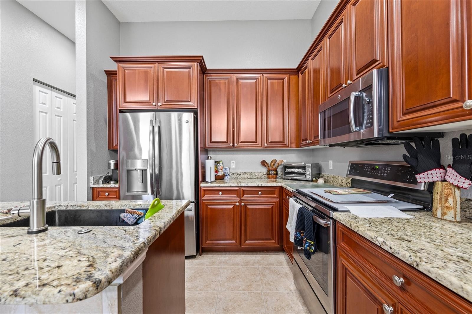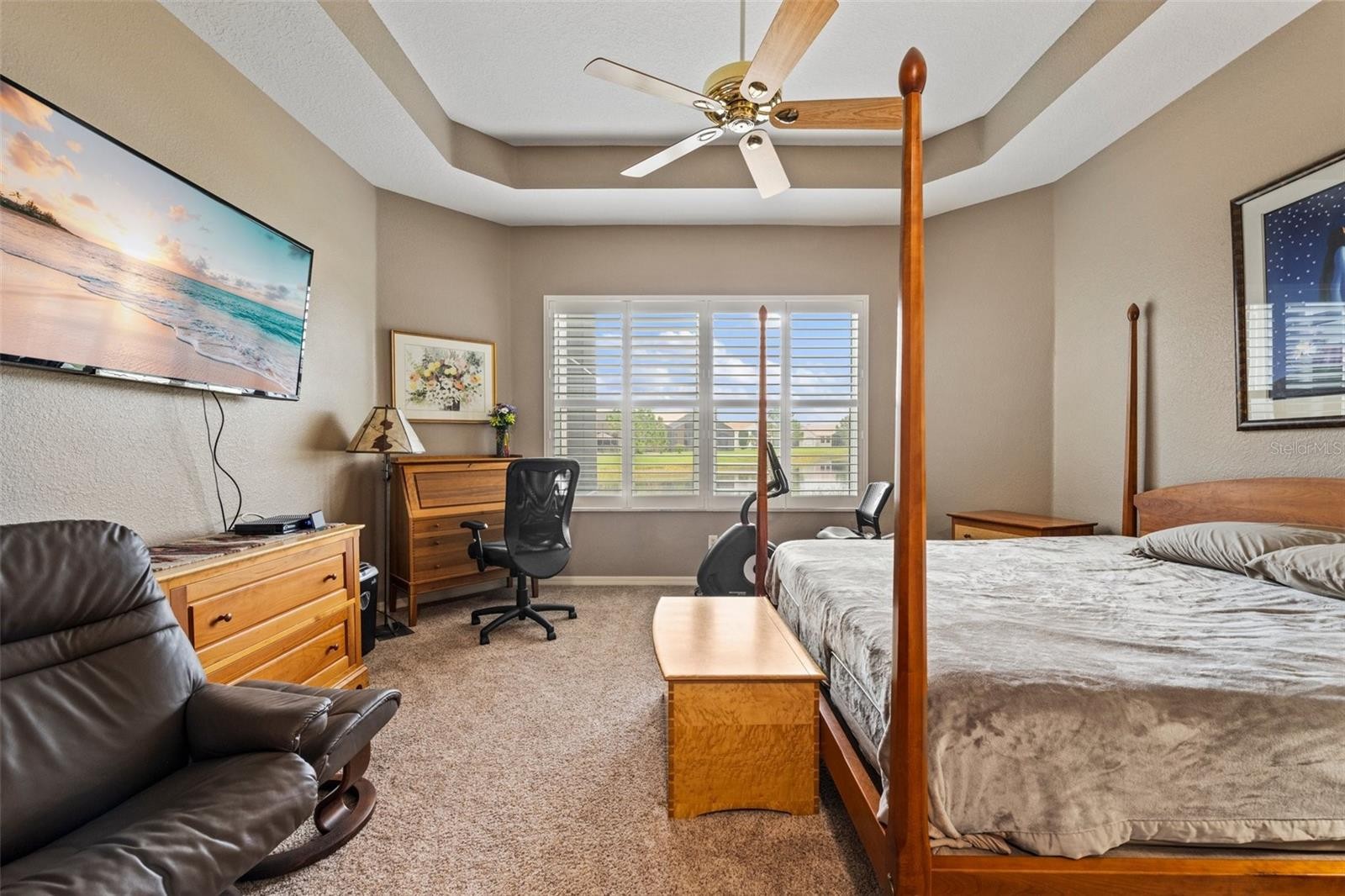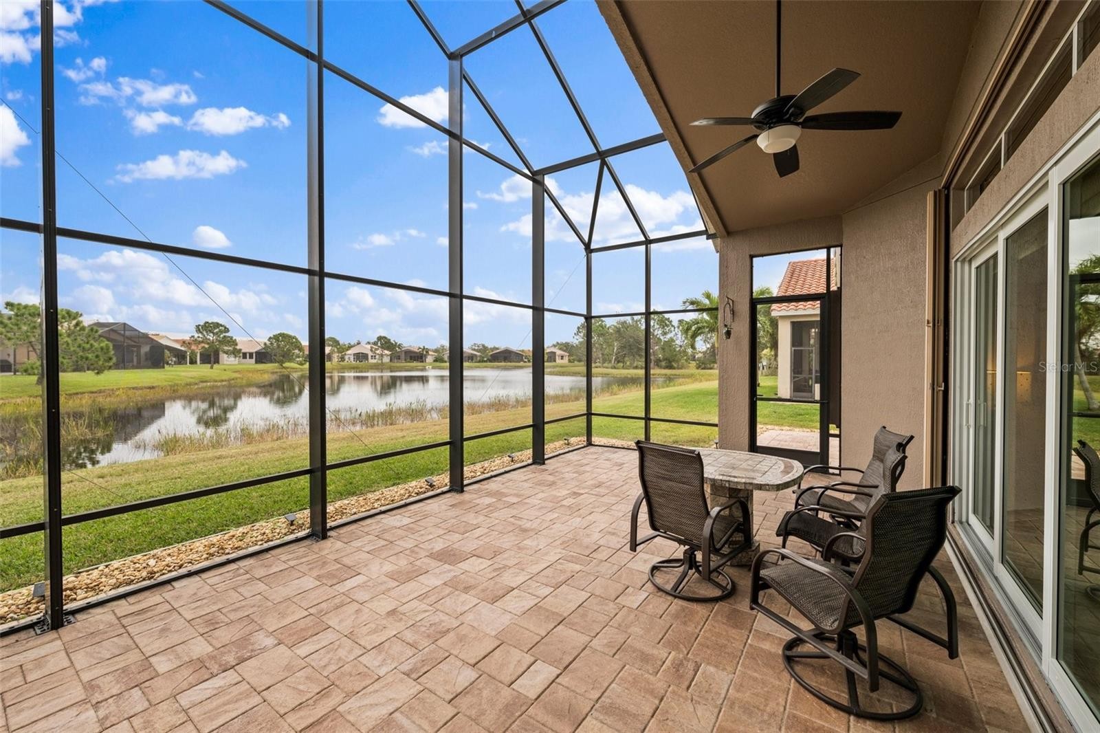 As you arrive to this beautiful home, you’re immediately welcomed by a beautifully paved driveway leading to a charming, screened-in front porch—the perfect spot to enjoy your morning coffee. Stepping inside, you’re greeted by an airy, open floor plan with ceramic tile flooring throughout and elegant plantation shutters on every window, allowing for both natural light and privacy. Moving into the great room, your eyes are drawn to the breathtaking lake views framed by hurricane-impact glass sliders that flood the space with sunlight. Tray ceilings add a touch of sophistication, and just beyond, you’ll find an extra-tall, caged lanai that has been extended by eight feet—offering ample space to relax and enjoy the serene pond, where a variety of water birds frequently visit. Adjacent to the great room is the gourmet kitchen, a dream for any home chef. The new stainless steel appliances gleam under the lighting, while granite countertops, a Kohler farm sink, and rich wood cabinetry with dovetail construction bring warmth and elegance to the space. Storage is no concern here—the pantry and cabinets have been upgraded with custom pull-out drawers and soft-close features. There’s even a double dishwasher, making cleanup after entertaining effortless. The formal dining room stands ready for gatherings, complete with a tray ceiling that adds a refined touch. Nearby, a private study/den offers versatility—use it as an office, a cozy reading nook, or even a third bedroom if needed. Split from the den/third bedroom, you’ll find two spacious primary suites, each offering comfort and privacy. The true primary suite is a retreat of its own, featuring a luxurious en-suite bathroom with a soaking tub, a walk-in shower, dual vanities, and a private water closet. Two walk-in California closets provide ample storage, and a tray ceiling enhances the elegance of the space. The second primary suite is equally inviting, with a marble sink and granite countertops in its own private en-suite. The home also includes a beautifully updated guest bath with a marble sink, granite countertops, and a brand-new shower door, as well as an inside laundry room complete with a sink and plenty of storage. The garage doesn’t disappoint either—it provides additional storage and is equipped with a hurricane-rated garage door and a new opener for peace of mind. For comfort and efficiency, the AC system, installed in 2017, comes with a 12-year transferable warranty, and the water heater was also replaced in 2017. The home’s HOA covers landscaping, and basic cable and internet are included in your monthly dues. Beyond the home itself, The Cascades offers an incredible lifestyle for active 55+ residents. The community features a heated indoor/outdoor pool, lighted tennis courts, and numerous walking paths. Whether you enjoy ballroom dancing, poker, Mah Jongg, water aerobics, yoga, or chess, there’s something here for everyone. With a prime Sarasota location west of I-75, this home is just minutes from UTC, downtown Sarasota, and world-class beaches.