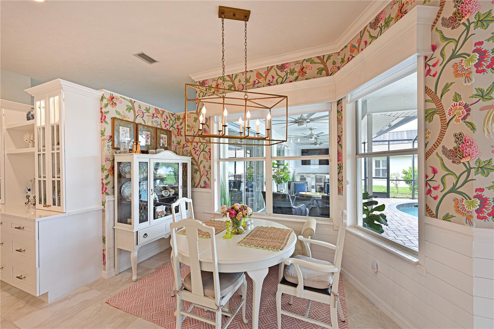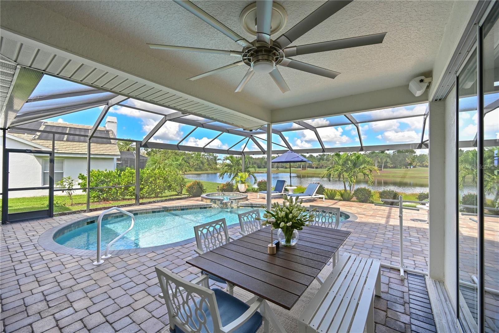 Love where you live...Charm, Elegance, Sophistication and Comfort are some of the words that come to mind in this beautifully updated three-bedroom, three full bath home with spacious office/bonus room. Positioned perfectly on one of Tara's largest lots, lake views out back and lush Florida landscaping out front, offering privacy, space and awesome views of the signature 16th hole of our championship golf course. Welcome to Tara Golf and Country Club, one of Southwest Florida's premier private golf communities- where resort-style living meets modern luxury. This home features open concept with elegant tile flooring throughout the living area. Gourmet eat-in kitchen featuring quartz countertops, custom cabinetry and KitchenAid stainless steel appliances. Two sinks for all your cooking and prep needs. Large island and lots of storage with roll out shelving.Updated in 2024. Family Room has triple pocket sliders to the lanai, an electric fireplace and decorative shiplap framing the room. Living room and dining room are showcased with crown molding, oversized windows and triple sliders that pocket open. Luxurious primary suite with vaulted ceiling, sliders to the lanai, 2 walk-in closets, updated ensuite bath with walk-in shower, double sinks and private water closet. Split floor plan with two guest bedrooms, one having its own en suite bath with walk-in shower. Custom closets. Plantation shutters in all bedrooms, automatic shades in living and dining room. Back bath has door to the pool area for the convience for your swimmers. Bonus room off the garage is presently being used as a home office/ sewing room. Would be great for an exercise room or hobby space as well. Expansive picture screen lanai with heated salt water pool and spa. Pool and spa resurfaced in 2024 with Pebble-Tec. New salt cell 2025. Full outdoor kitchen with gas cooktop, sink, refrigerator and Fire Chef gas grill. 80 gallon propane gas tank, in ground, for outdoor kitchen and pool/spa heater. Large under cover area for your dining and entertaining during any type of weather. Extended area with double door entry for golf cart parking. Tesla solar panels provide up to 85% of the homes electricity, offering incredible energy effciency. Owner owned. Whole home water filtration system for clean, high-quality water throughout. Solar panels for the pool.2024 Hurricane shutters across the front of the house 2025.(Storm Smart) AC 2025! Solar guard tinting on all the windows for sun protection and energy efficiency. Newer fans throughout the home. Electric panel replaced 2019, Fast charge electric car plug installed 2024 in garage. New garage door Smart garage door opener 2025. Epoxy garage floor and new garage door 2020. Roof 2014. Roof Max treatment 2025 extending the life of the shingles guaranteed 5 years. Paver circular driveway. Comes with a Class A membership to TGCC. 18 hole championship golf course which was renovated in 2023. Brand new Pickle Ball Facility with 5 courts 2025. Bocce, Tennis, Full Fitness Center and Exercise Classes, Community Pool, and fantastic clubhouse with active grill room/bar, dining and loads of events to fill your calendar all year long.The best bang for your buck for all you golfers looking for the best golf course for the best price! No CDDs. Welcome to Taradise.