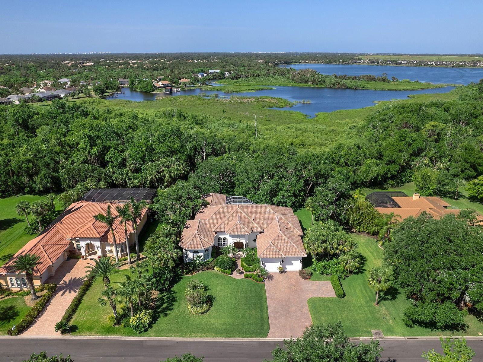 A timeless old Florida neighborhood, Marineland, home to 90 residents, is nestled among the unspoiled ambiance of the Braden River riverbank that creates a peaceful haven for residents, allowing them to escape the hustle and bustle of urban life. The ultra tranquil cul de sac neighborhood feels far removed but it is very close to all of the amenities one needs, including excellent schools, the UTC mall, interstate and all of the area's most fabulous beaches. This custom two story Florida home, built in 2007, offers a sprawling 3,678sf with four bedrooms, four bathrooms, and a sizable studio that could be used as a gym, game room, inlaw suite, in-home theater or the like. The fourth bedroom is being utilized as a spacious office, including closet. Expansive covered and screened lanai upstairs that overlooks your oasis is accessible from all bedrooms and will feel relaxing yet charming at the same time. If stairs are an issue, no worries! Take the convenient elevator which offers ease of maneuvering through the two story residence and equipped with extra safety features. Inground, heated saltwater pool and spa overlook the incredibly serene natural Braden River landscape. With 86 feet of water frontage, 160 feet deep lot on the NW side and 211 feet deep on the South side, strategically placed palms and landscaping are positioned to make this backyard a truly private setting. Hop onto your own floating dock and into your boat so you can meander through the river, with an approximately 17 feet in depth, while you bird watch as you head to Jiggs Landing for some live music and grub. Security and solitude abounds, as the home is adorned with hurricane impact windows and French doors throughout, so there's no need for clunky and cumbersome shutters to be installed and later removed during storms. How nice! Tray ceilings, finished with crown molding throughout, ceiling fans in every room. An expansive living room adorned with wood flooring and a propane gas fireplace complete the ambiance. Center island gourmet kitchen, equipped with Bosch and Fridgedaire stainless steel and propane gas oven, beautiful wooden built-ins and an open space to the large dining area and all overlooking your pool and peaceful river views. Jam out to your favorite tunes with the surround sound while hosting guests or just relaxing in your new home Take the all-wood, L-shaped staircase or the elevator up to the second floor that has a primary bedroom, complete with sitting area with access to the large lanai. And don't forget the extra studio space, currently being used as a gym/media room, equipped with full bathroom Jack-n-Jill. The home's exterior boasts superior materials such as Hardie Plank cement-fiber siding and metal roofing that stand up well against the elements. Rounding out the list of impressive features are an oversized garage, Icynene® insulation in the attic, French drain from the lot to the river, tankless water heater, subsurface 250-gallon propane tank, irrigation pump for landscape watering, with water coming from the river, such a convenience! Just minutes from Tara Elementary School, Linger Lodge, plenty of golf... and all that the water frontage will afford you. To see this home will be to truly fall in love with its charm and beauty.