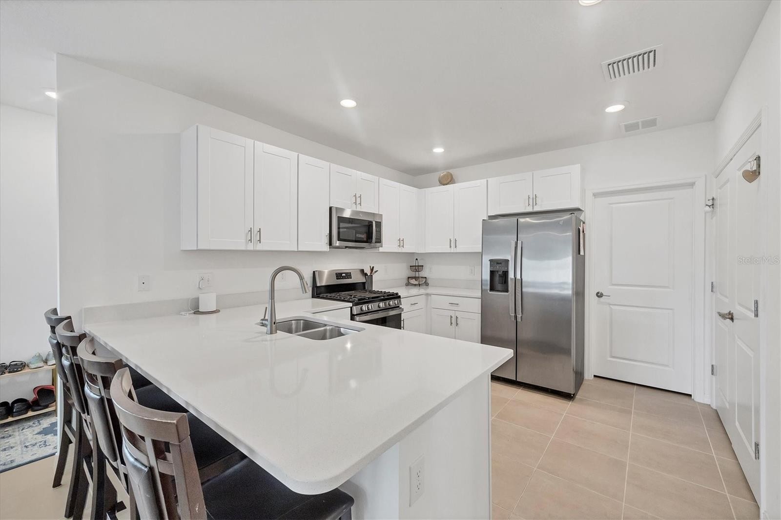 This house was built for a second vacation home. Most of the year, the house was vacant, and the owner barely lived in the house. Great location with a quiet, nice neighborhood. Don't wait to build! Move in right away! Enjoy modern elegance in this like-new 3 bedroom/2 bath home with 1,453 sq ft of spacious living space. Ceramic tile flooring throughout the main living areas and bathrooms. The kitchen features quartz countertops and stainless-steel appliances. An open floor plan provides plenty of room to entertain while cooking. Lots of windows bring lots of sunshine to brighten every room. Indoor laundry room, 2-car garage with door opener, large backyard with privacy vinyl fence. Community offers pool, clubhouse, fitness center, playground, dog park, and all the amenities you need to make the most of the sunny Florida lifestyle. Just minutes from I-75 and in a growing area, this is an ideal location. More community information at Eaves Bend at Artisan.