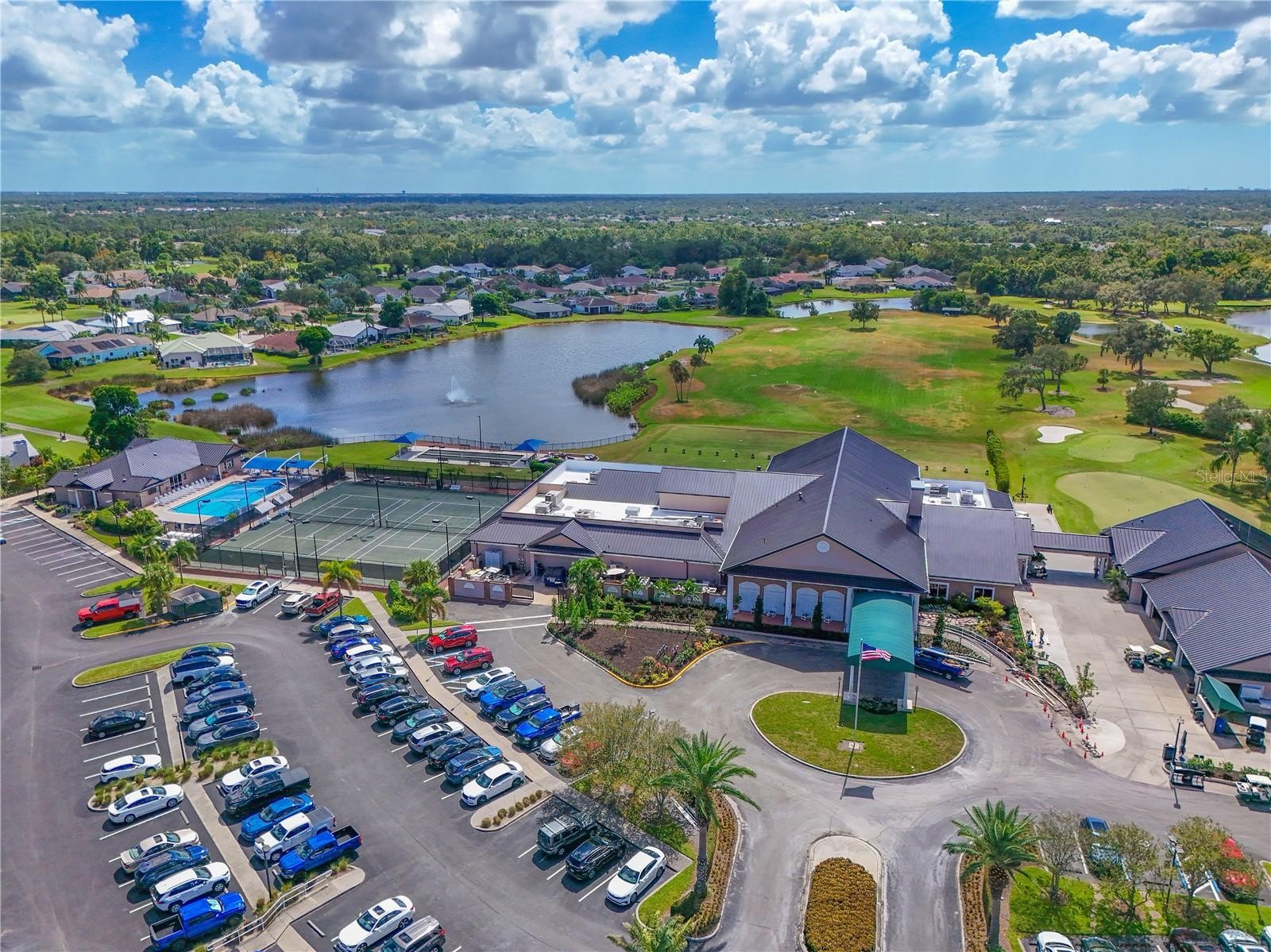 All I can say is WOW! Second floor bedroom/2 full bath remodeled condo in the Terraces Association of Tara Golf and Country Club, has it all. Turn-key furnished with new AC in 2025 (10 year transferable warranty) Hurricane sliders on the lanai, ( $15,000 value) with screens, which overlooks the second hole of the championship golf course and picturesque lake. Fantastic sunsets are yours as you retreat to your lanai or primary bedroom. Lanai has a sleeper sofa and privacy shades for an extra guest room when needed. Kitchen has been remodeled, walls down to open it up. New cabinetry, stainless appliances, large island and bar frig, granite counters, double stainless sink and pull down stainless faucet. Computer/desk area. New luxury vinyl plank flooring throughout the home. Both baths have been updated with tasteful vanities. Living room has storage closet. Great location, close to the private pool and hot tub for the Terrace residents only. Bright morning sun in the kitchen and afternoon sun fills the lanai with breathtaking sunset views. New Pickleball facility is open with 5 courts and undercover area with rest rooms. Clubhouse to be remodeled in 2026. No assessments to the community on any of the projects. Close to shopping, dining, highways, airports and the best beaches on the west coast of Florida. Class A membership . Welcome to Taradise!