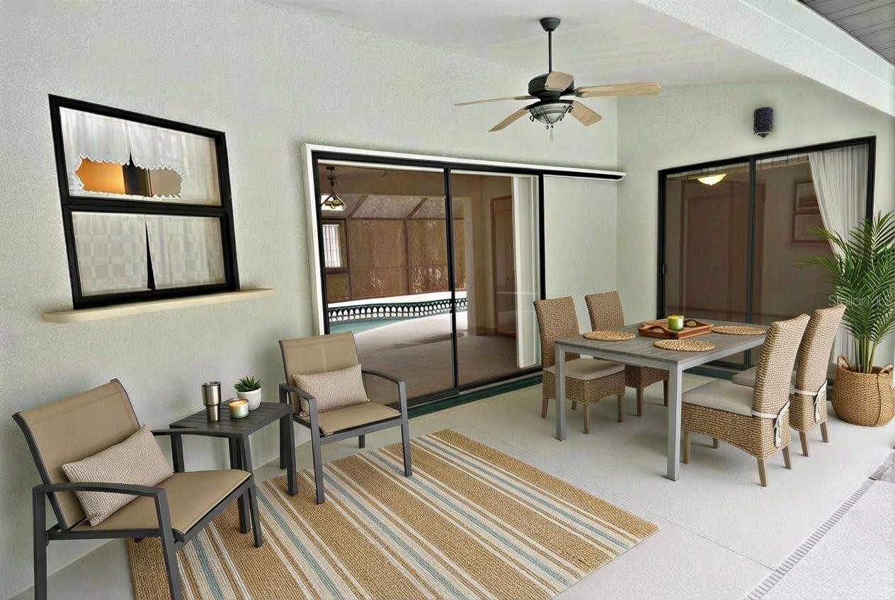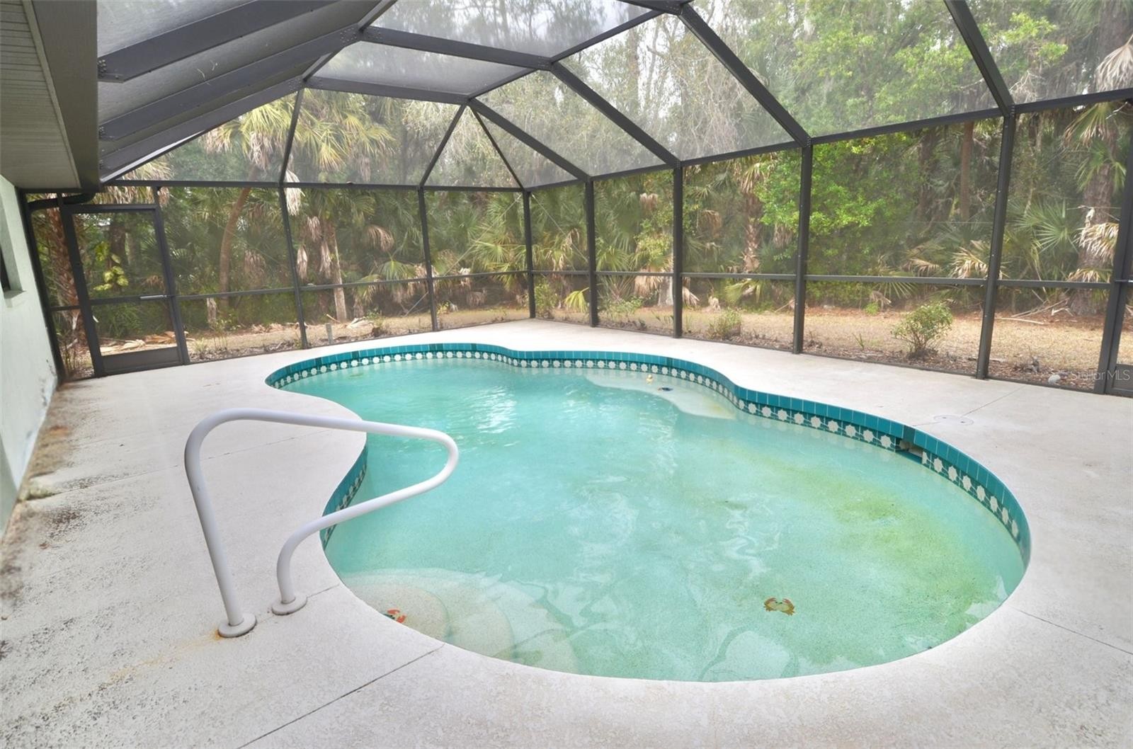One or more photo(s) has been virtually staged. 3.01-acre wooded homesite • Saltwater screened pool with bench seating • Covered lanai under cage • Stone wood burning fireplace • New AC Feb 2025 • 2024 softener plus RO • No HOA. Room to spread out and a setting that feels private and peaceful come together on this wooded 3.01-acre homesite. There is space for outdoor projects, gatherings, and pool days, while the interior offers a true split bedroom plan that keeps the primary suite separate from the guest rooms. The kitchen is the heart of the home, featuring quartz countertops, solid wood cabinets with ample storage, and a breakfast bar that works well for morning coffee, quick meals, or casual entertaining. The main living area flows easily and is anchored by a stone wood burning fireplace that adds warmth and character. The primary suite is tucked away and includes two walk-in closets plus sliding doors that lead straight out to the lanai and pool area. The ensuite bath has dual sinks, a garden tub, a walk-in shower, a linen closet, and plenty of space for the daily routine. Outdoors, the screened saltwater pool includes bench seating, pool decking for lounging, and an outdoor shower for easy rinsing, all complemented by a covered lanai under the cage for shade and relaxing. A detached shed provides flexible storage or workshop potential and includes water and electric. Recent updates include the AC replaced in February 2025 plus a 2024 water softener and reverse osmosis system. With no HOA fees and zoning for horses, this property offers the space, privacy, and everyday comfort that are hard to find in one package.