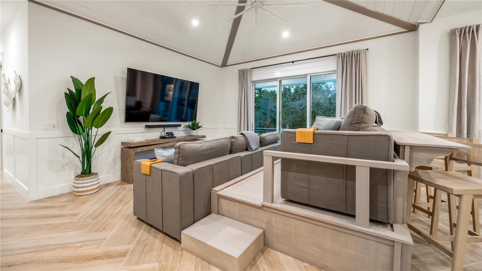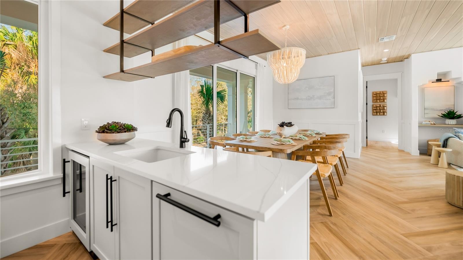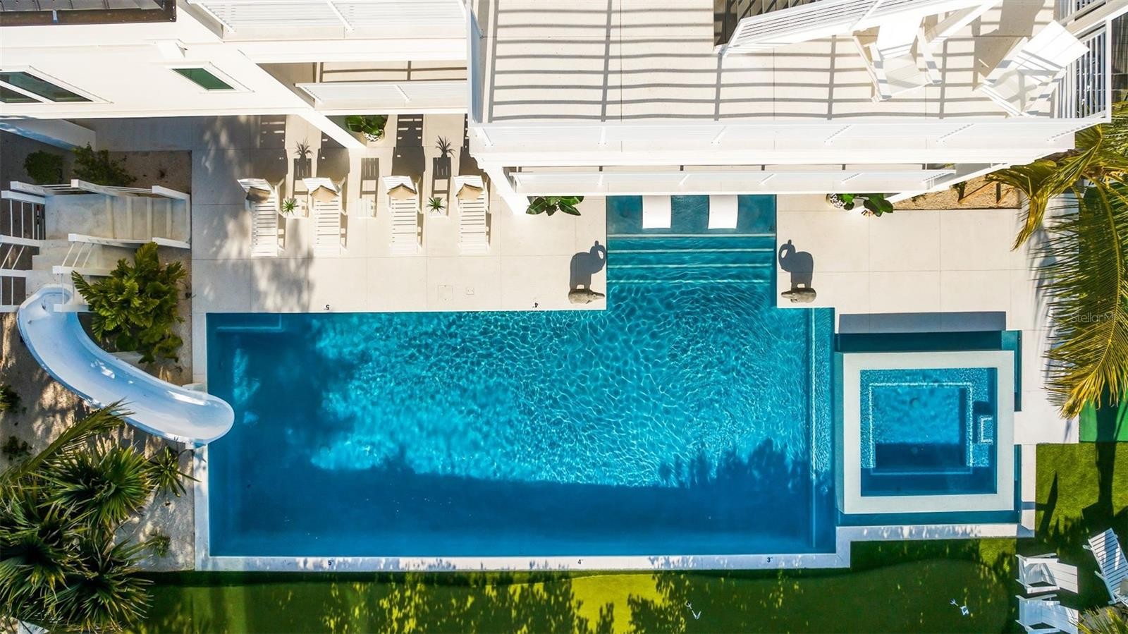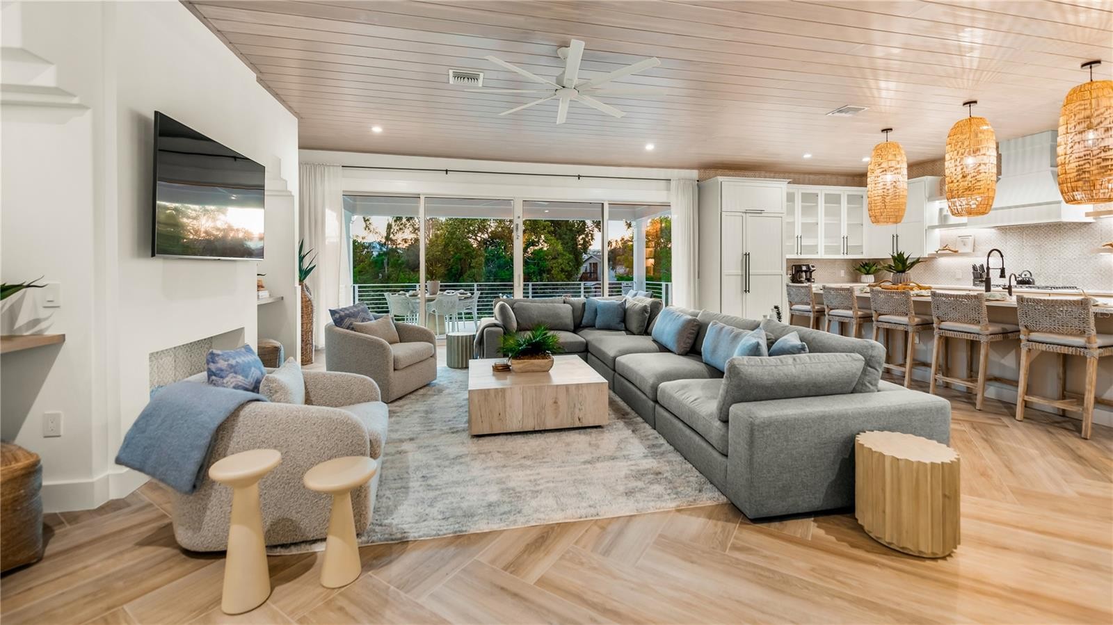 There is only one — Siesta Sun Sets. Set against the quiet backdrop of Sabal Lake, with glimpses of the Gulf beyond, this residence unfolds with a sense of irresistible intention. Influenced by West Indies architecture, the design blends expansive indoor-outdoor living with natural textures, layered spaces, and a palette that mirrors its surroundings — soothing, sun-washed, and enduring. Across more than 4,000 square feet, the home offers seven incredible en-suite bedrooms and multiple living areas designed for both gathering and restful retreat. The great room anchors the experience, where kitchen, dining, and living spaces open outward to twin balconies — one overlooking the extensive grounds, the other framed by mature oaks, offering a quiet contrast of shade and light. Above, a private club level introduces a more intimate setting — a theater-style lounge, additional suites, and access to the rooftop deck. It is here, at the highest point of the home, that the name reveals itself. As day transitions to evening and the Gulf reflects gold, the softening sky reveals stunning sunsets, becoming the backdrop against which you count your blessings. Below, the grounds are equally considered. A multi-sport court — rare in both scale and versatility — sits alongside a resort-style pool and 360-degree spillover spa, creating a setting as seductive as it is serene. Covered outdoor living spaces extend the home’s presence, offering multiple areas for dining, gathering, and quiet retreat, all within a private, fully enclosed landscape. Siesta Sun Sets is not defined by any one feature, but by the way it brings them together — water, light, elevation, and space — into a residence that feels both grounded and removed, exclusive and secluded. A masterwork of resilient engineering and high-end coastal construction, this estate is architecturally primed to withstand coastal elements while serving as a premier venue for grand-scale entertaining and lucrative seasonal retreats. More than a home, Siesta Sun Sets is part of an exclusive Vunique collection with a proven history of strong rental performance — each residence one-of-one, purpose-built to balance bold design and bespoke experience. Here, ownership transcends address; it becomes a mark of belonging to something beautifully uncommon.