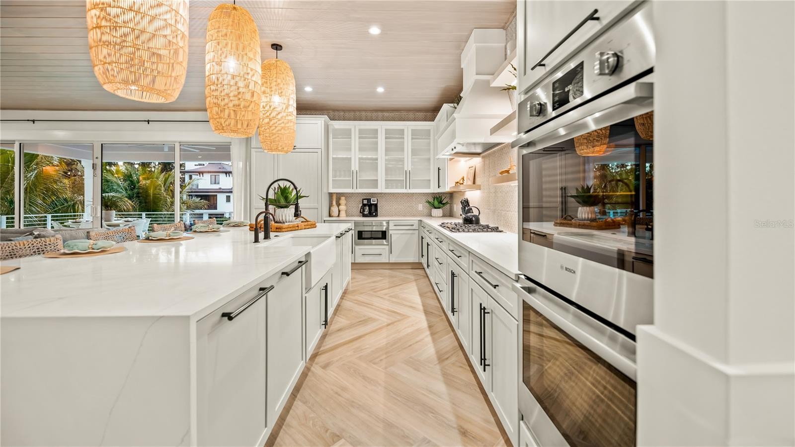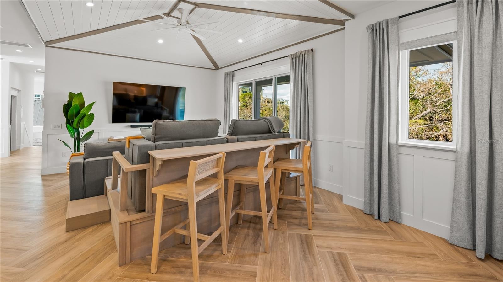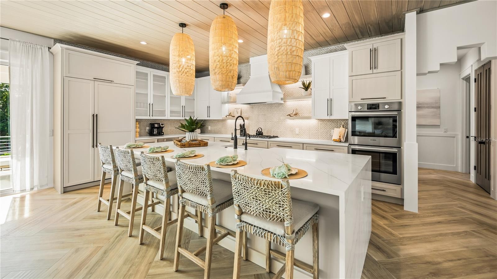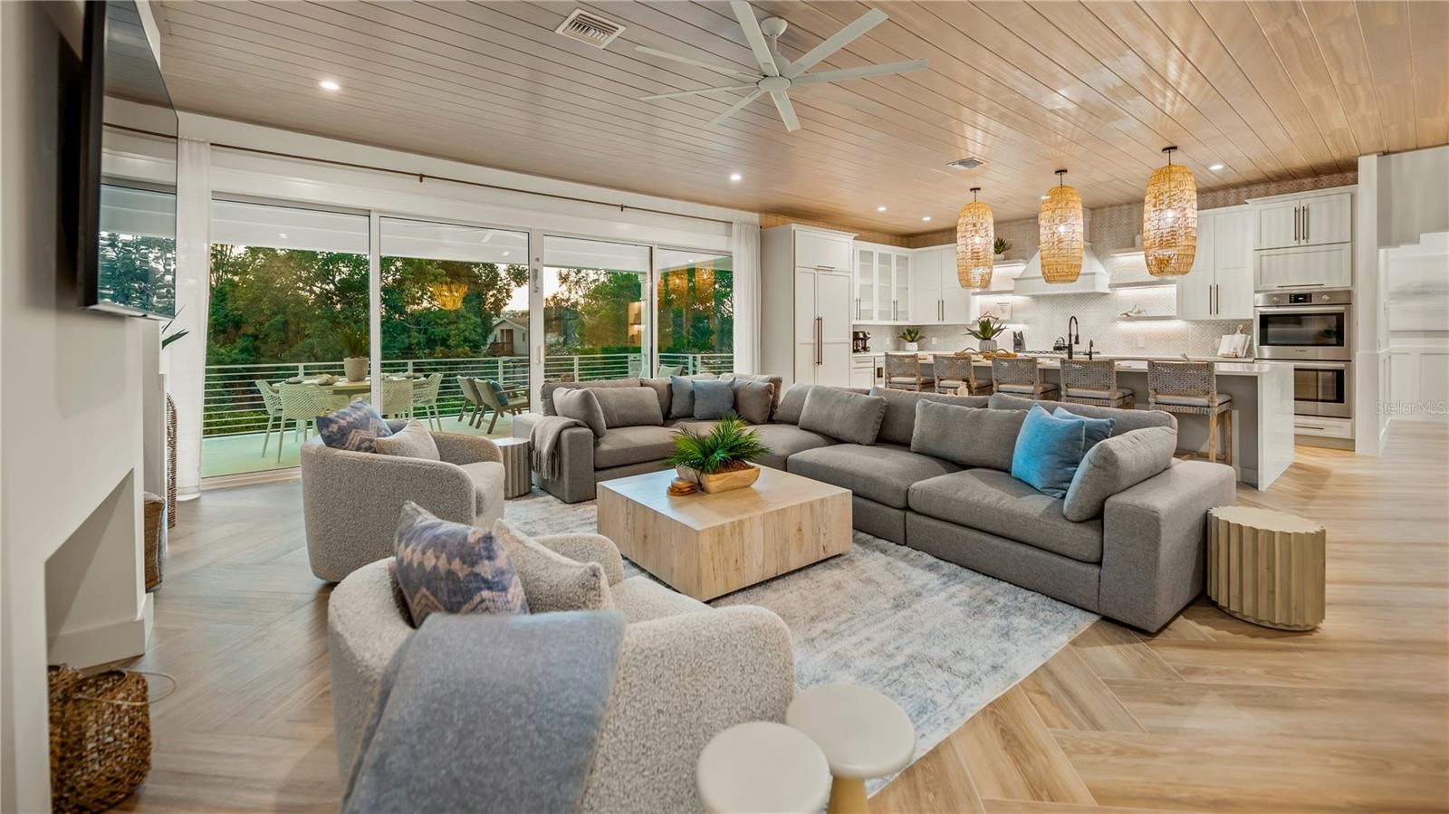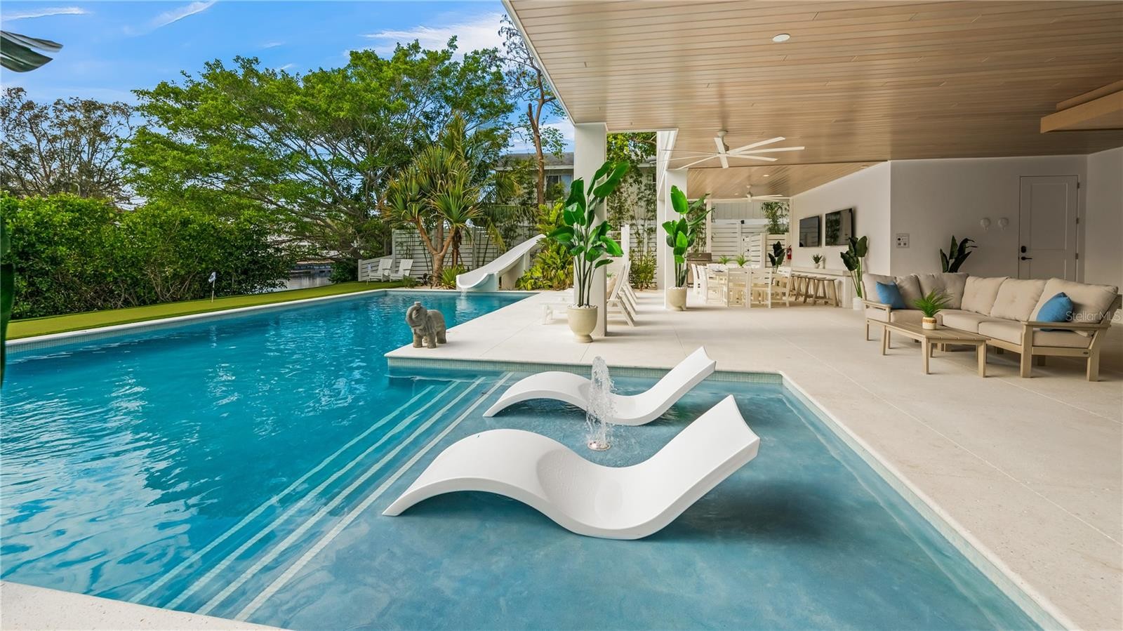 There is only one — Siesta Sun Sets. Set against the quiet backdrop of Sabal Lake, with glimpses of the Gulf beyond, this residence unfolds with a sense of irresistible intention. Influenced by West Indies architecture, the design blends expansive indoor-outdoor living with natural textures, layered spaces, and a palette that mirrors its surroundings — soothing, sun-washed, and enduring. Across more than 4,000 square feet, the home offers seven incredible en-suite bedrooms and multiple living areas designed for both gathering and restful retreat. The great room anchors the experience, where kitchen, dining, and living spaces open outward to twin balconies — one overlooking the extensive grounds, the other framed by mature oaks, offering a quiet contrast of shade and light. Above, a private club level introduces a more intimate setting — a theater-style lounge, additional suites, and access to the rooftop deck. It is here, at the highest point of the home, that the name reveals itself. As day transitions to evening and the Gulf reflects gold, the softening sky reveals stunning sunsets, becoming the backdrop against which you count your blessings. Below, the grounds are equally considered. A multi-sport court — rare in both scale and versatility — sits alongside a resort-style pool and 360-degree spillover spa, creating a setting as seductive as it is serene. Covered outdoor living spaces extend the home’s presence, offering multiple areas for dining, gathering, and quiet retreat, all within a private, fully enclosed landscape. Siesta Sun Sets is not defined by any one feature, but by the way it brings them together — water, light, elevation, and space — into a residence that feels both grounded and removed, exclusive and secluded. A masterwork of resilient engineering and high-end coastal construction, this estate is architecturally primed to withstand coastal elements while serving as a premier venue for grand-scale entertaining and lucrative seasonal retreats. More than a home, Siesta Sun Sets is part of an exclusive Vunique collection with a proven history of strong rental performance — each residence one-of-one, purpose-built to balance bold design and bespoke experience. Here, ownership transcends address; it becomes a mark of belonging to something beautifully uncommon.