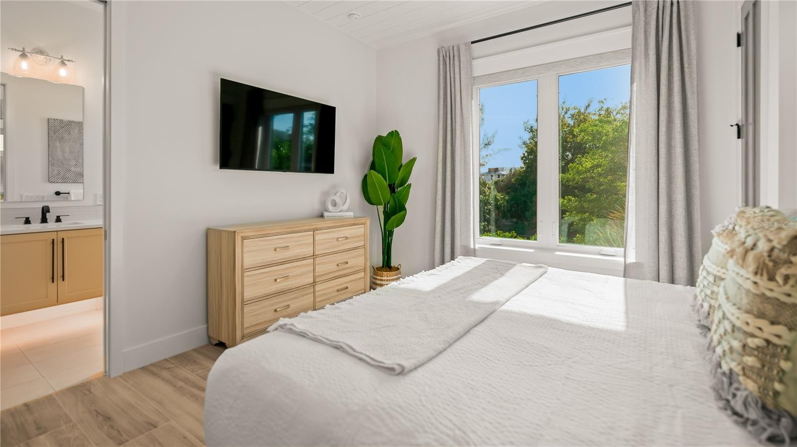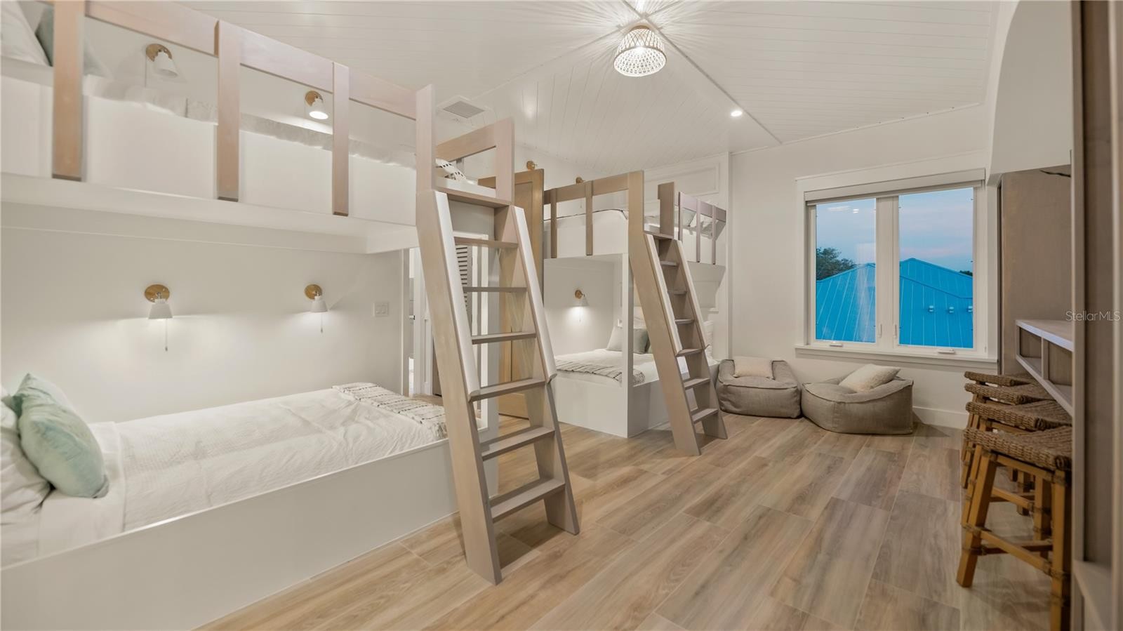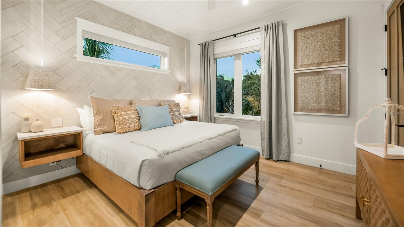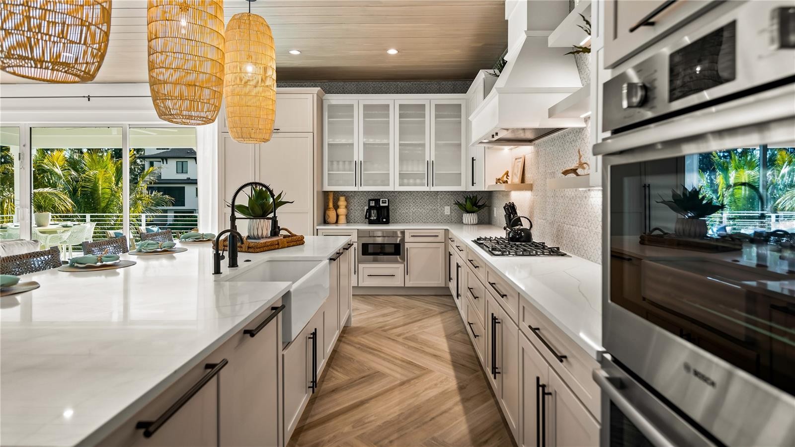 There is only one — Siesta Sun Sets. Set against the quiet backdrop of Sabal Lake, with glimpses of the Gulf beyond, this residence unfolds with a sense of irresistible intention. Influenced by West Indies architecture, the design blends expansive indoor-outdoor living with natural textures, layered spaces, and a palette that mirrors its surroundings — soothing, sun-washed, and enduring. Across more than 4,000 square feet, the home offers seven incredible en-suite bedrooms and multiple living areas designed for both gathering and restful retreat. The great room anchors the experience, where kitchen, dining, and living spaces open outward to twin balconies — one overlooking the extensive grounds, the other framed by mature oaks, offering a quiet contrast of shade and light. Above, a private club level introduces a more intimate setting — a theater-style lounge, additional suites, and access to the rooftop deck. It is here, at the highest point of the home, that the name reveals itself. As day transitions to evening and the Gulf reflects gold, the softening sky reveals stunning sunsets, becoming the backdrop against which you count your blessings. Below, the grounds are equally considered. A multi-sport court — rare in both scale and versatility — sits alongside a resort-style pool and 360-degree spillover spa, creating a setting as seductive as it is serene. Covered outdoor living spaces extend the home’s presence, offering multiple areas for dining, gathering, and quiet retreat, all within a private, fully enclosed landscape. Siesta Sun Sets is not defined by any one feature, but by the way it brings them together — water, light, elevation, and space — into a residence that feels both grounded and removed, exclusive and secluded. A masterwork of resilient engineering and high-end coastal construction, this estate is architecturally primed to withstand coastal elements while serving as a premier venue for grand-scale entertaining and lucrative seasonal retreats. More than a home, Siesta Sun Sets is part of an exclusive Vunique collection with a proven history of strong rental performance — each residence one-of-one, purpose-built to balance bold design and bespoke experience. Here, ownership transcends address; it becomes a mark of belonging to something beautifully uncommon.