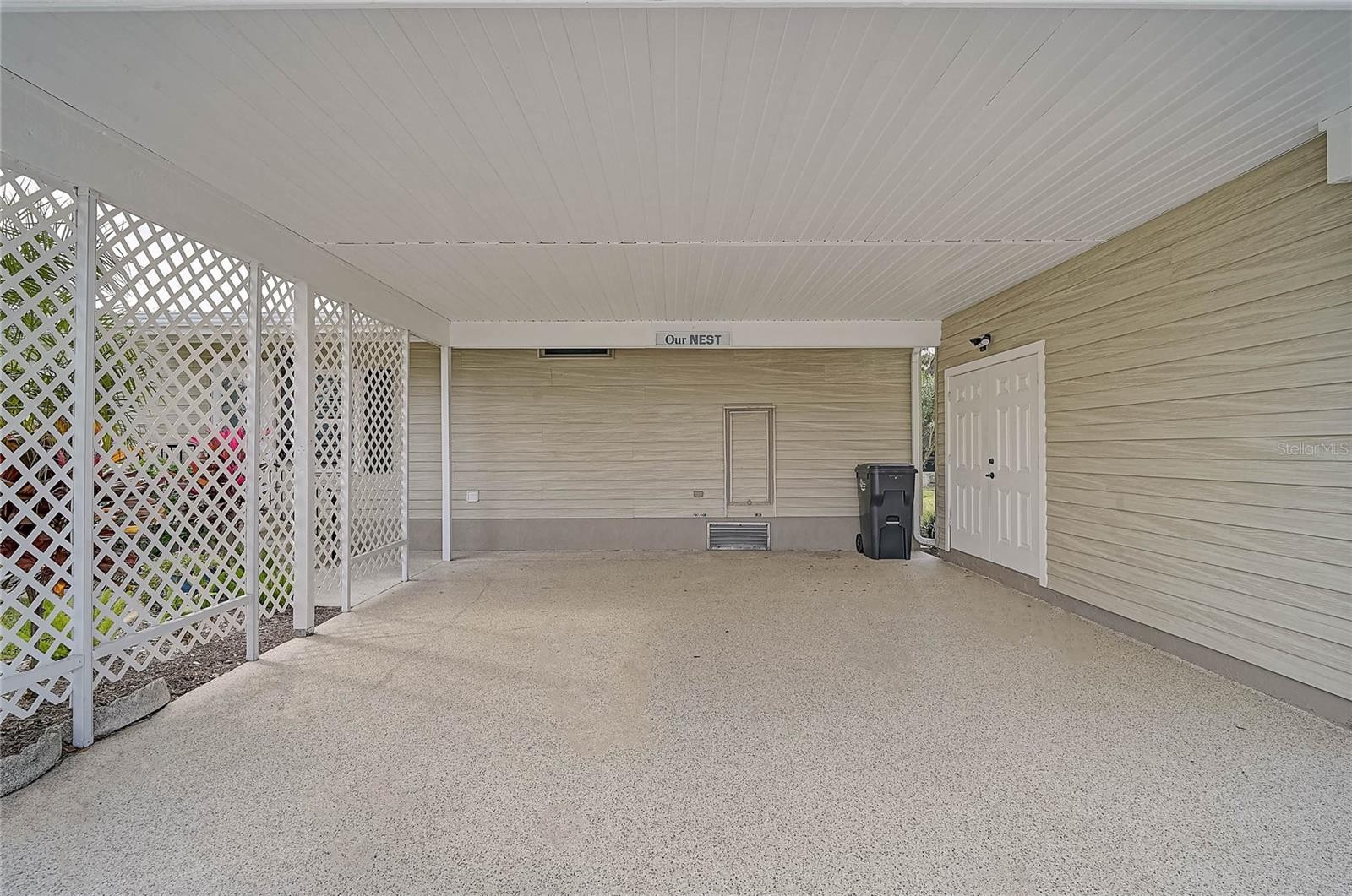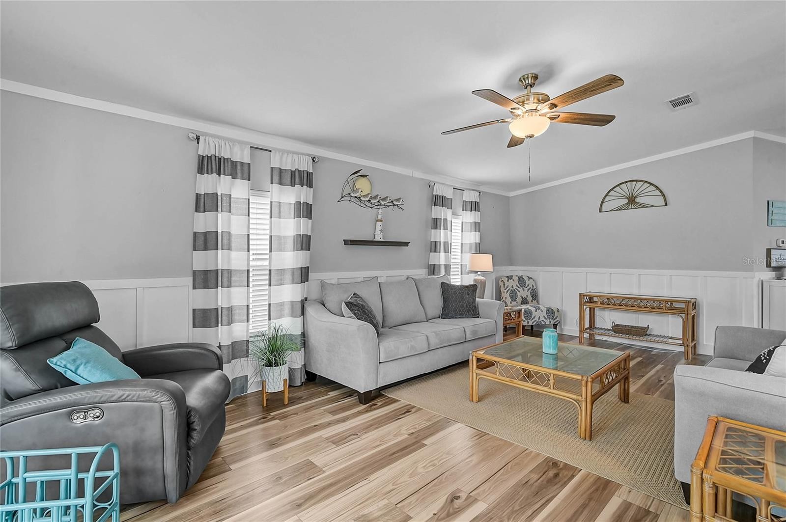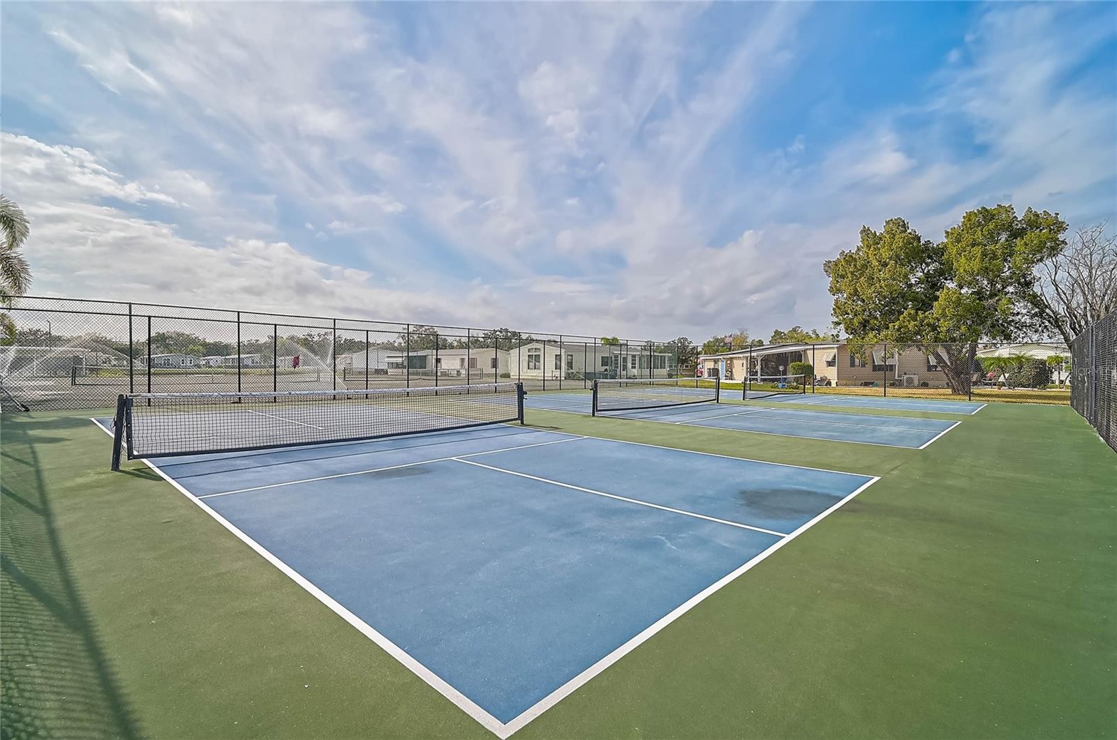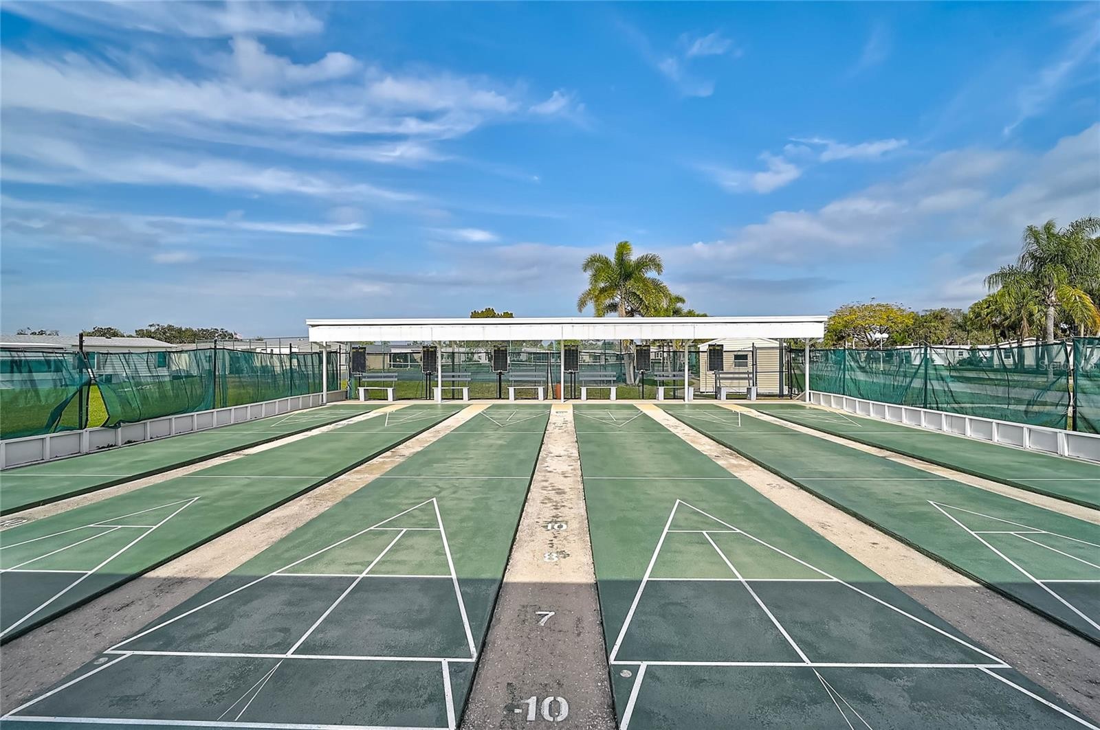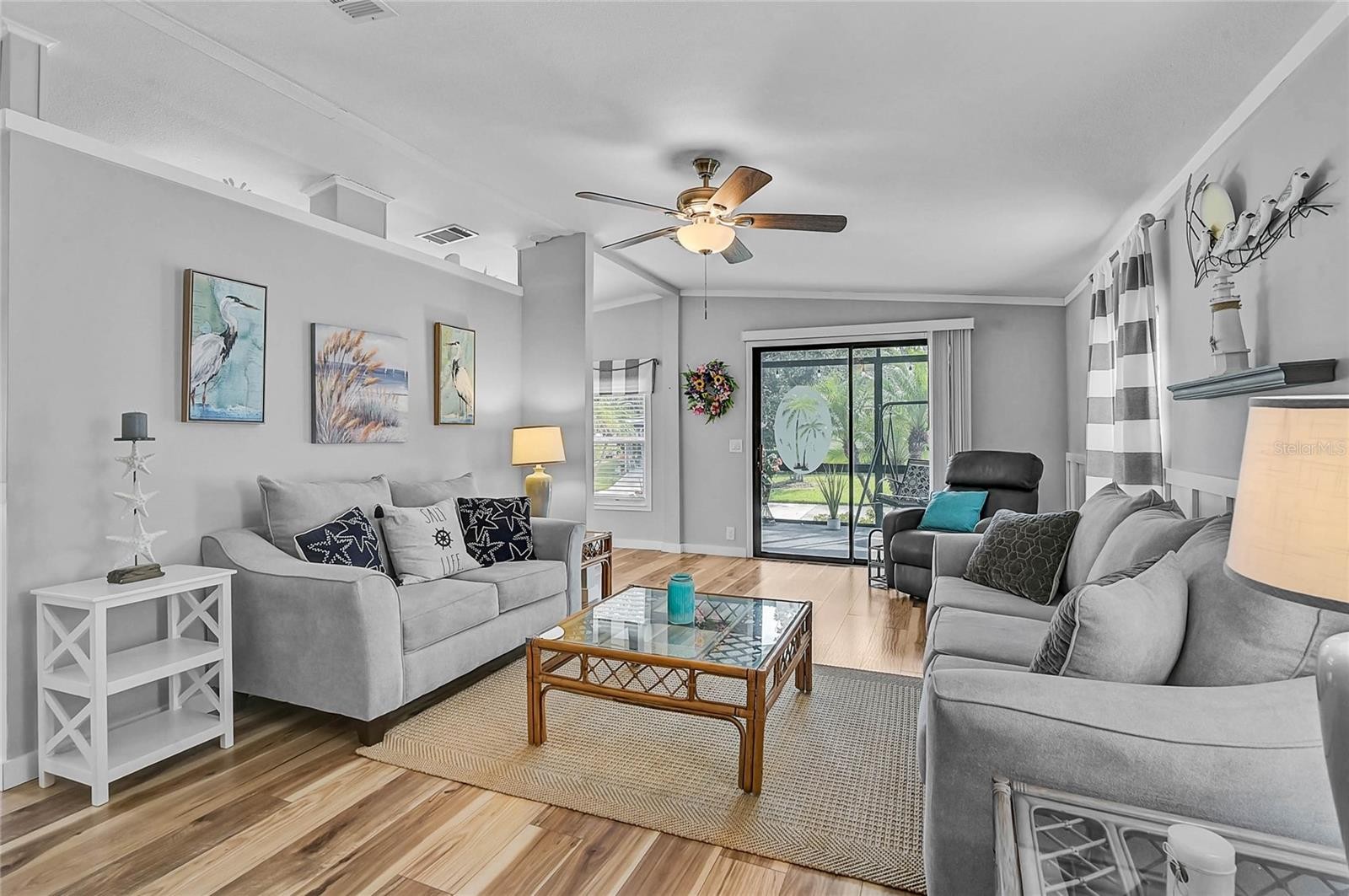 Discover your own slice of paradise and you owned the land, NO LOT FEES! This beautifully updated and partially furnished 2-bedroom, 2-bath ranch-style home sits on one of the largest corner lots in the desirable Ridgewood Oaks, a 55+ gated community with 24-hour security. Surrounded by lush landscaping, the property features a majestic oak tree that offers exceptional privacy and natural shade. The exterior showcases pristine steel siding along with a newer roof, impact windows, doors, with plantation blinds. The screened lanai has been recently upgraded, and the oversized double carport doubles as a perfect outdoor entertaining space, finished with a unique epoxy-coated floor that extends to the steps and front porch. You can easily convert the carport to an oversized double garage. An additional structure provides ample space for a golf cart garage, workshop, or extra storage. The property offers parking for up to six vehicles. Inside, the home has been completely remodeled and thoughtfully designed to resemble a charming coastal craftsman cottage. Enjoy water-resistant hickory wood plank flooring throughout, fresh paint, drywall, custom craftsman trim, plantation shutters, and updated window treatments. The kitchen features new shaker-style soft-close cabinetry, granite countertops, and stainless-steel appliances. The spacious primary suite includes a walk-in closet for added comfort. Conveniently located just steps from the clubhouse and pool, this home also includes lawn care, irrigation, and internet/cable services within the low quarterly HOA fee. Ridgewood Oaks offers an impressive array of amenities including a clubhouse with social activities, swimming pool, spa, clay tennis courts, pickleball courts, shuffleboard, and an outdoor fitness area. The community is golf cart–friendly and welcomes small pets. Ideally situated near I-75, residents enjoy easy access by car or golf cart to shopping, dining, banks, a library, outlet mall, and waterfront restaurants along the Manatee River. With everything so close, you may never need to leave your driveway!