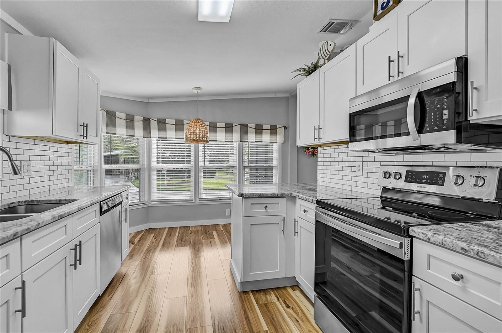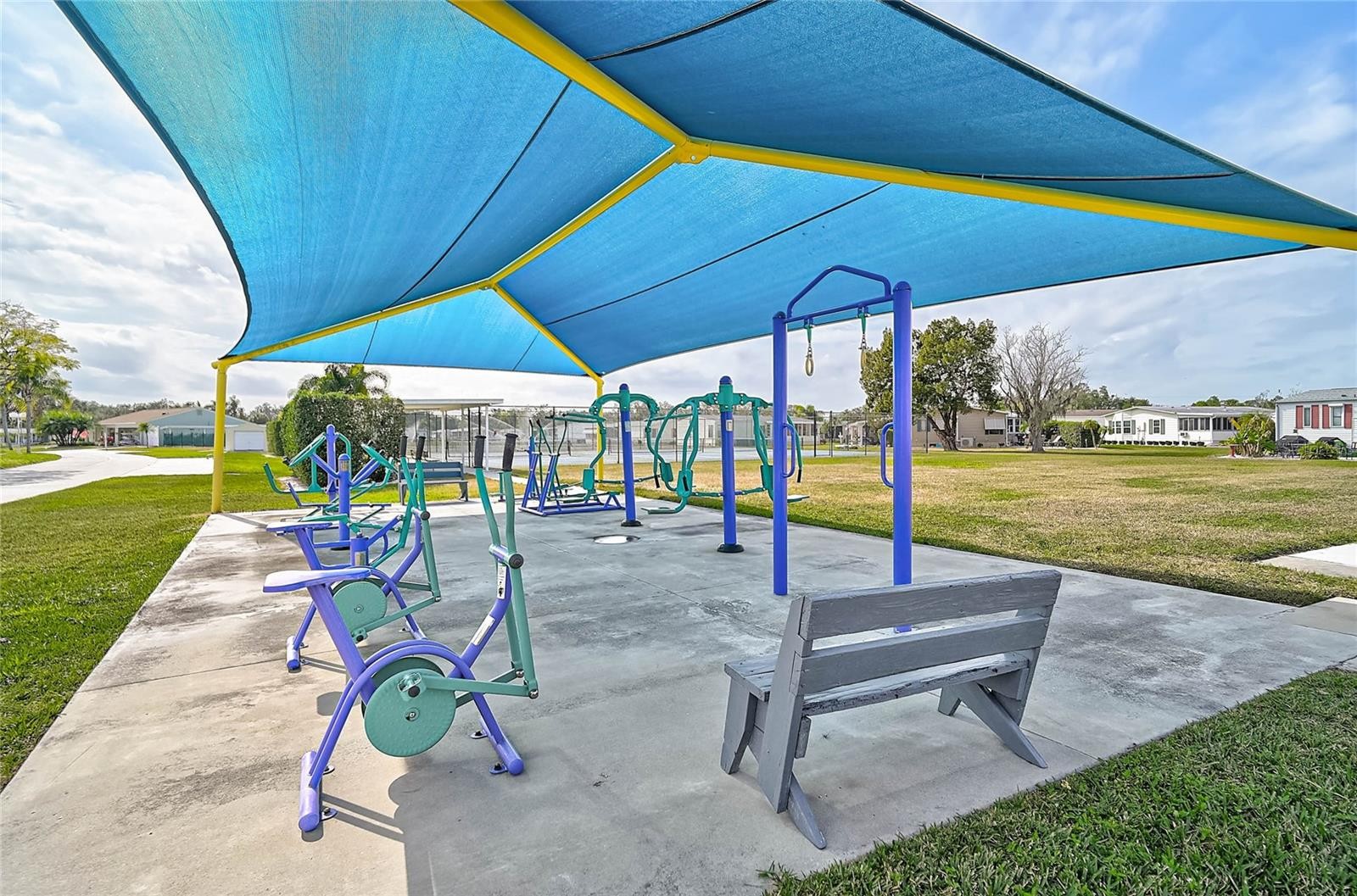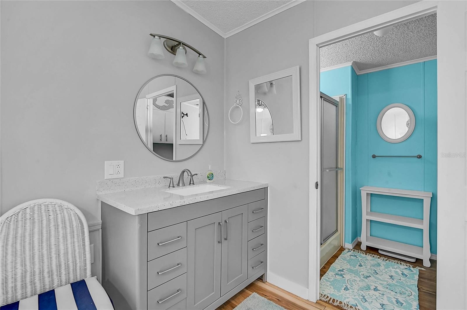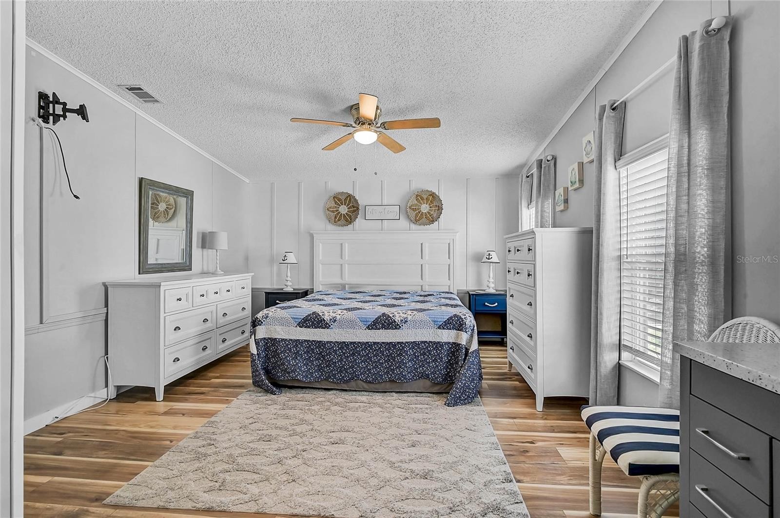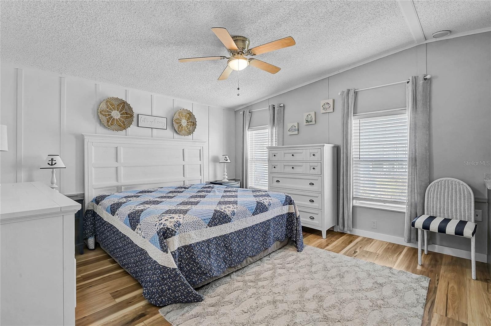 Discover your own slice of paradise and you owned the land, NO LOT FEES! This beautifully updated and partially furnished 2-bedroom, 2-bath ranch-style home sits on one of the largest corner lots in the desirable Ridgewood Oaks, a 55+ gated community with 24-hour security. Surrounded by lush landscaping, the property features a majestic oak tree that offers exceptional privacy and natural shade. The exterior showcases pristine steel siding along with a newer roof, impact windows, doors, with plantation blinds. The screened lanai has been recently upgraded, and the oversized double carport doubles as a perfect outdoor entertaining space, finished with a unique epoxy-coated floor that extends to the steps and front porch. You can easily convert the carport to an oversized double garage. An additional structure provides ample space for a golf cart garage, workshop, or extra storage. The property offers parking for up to six vehicles. Inside, the home has been completely remodeled and thoughtfully designed to resemble a charming coastal craftsman cottage. Enjoy water-resistant hickory wood plank flooring throughout, fresh paint, drywall, custom craftsman trim, plantation shutters, and updated window treatments. The kitchen features new shaker-style soft-close cabinetry, granite countertops, and stainless-steel appliances. The spacious primary suite includes a walk-in closet for added comfort. Conveniently located just steps from the clubhouse and pool, this home also includes lawn care, irrigation, and internet/cable services within the low quarterly HOA fee. Ridgewood Oaks offers an impressive array of amenities including a clubhouse with social activities, swimming pool, spa, clay tennis courts, pickleball courts, shuffleboard, and an outdoor fitness area. The community is golf cart–friendly and welcomes small pets. Ideally situated near I-75, residents enjoy easy access by car or golf cart to shopping, dining, banks, a library, outlet mall, and waterfront restaurants along the Manatee River. With everything so close, you may never need to leave your driveway!
