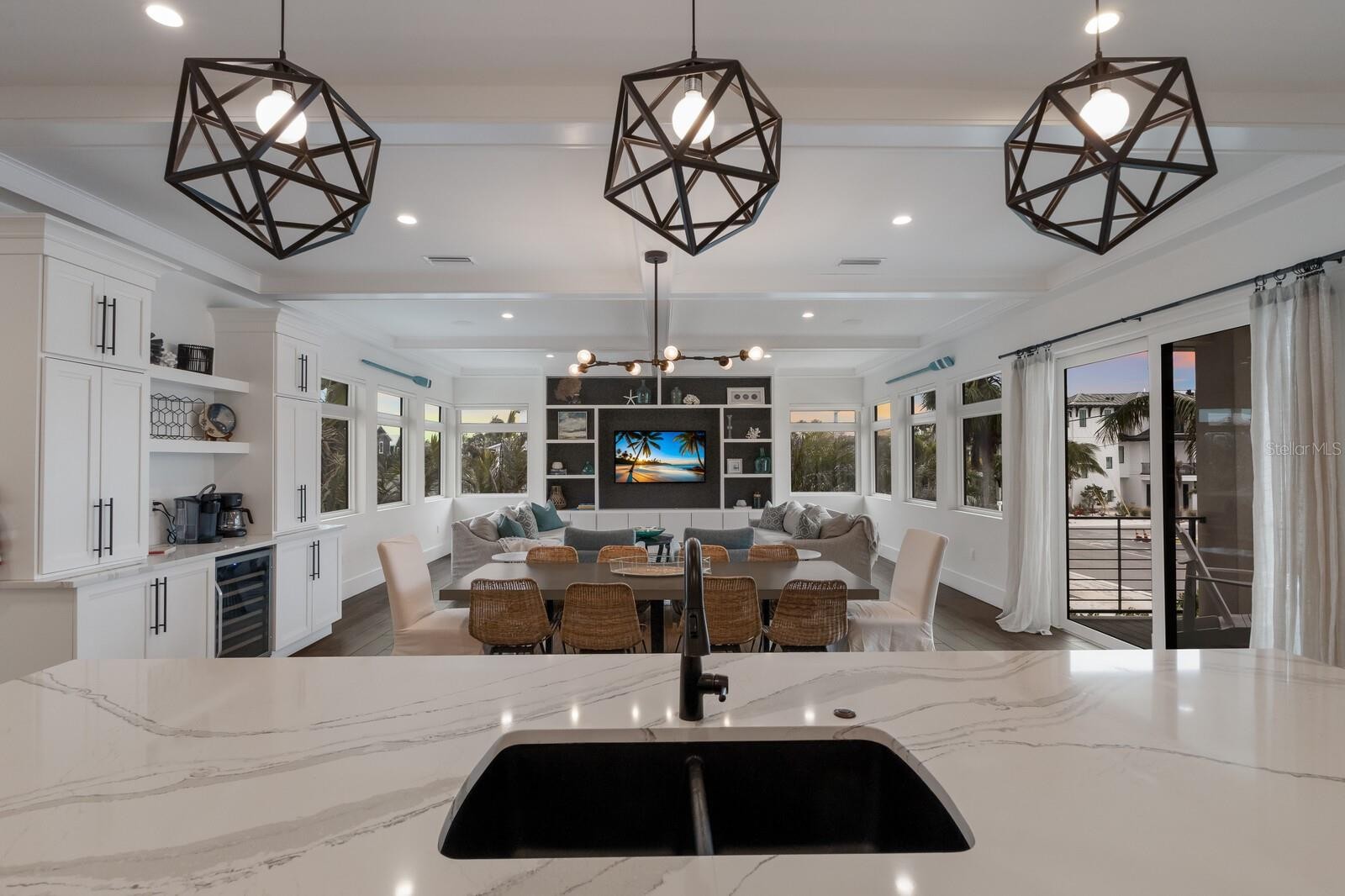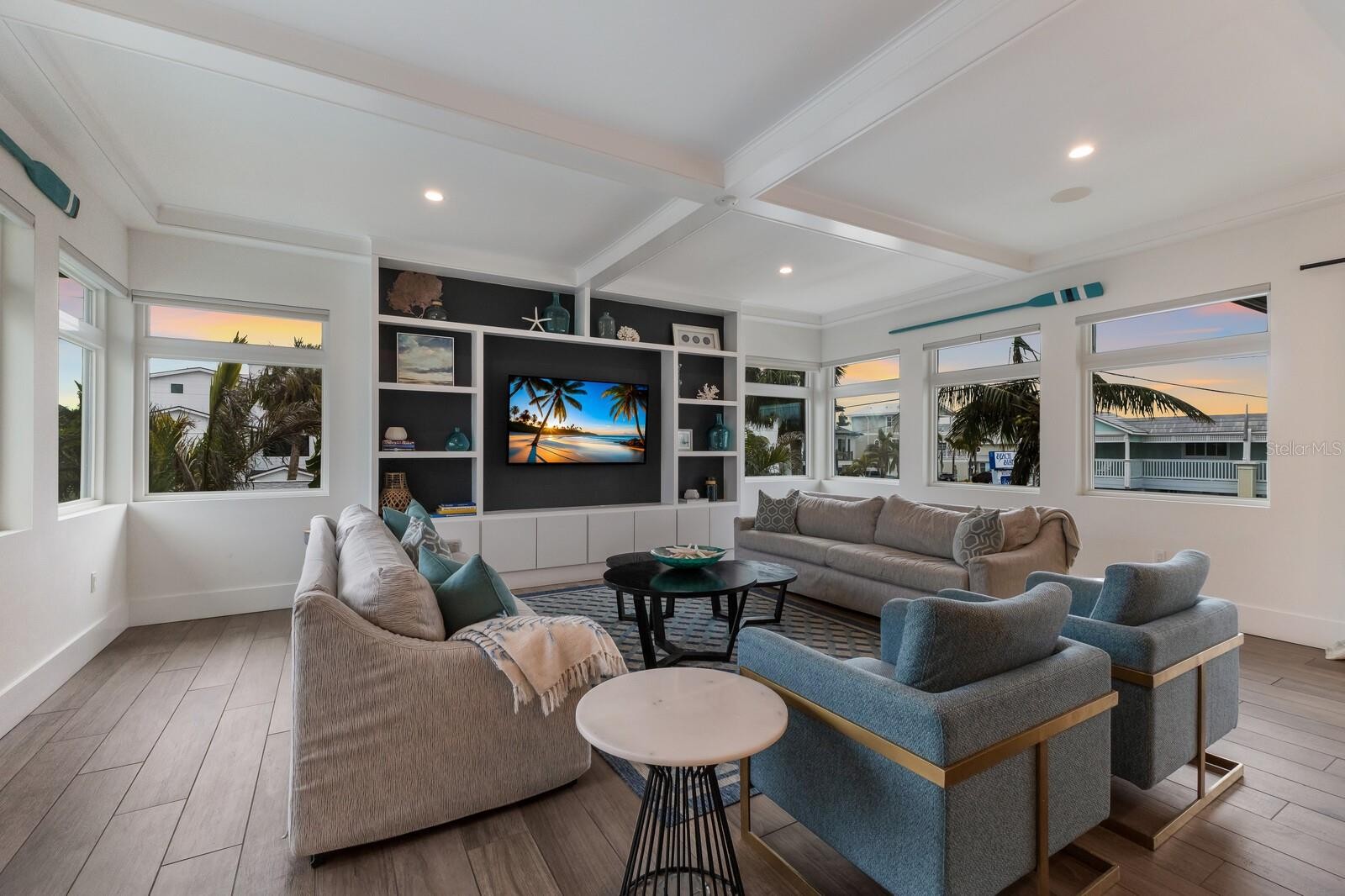Just a few sandy steps from the shores of Holmes Beach, this newly built 4BD/4.5BA coastal haven blends elevated design with the laid back spirit of island living. A proven income generator with bookings already on the calendar, this property offers the rare opportunity to enjoy a luxury retreat that also works for you. Each of the four ensuite bedrooms offers generous space and privacy, three with private balconies, and a primary suite that stuns with sweeping Gulf views and a spa-inspired bath featuring a freestanding soaking tub. The light filled living area flows effortlessly into a sleek chef’s kitchen where a quartz waterfall island, luxury gas range, wine bar, and oversized walk-in pantry cater to everything from casual breakfasts to sunset dinners. Step outside to discover a resort style backyard designed for all day enjoyment including a heated pool and spa, cascading sheer waterfall, outdoor dining and lounge space beneath a covered cabana deck, and lush turf landscaping that’s as beautiful as it is low maintenance. For sunset seekers, the rooftop deck delivers panoramic Gulf and Bay views that make every evening feel like a getaway. Other thoughtful touches include an elevator, bonus flex space, two-car garage, circular drive, and laundry room. All of this is tucked just moments from the best of the island local boutiques and beloved restaurants, making it equally suited as a luxurious full time residence or high performing vacation rental.