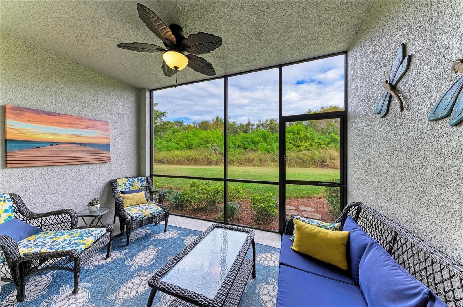 Welcome to your slice of Florida paradise in this Veranda home in the gated resort community of River Strand Golf & Country Club! Offering 2 bedrooms, 2 bathrooms, and a versatile office/flex room, this residence boasts over 1,500 sq. ft. of thoughtfully designed space. The open layout features a spacious eat-in kitchen overlooking the combined dining and great room, creating a bright and effortless flow throughout. The primary suite does not disappoint with dual walk-in closets and a generous en-suite. Guests will be comfortable in the generous guest bedroom and adjacent bath Upgrades include custom wall accents, tray ceilings, and stylish lighting, and the home comes TURNKEY FURNISHED for immediate enjoyment. Two lanais—one in the front and one in the back—provide multiple outdoor spaces to relax and soak in Florida’s beautiful weather. The rear lanai offers serene preserve views, and the property includes a one-car garage for added convenience. Perfect for year-round living, a seasonal escape, or an investment property. This home includes a DEEDED GOLF MEMBERSHIP to River Strand and access to exceptional resort-style amenities. Residents enjoy 27 holes of golf, a clubhouse with restaurant and grille room, two resort pools and spas, a tiki bar, outdoor dining, six satellite pools, two fitness centers, tennis and pickleball courts, fitness classes, social events, and an active community calendar. The clubhouse is in the midst of a multi-million-dollar transformation, with the restaurant, grille room, and outdoor dining areas all receiving beautiful updates. Ideally situated near I-75, you're just moments from Sarasota, Tampa, airports, restaurants, the new Marketplace, and close to the stunning Gulf Coast beaches too. Everything you have been looking for is here, once you experience River Strand at it's best you may never want to leave!