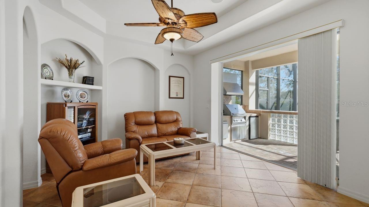 Welcome to this beautiful custom designed six bedroom four bathroom home with a commanding stately architectural presence. *Click on the video link below to tour*. A grand entryway showcases columns, graceful archways, rounded corners, and soaring *10-foot ceilings* throughout, reflecting craftsmanship at every turn. The formal dining room is highlighted by a custom marble inlay floor and generous space for hosting memorable gatherings. The gourmet kitchen is thoughtfully designed for both everyday living and entertaining, featuring abundant cabinetry, a central prep island, double ovens, *new refrigerator and microwave (2024)*, a dedicated coffee station, reverse osmosis filtration, built-in pantry and a display case with glass cabinetry to display fine china and collectibles. The kitchen opens seamlessly to the family room, creating a warm and connected entertaining space. The expansive family room offers a sophisticated yet comfortable setting with a feature wall designed to accommodate large format television. Triple pocket sliding doors fully retract, along with two additional sliding doors opens to create the home’s spectacular resort style outdoor living area. Here, a large swimming pool and built in Jacuzzi are enclosed within a dramatic *newly restored (2024)* two story screened lanai. The *new pool heater (2025)*, allows for year-round enjoyment. An outdoor kitchen with a *new mini beverage refrigerator (2026)*, sink and grill completes the space, ideal for elegant entertaining or relaxed poolside dining. Just off the family room, a versatile bonus space provides an area perfect for a media lounge, home theater, reading retreat, or entertainment room enhanced by custom architectural cutouts. A first floor guest bedroom and full bath offer a private and comfortable suite for visiting family or friends. The spacious indoor laundry room with *new washer (2025) and dryer (2019)*, is near kitchen located by entrance of the abundant three car garage. Upstairs, a sweeping wrought-iron staircase leads to thoughtfully designed living quarters. Two spacious bedrooms share a large Jack-and-Jill bath, while an additional bedroom with its own private bath serves as an ideal retreat for a teenager or extended guest. A generous private office with walk-in storage creates an exceptional work from home environment and can easily function as a nursery. French doors open to the expansive primary suite, featuring 10-foot tray ceilings, an oversized walk-in closet, and a spa-inspired bath with dual vanities, a glass-enclosed dual-head shower, and a luxurious soaking tub all under a *new roof (2024)*. The home provides home security system as well as *new upstairs a/c unit (2024) and downstairs a/c unit (2023)* and energy efficient insulated windows for peace of mind. Residents enjoy a meticulously maintained community with lush green spaces and scenic lakes. For convenience, HOA services include community pool access, Spectrum internet and television, and operation and testing of individual sprinkler systems. Perfectly positioned between University Parkway and SR 70, this distinguished residence offers effortless access to Interstate 75, U.S. 301, Sarasota–Bradenton International Airport, and the region’s world-class beaches and St. Armands Circle to deliver the ideal balance of convenience and refined Florida living. Make this house your next home!!