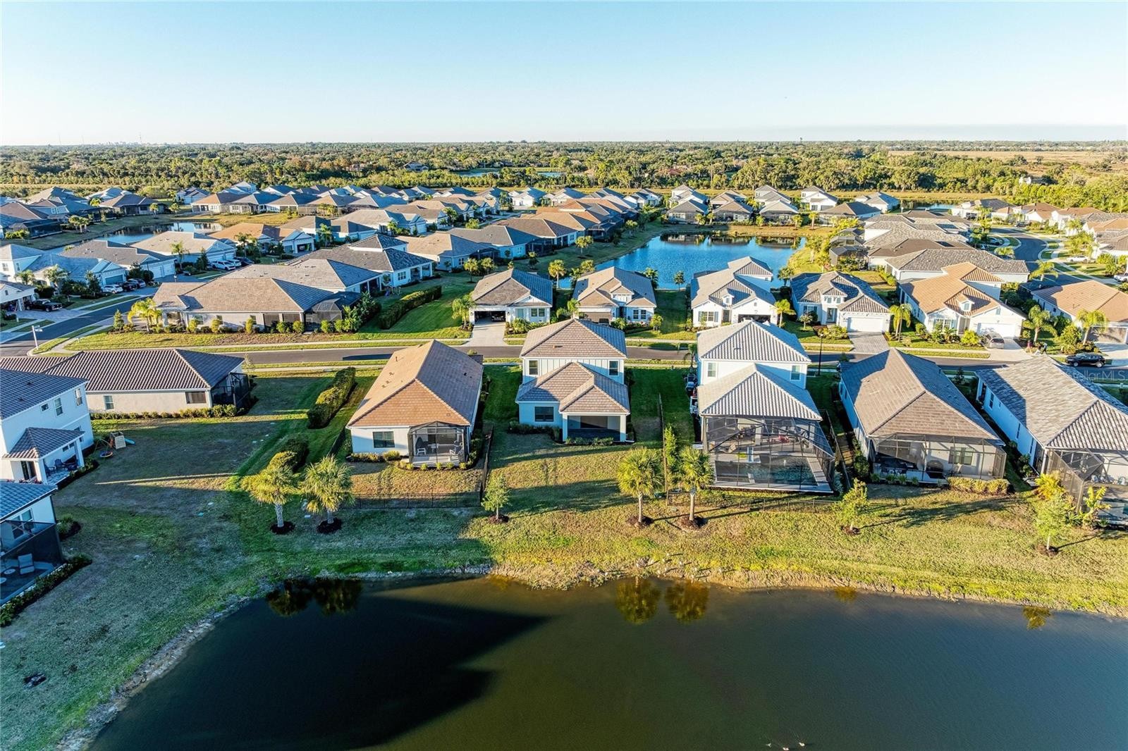MOVE-IN READY and ideally situated within the sought-after, gated community of Grand Park by Neal Communities, this beautifully designed waterfront residence offers the perfect blend of upscale living, thoughtful functionality, and resort-style amenities in a setting tailored for today’s modern family lifestyle. Boasting 2,483 square feet of well-appointed living space, this home features four spacious bedrooms, two and a half bathrooms, and a versatile bonus room ideal for a home office, playroom, media room, or additional living area. The primary suite is conveniently located on the main level, providing privacy and ease of living, and includes a generous walk-in shower and refined finishes that create a true retreat. The heart of the home is the gourmet kitchen, showcasing upgraded stainless steel appliances, quartz countertops, upgraded cabinetry, enhanced lighting fixtures, and quality finishes that seamlessly connect to the open-concept living and dining areas—perfect for both everyday living and entertaining. Floor tile upgrades throughout the main living areas add durability and style, while upgraded bathroom cabinetry and faucets further elevate the home’s refined aesthetic. Step outside to enjoy covered outdoor living on the screened lanai, where tranquil waterfront views provide a peaceful backdrop for morning coffee, evening relaxation, or hosting guests. The two-car garage with opener and brick paver driveway completes the exterior, offering both curb appeal and practicality. Grand Park is a premier, family-oriented community offering an impressive array of resort-style amenities, including a gated entrance, state-of-the-art fitness center, movement studios, resort-style swimming pool, tennis and pickleball courts, bocce ball, dog parks, and miles of scenic sidewalks and trails designed for walking, biking, and outdoor enjoyment. Ideally located near exceptional shopping, a wide variety of dining options, entertainment venues, excellent medical facilities, and just a short drive to world-class Gulf Coast beaches, this home delivers both convenience and an elevated Florida lifestyle. A rare opportunity to own a move-in ready waterfront home in one of the area’s most desirable gated communities—schedule your private showing today.