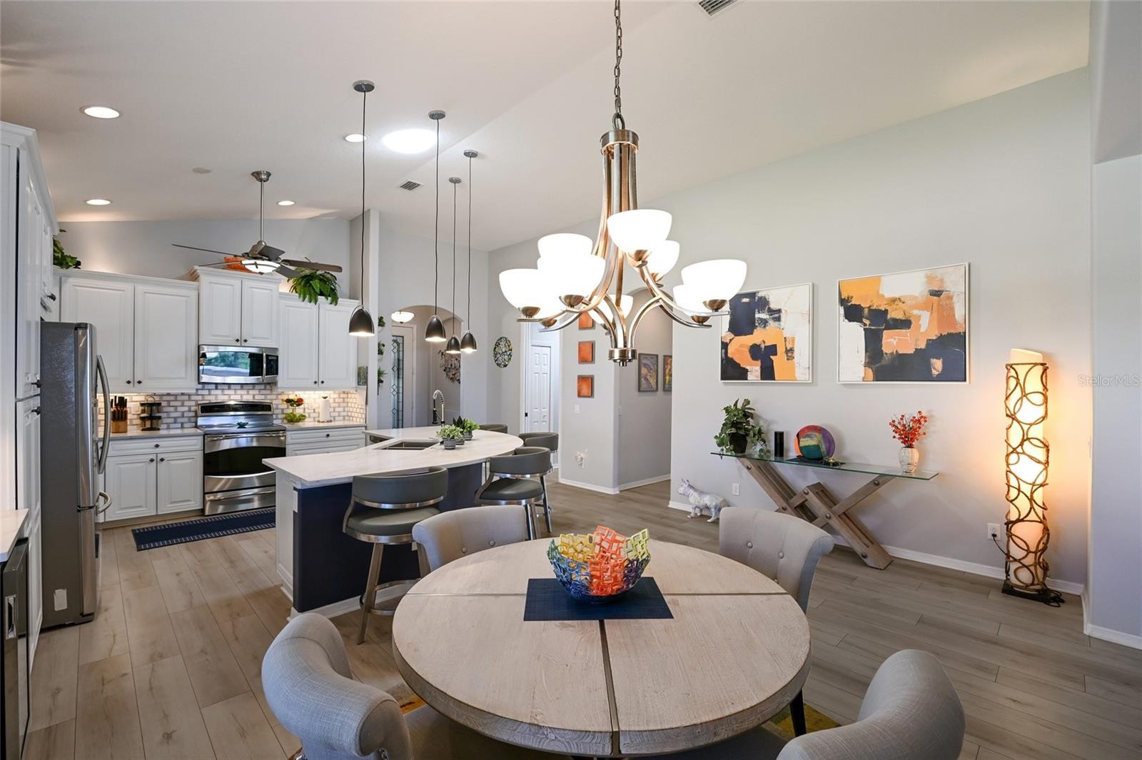 Welcome to Cascades at Sarasota. This Medallion-built St. Thomas floor plan offers 2,159 square feet and sits on one of the largest lots in the community. Featuring 3 bedrooms, 2 baths, plus a flexible den/office, this home is designed for both comfort and the ease of Florida’s active lifestyle. Artist-inspired and beautifully curated, the home reflects a thoughtful balance of color, texture, and lighting throughout. Nowhere is this more evident than in the stunning kitchen, where layered, dimmable lighting—under-cabinet, pendant, and ceiling—creates both warmth and functionality. At the center, an expansive white quartz island invites gathering, whether for casual conversation, meal preparation, or entertaining. The premium induction range, complete with matched cookware, adds both style and performance. The open-concept layout allows for a seamless flow between the kitchen, dining, and living areas, creating an inviting environment for everyday living and hosting guests. A graceful ceiling arch subtly defines the dining space, while new luxury vinyl plank flooring ties the entire living area together—offering both beauty and easy care. Step outside to the spacious lanai, where wide glass doors open to a covered lounge area and a screened sunroom. The view is expansive, overlooking a serene conservation pond frequently visited by white pelicans, blue herons, and snowy egrets—bringing nature right to your backyard. The primary suite is both spacious and refined, featuring engineered hardwood flooring and a California-style walk-in closet. The resort-inspired bath includes a dual-sink quartz vanity, glass-enclosed walk-in shower, and a freestanding soaking tub beneath its own chandelier—an inviting space to relax and unwind. Two additional bedrooms are thoughtfully positioned for guests and share a well-appointed hall bath. One currently serves as the owner’s art studio—an inspiring space for creativity that can easily adapt to your needs. Just off the foyer, the flexible den/office features double entry doors and could even function as a fourth bedroom. Cascades is a vibrant 55+ community where you can be as active as you choose. Enjoy one of Sarasota’s largest indoor-outdoor heated pools, pro-grade Har-Tru tennis courts, and pickleball courts with scheduled play. The impressive clubhouse offers a fully updated fitness center, card rooms, billiards, and a dedicated craft room. Ideally located in Sarasota’s “sweet spot,” you’re just 10 minutes to SRQ Airport, 15 minutes to UTC Mall and the new Mote Aquarium, 20 minutes to downtown’s cultural venues, theaters, and Selby Gardens—and only 30 minutes to the world-renowned powder sands of Siesta Key Beach. Come experience Cascades at Sarasota today.
