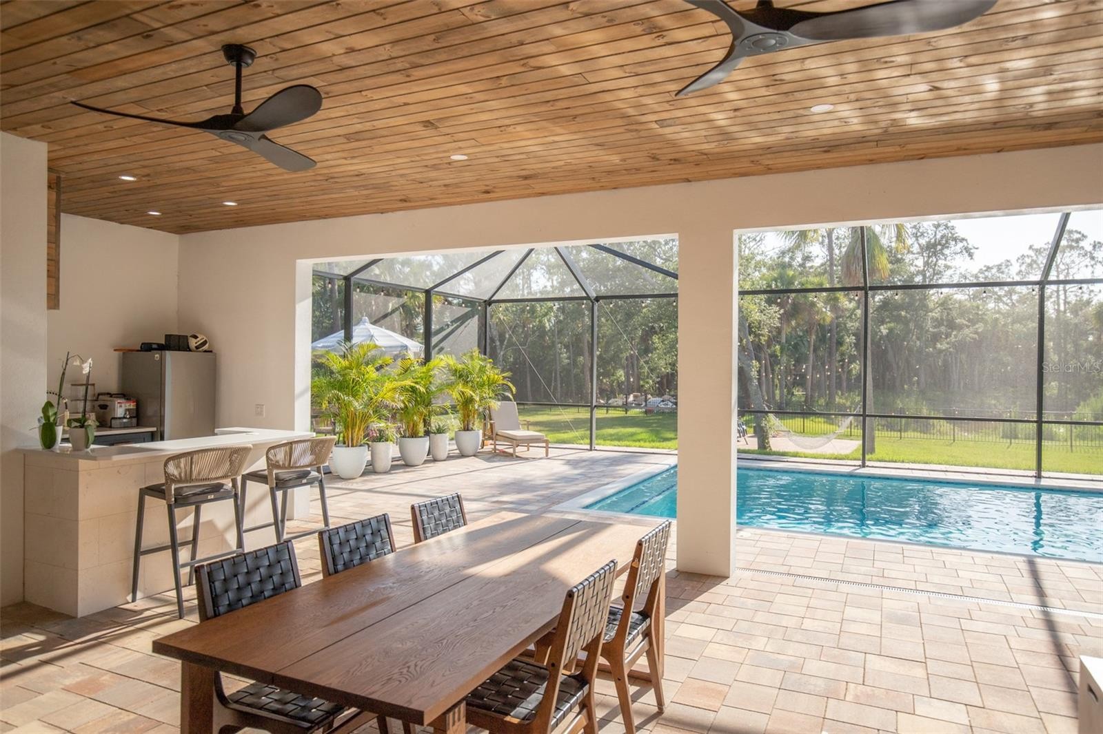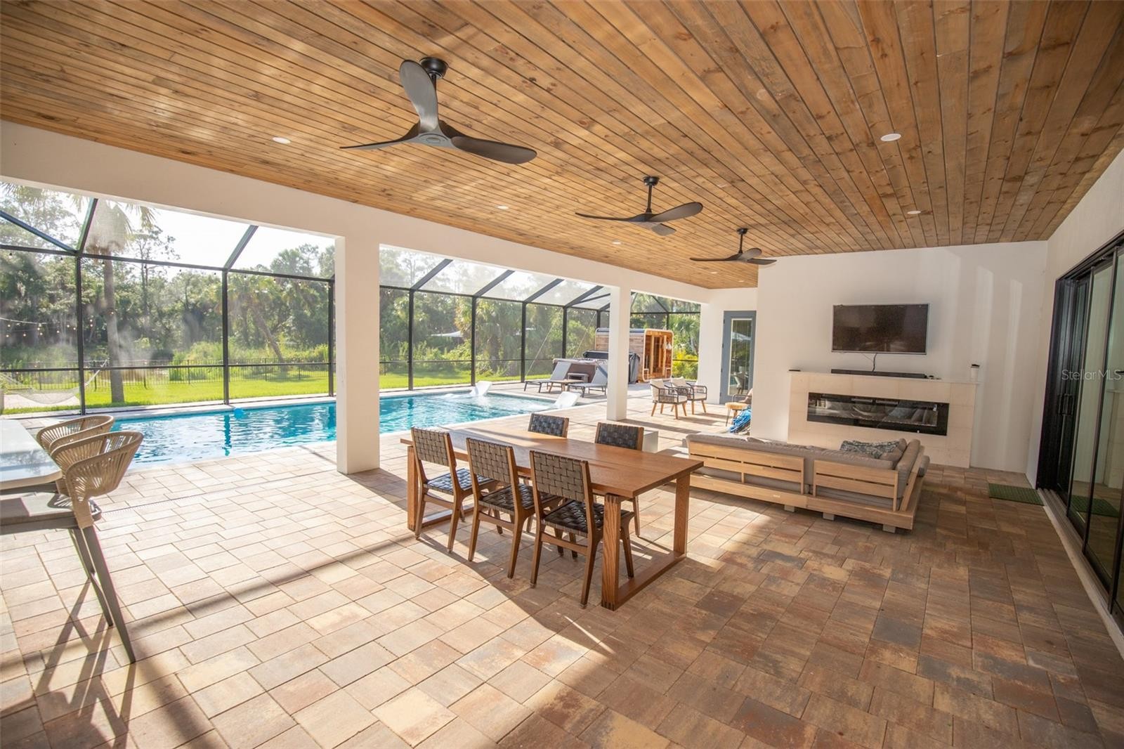 Dreaming of luxury, space, and privacy—all just minutes from the city? This one-of-a-kind custom POOL home on 3 acres in North Port Estates delivers all that and more! With 3 bedrooms plus Guest room, separate study, and a huge bonus/game room, this 4.5-bath home (including an additional pool bath!) is designed for both relaxation and entertaining. Just a 5-minute drive to I-75 and close to top-rated schools, shopping, Beaches and everything Southwest Florida has—this is country living with city convenience! Tucked away behind mature trees and featuring your very own private pond, the property offers serenity, beauty, and endless potential thanks to its AG zoning. Step inside and be wowed by the luxurious finishes: soaring 12 ft ceilings (up to 13’6” in the main living areas!), rich wood beam accents, luxury plank flooring, and custom tilework throughout. The gourmet kitchen is a chef’s dream with quartz countertops, a waterfall island, double oven, ice maker, undercabinet lighting, upper-tier cabinets for seasonal storage, and a spacious walk-in pantry. Each bedroom has its own en suite bath, offering privacy and comfort for family and guests. And the living room? A showstopper with a stunning tile fireplace feature wall and floating wood shelves along with a dry bar, 16 foot sliding door! Need space for your toys? The massive 46x36 air-conditioned garage has room for it all! Keep your cars, tools, and yourself cool and dry inside! Garage also has a gym equipment that can be included. Now, let’s talk outdoor living: the resort-style lanai will blow you away! Imagine lounging in the 15x30 heated pool or hot tub under a 23x78 screened pool cage. Enjoy your own steam room w/ shower, cedar dry sauna, outdoor kitchen with bar, pool bath, fireplace, outdoor shower, and gorgeous tongue-and-groove ceilings. Every detail screams relaxation and entertainment. And there’s more: -Impact-rated hurricane windows & doors -Whole-house reverse osmosis water system -Spray foam insulated attic & insulated interior walls -8 ft solid-core interior doors -Rain gutters, irrigation system, and automatic gated entry -Oversized paver driveway & walkways -Large Insulated attic storage above garage with pull down ladder for easy access This property is not just a home—it’s a lifestyle. Come experience the peace, luxury, and space you’ve been dreaming of. Welcome to your own slice of Florida paradise!