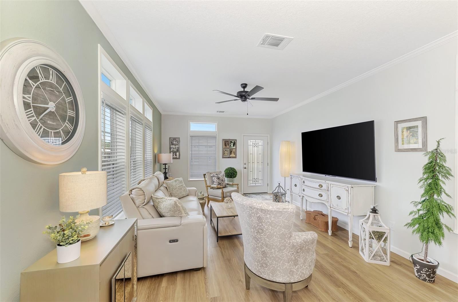 This stunning 2024 Jacobsen custom manufactured 3 bed, 2 bath home is located in Holiday Park a Retiree-friendly 55+ gated community, where your home includes deeded land ownership, your lot is not rented. The floor plan provides a truly open concept incorporating the kitchen, dining and living room area for seamless entertaining and day to day living. Transom windows, allow extra day light to highlight the wall colors and flooring that travel throughout the home to provide an easy style for living and custom design. The kitchen offers plenty of countertop, cabinet space, recessed lighting, with an island for baking, cooking, or gathering around for social conversation and entertainment. The dining area has built in cabinets as well; third bedroom currently used as an office but can transform back to a third bedroom. Primary bedroom includes a Walk-in closet, bath with dual sinks and tiled walk-in shower. This home provides plenty of space, nice floorplan, and many updates. From point of entry to the outside shed space this home has been customized for sensibility comfort, and durability. Many upgrades to this customized Jacobsen Home which offers superior hurricane resistance, high- end energy efficiency and extensive customization, with 65 years of experience they provide, durable quality using 2x6 construction and high-quality materials. Here is the opportunity to own a new home without the wait! Holiday Park is a wonderful community with plenty of activities, two pools, workout room, card room, library, beautiful recreation facility, tennis courts, Bocce Ball, pickleball and more. Buyer must submit an application with non-refundable $50,00 fee for park approval before completion of the sale, leasing allowed same procedure applies. Schedule your showing today!