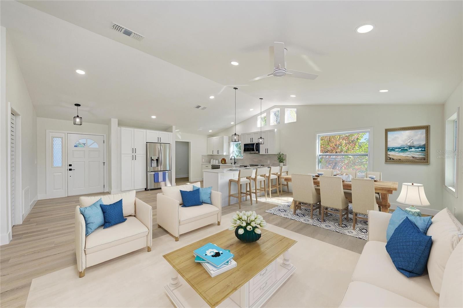 One or more photo(s) has been virtually staged. LOCATION, LOCATION, LOCATION!! Close to all the favorite spots Sarasota, Siesta Key has to offer including the option of walking to Siesta Key beach, downtown Sarasota, St. Armands Circle, and ALL THE FLEXIBLITY WITH NO HOA!! Completely renovated and Move-in Ranch with soaring cathedral ceiings is ready with every inch updated with all brand new features and decorator finishes. From the plumbing including new valves, traps, recirculating pump, and fixtures to the electrical systems to the appliances, soft close cabinetry, bathrooms, tile, flooring, impact windows, solid core doors, and trim--no detail was overlooked or expense was spared. This beautiful ranch is situated on an elevated large corner lot and has a fenced in yard, and 2-stall oversized garage with a pulldown attic to give the buyers plenty of space. Being west of the trail, the new buyer can begin enjoying the 1-mile bike ride or walk to Crescent Beach, without the congestion or traffic of island life. Come and see this beauty today before it is SOLD!!