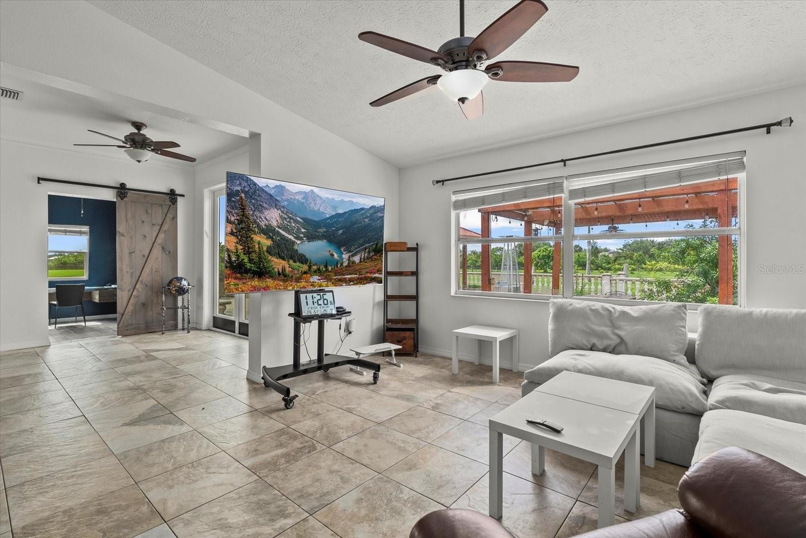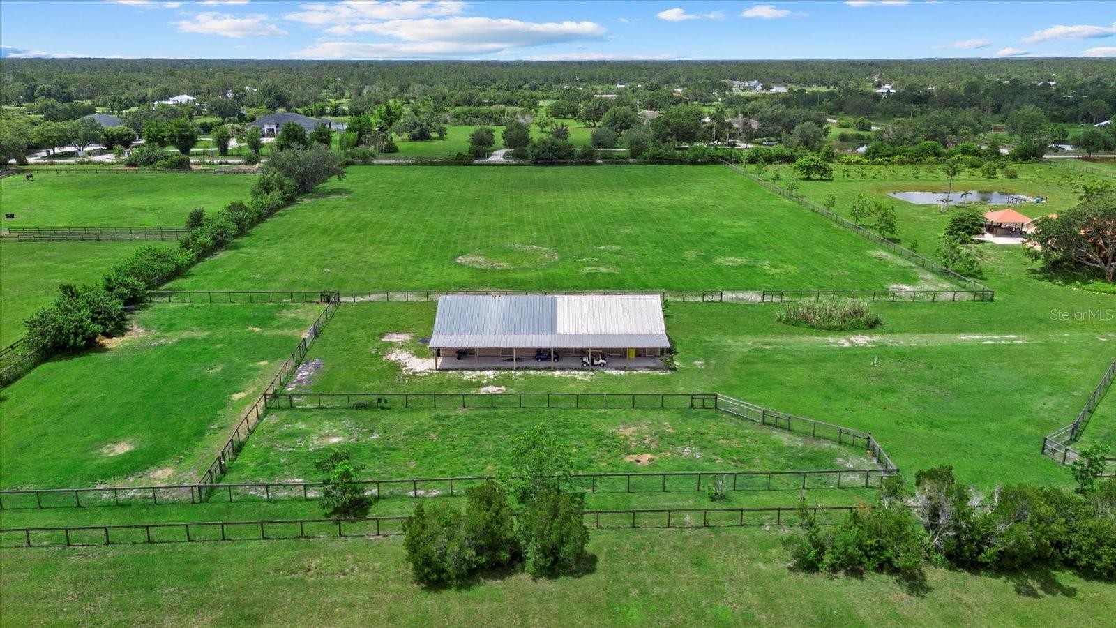 Welcome to your private equestrian retreat in the beautiful Trails of Panther Ridge! Set on 9.4 lush acres, this property offers the perfect balance of tranquility, functionality, and modern upgrades--All secured by a private gated entrance! The home features an open floor plan with split bedrooms and tile flooring throughout. Off the primary bedroom is an office or bonus room. The spacious living room opens to a large patio area with an outdoor kitchen and an oversized heated swim spa—ideal for entertaining or relaxing while overlooking your private pond surrounded by a variety of fruit trees. Major improvements include new air conditioning and ductwork (2021), water heater and garage door replaced (2022), and a long-lasting metal roof installed in 2017, giving you peace of mind for years to come. Equestrian amenities abound with a well-appointed 10-stall, center aisle barn, where each stall is equipped with automatic waterers and fans. There's a tack room, hay storage above, and plenty of covered space for equipment. The property boasts six lush paddocks and is fully fenced with board and no-climb wire for safety and security. Whether you're a serious equestrian or simply looking for a private slice of country paradise, this Panther Ridge gem delivers it all.