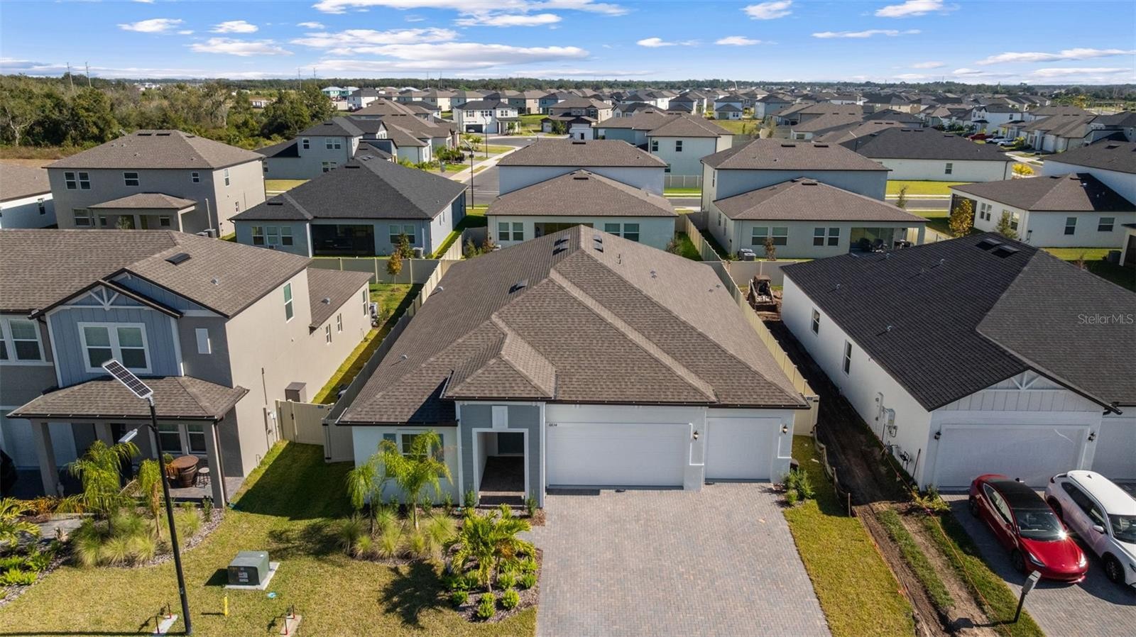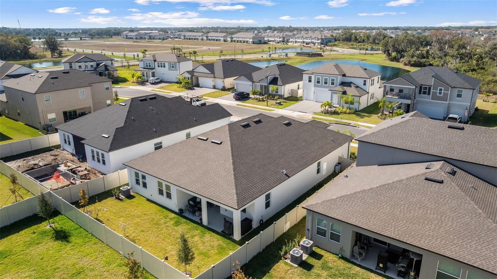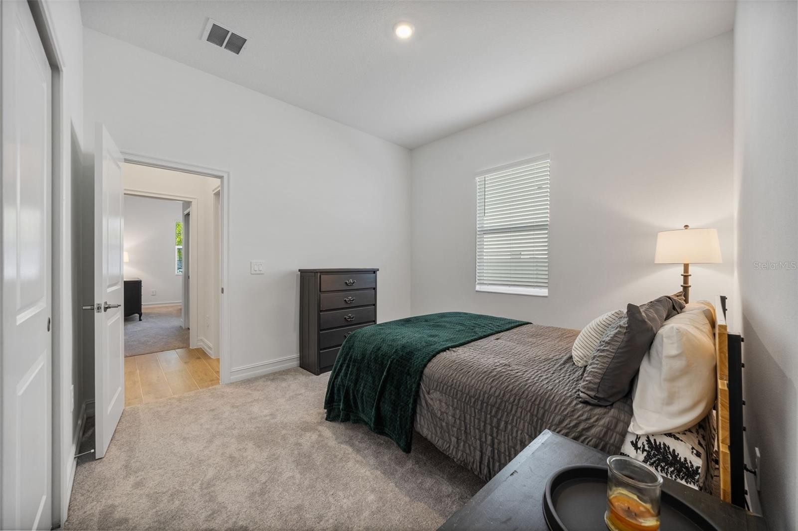 Experience elevated comfort and style in this brand-new 2025 Lennar Home, offering 4 bedrooms, 3 bathrooms, an office/flex room, and 2,610 sq. ft. of beautifully designed living space in the desirable Stonegate Preserve community. From the moment you arrive, the brick-paver driveway and manicured landscaping create a warm, welcoming first impression. Step inside to a bright foyer featuring wood-look ceramic tile, elegant coffered ceilings, and thoughtful architectural details throughout. Toward the front of the home sits a spacious bedroom with access to a full bathroom featuring dual sinks and a partition for added privacy—ideal for guests or multigenerational living. Down the main hallway, you’ll find two additional bedrooms, each with plush carpeting and generous closets. Continue on to discover a stylish dry bar with a wine refrigerator, plus a built-in workstation perfect for remote work or homework. Nearby, the laundry room offers a utility sink and extra storage. A modern second full bathroom sits adjacent to the fourth bedroom, complete with an upgraded shower. The heart of the home is the expansive open-concept living and dining area, highlighted by another coffered ceiling, a large ceiling fan, and sliding glass doors that lead out to the covered patio—perfect for indoor-outdoor living and entertaining. The chef’s kitchen is a true showstopper, equipped with stainless steel appliances, including a gas stove, range hood, dishwasher, microwave, and built-in oven. Enjoy a walk-in pantry, a large island with seating, a dedicated coffee bar, and abundant cabinet and counter space. Retreat to the luxurious primary suite, featuring coffered ceilings, a massive walk-in closet, and a spa-inspired en suite bathroom with dual vanities, a modern walk-in shower, a soaking tub, and a private water closet. An additional office/flex space provides room for a home gym, playroom, or quiet workspace. The home also boasts a three-car garage and a fully fenced backyard, offering plenty of room for pets, gardening, or outdoor relaxation. Residents of Stonegate Preserve enjoy resort-style amenities including a clubhouse, sparkling pool, fitness center, pickleball court, and a fully equipped playground. The location provides quick access to the stunning beaches of Anna Maria Island (just 30 minutes away), upscale shopping at the Ellenton Premium Outlets, and local entertainment such as the nearby marina featuring Pier 22 restaurant. Schedule your private showing today!