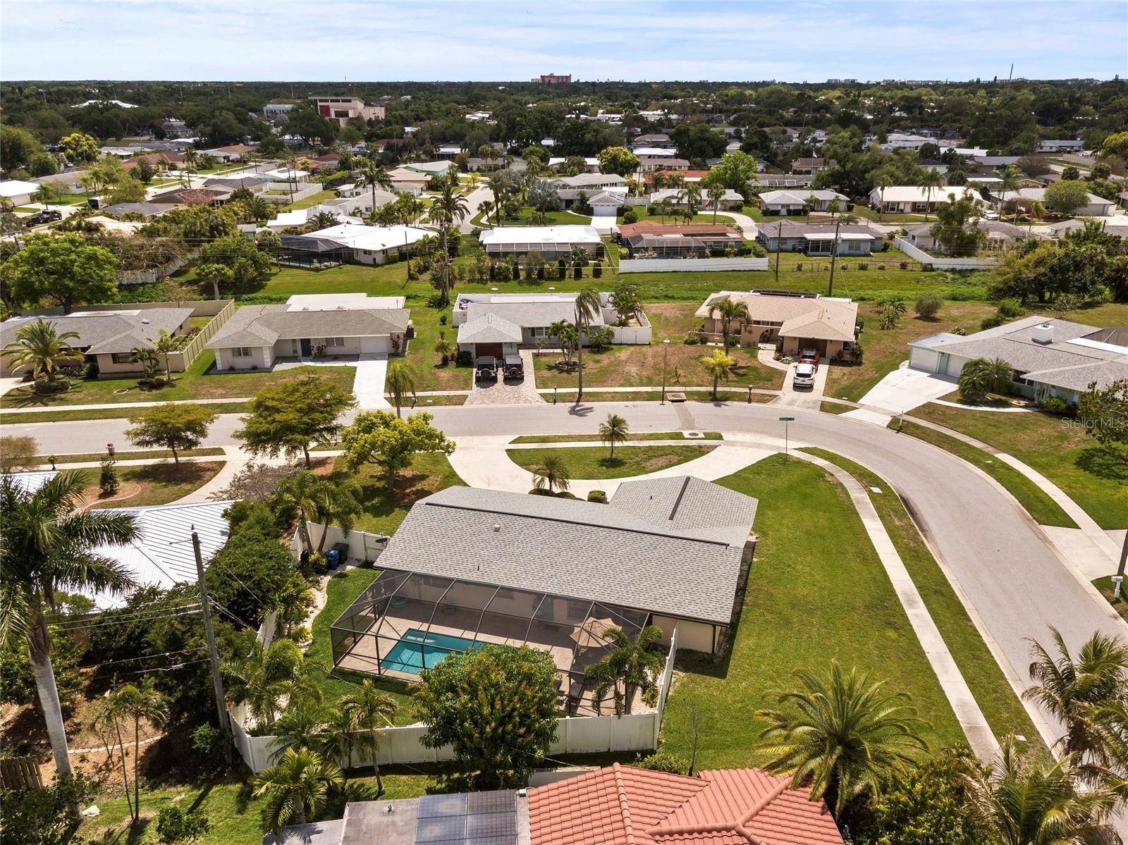 A fantastic opportunity to own a home in the highly desirable Gulf Gate community. This property also offers 1% lender credit at closing. Featuring 2 bedrooms, 2 bathrooms, and a spacious one-car garage with a circular driveway, this home provides both comfort and convenience. The interior showcases an open-concept living and dining area with tile flooring throughout, creating a bright and inviting space. The kitchen has been updated with granite countertops, and both bedrooms include walk-in closets for ample storage. A versatile bonus room offers flexibility as a home office or potential third bedroom. Upgrades include a 2021 roof, updated ductwork, improved underground plumbing, a new AC system installed in 2024, and an upgraded main electrical panel to a new 200-amp panel in 2024. The property also features a newly installed sprinkler system covering the entire landscape, along with landscape lighting with a timer in the backyard, both added in 2024. Step outside to enjoy the fully renovated saltwater heated pool and screened lanai—perfect for relaxing or entertaining. Ideally located just minutes from Siesta Beach, the Legacy Trail, shopping, dining, and the neighborhood library, this home is surrounded by everyday conveniences. Gulf Gate also features sidewalks, streetlights, and is within walking distance to top-rated Gulf Gate Elementary School.