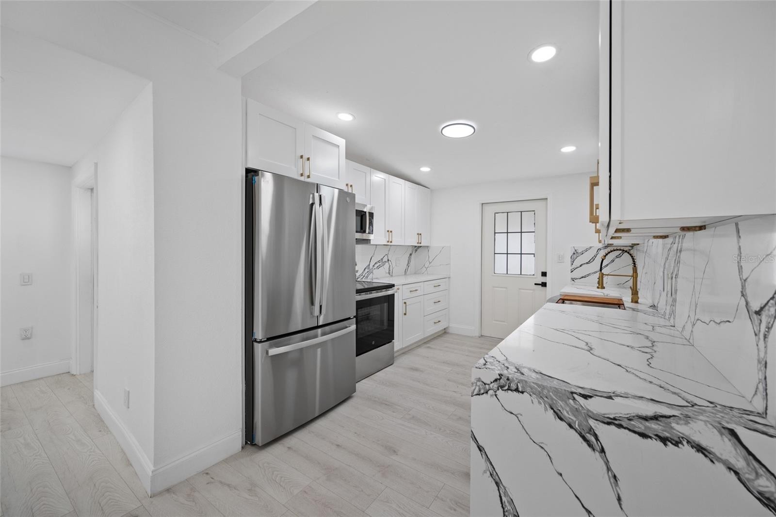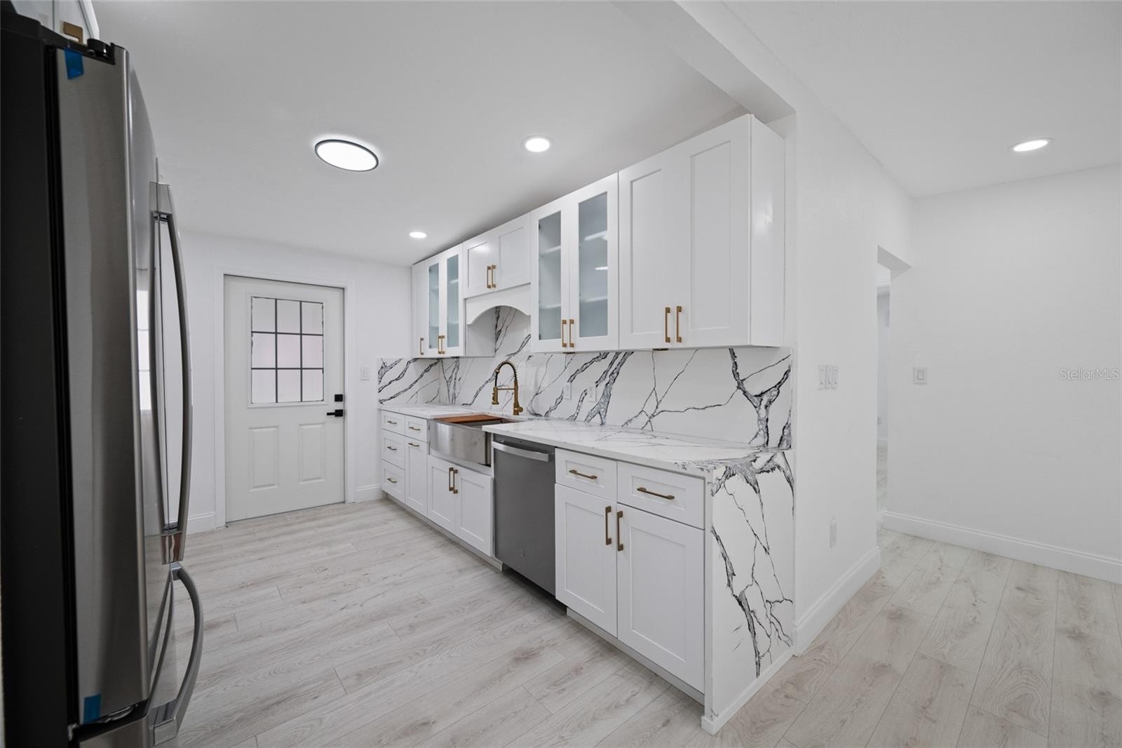 Fully Remodeled 2BR Waterfront Home with Private Creek Access to Tampa Bay Beautifully updated 2-bedroom, 1-bath home featuring high-quality vinyl flooring throughout and a bright, open living space. The kitchen stands out with high-end quartz countertops and matching backsplash, new stainless steel appliances, New cabinetry, and a farmhouse sink. The bathroom has been completely remodeled with stunning tile work, a new vanity, modern mirror, and upgraded lighting. Mini-split systems throughout provide efficient, customizable comfort. Enjoy a large fenced backyard with direct access to a peaceful creek that leads to Tampa Bay perfect for relaxing or enjoying the Florida lifestyle. No HOA. No CDD. Move-in ready.