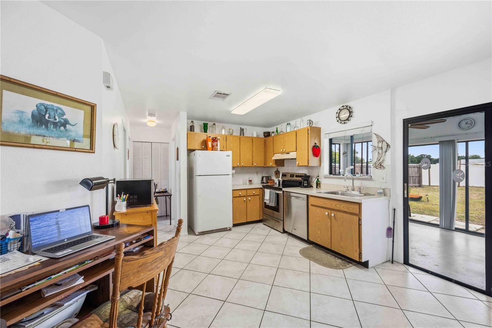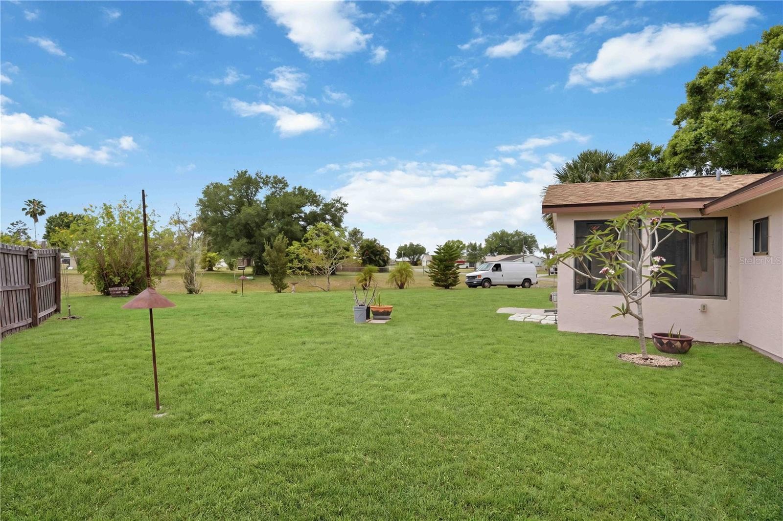 Nestled on a spacious and oversized corner lot at the intersection of Kenwood Dr. and Elmwood Rd., this charming 2-bedroom, 2-bathroom single family home delivers the perfect blend of comfort, privacy, and Florida lifestyle. A stunning heritage oak tree anchors the front yard, providing gorgeous curb appeal and natural shade that greets you the moment you arrive. The corner windows in the front of the home frame a picturesque view of this beautiful tree, filling the interior with warmth and character. Step inside to find a bright and inviting layout featuring a generous Florida room with sliding glass doors that open out to an oversized backyard. Whether you are dreaming of a future pool, creating a space for entertaining, or simply enjoying the outdoors, this yard has the room to make it happen. A greenbelt lines the back edge of the property, offering a natural privacy buffer, while fencing along the neighboring property adds an extra layer of seclusion. This home is connected to city water and sewer, and major systems have been updated for peace of mind. The roof was replaced in 2019, the HVAC system was updated in 2016, and the electrical main panel was replaced in 2017. Most windows are fitted with hurricane shutters installed in 2019, keeping you prepared and protected through storm season. With a 1-car garage, a prime corner lot location, and a long list of key updates already completed, 6911 Kenwood Dr. is a fantastic opportunity to own in one of North Port's established neighborhoods. Schedule your showing today before this one is gone.