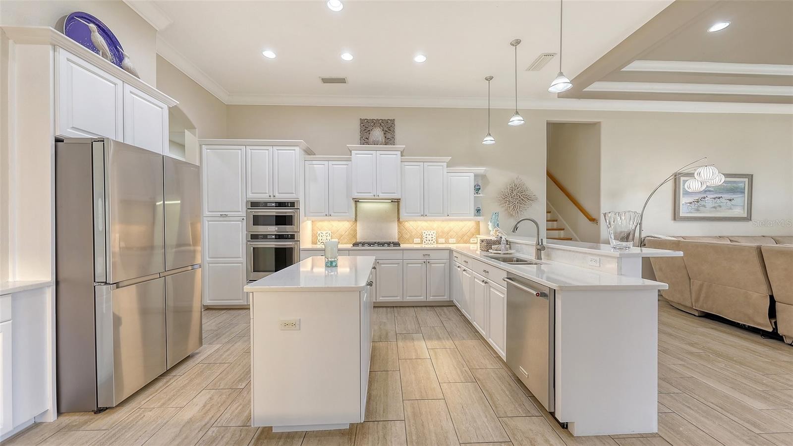 Welcome to "The Dominion" in the gates of Lakewood Ranch Country Club. This custom Arthur Rutenberg masterpiece – The St. Vincent II model – offers the best in Florida luxury living. Perfectly situated on a premier homesite with breathtaking views of the golf course and glistening lakes, this "like new" 5 bedroom, 4 full bath, 2 office, is move in ready and even has a spacious upstairs bonus room, private guest suite, and covered balcony that overlooks the golf course and pool. This home provides the ideal blend of space, elegance, and function. The thoughtfully designed floor plan includes a newly updated chef’s kitchen with Quartz counters, high-end appliances, solid Wood Cabinetry & built-in pantry, and an open layout with beautiful outdoor views that flow through the Gathering Room. Architectural details abound: the stately exterior beckons you inside to take in the intricate crown molding, high tray ceilings and built-in features. The executive office located in the front of the home is spacious with built-in work space, cabinetry and is full of natural light. The secondary office/flex room (with full closet) is located at the rear of the home overlooking the golf course, and sliding glass doors open onto the pool deck. High decorative ceilings throughout create a sense of timeless sophistication. The primary suite is conveniently located on the main floor in its own private wing. With high ceilings, access to the pool and lanai area, this suite will accommodate large estate furnishing in style. Dual walk-in closets, and a luxurious and recently updated bath with a large walk-in shower, garden tub, and private water closet with bidet, round out the primary suite. Step outside to your private saltwater pool and spa oasis, surrounded by lovely paving brick, and unwind under the covered lanai or in the cabana with a fully equipped modern summer kitchen—perfectly designed for year-round entertaining. The circular drive, side-entry garage, and dual 220V EV charging stations add modern convenience as well as curb appeal. RECENT UPDATES: travertine-style porcelain tile, luxury vinyl plank flooring, new countertops throughout (except office), newer appliances including dishwasher, refrigerator, oven, cooktop, and dual-function microwave, front loading washer&dryer, All 3 AC units replaced with high-efficiency filter systems, and a 24KW natural gas Generac Whole House Generator keeps everything running during power outages, updated security system, recently refinished wood ceilings and freshly painted cabinetry (excluding office), along with an upgraded outdoor grill and hood. 2025 Roof inspection report available. Windows are rated for 130mph wind loads. Resort-style living with an optional membership to The Lakewood Ranch Country Club—offering 4 championship golf courses, 3 luxurious clubhouses, 18 Har-Tru tennis courts, pickleball, state-of-the-art fitness and aquatic centers, walking trails, and many social events. With no waitlist and optional membership, the choice is yours. Situated near high-rated schools, premier medical facilities, parks, shopping, dining, and just minutes to Gulf Coast beaches, this property represents a lifestyle of luxury. Schedule your private showing today! **THIS PROPERTY QUALIFIES FOR A 1% LENDER INCENTIVE IF USING PREFERRED LENDER. INQUIRE FOR MORE DETAILS.**