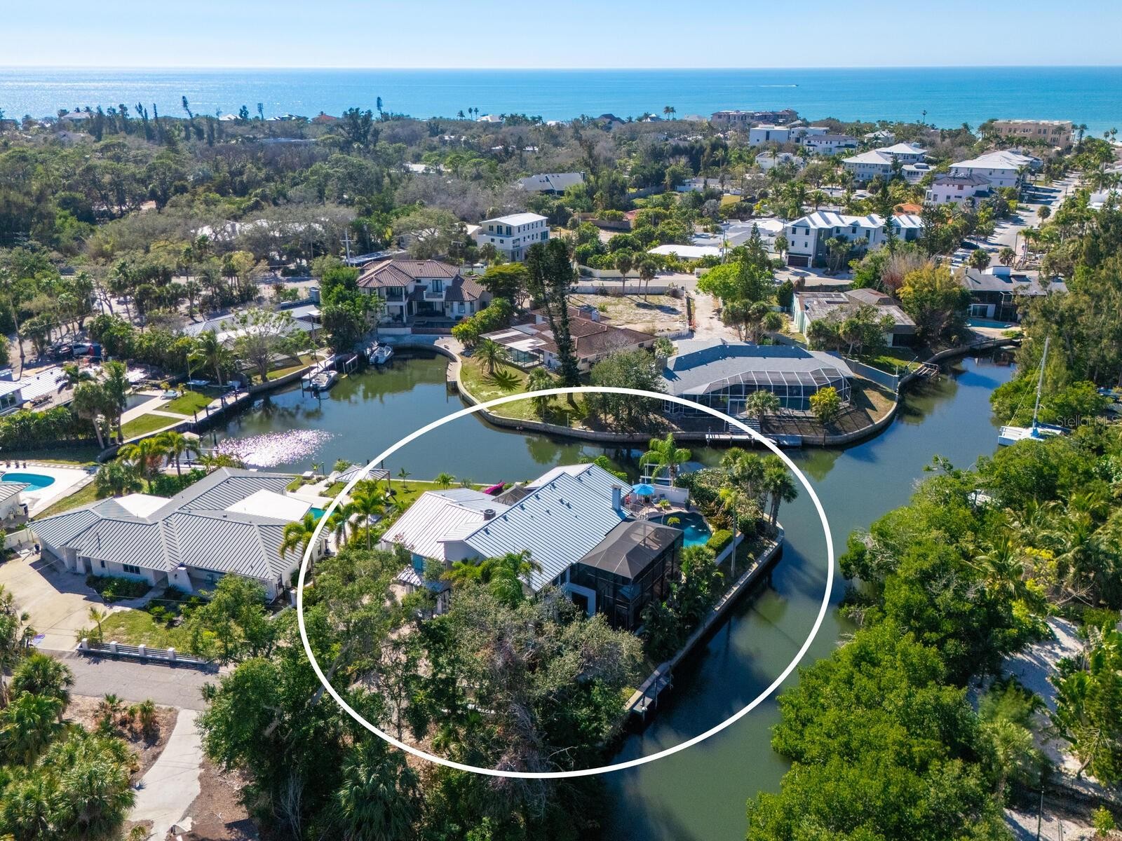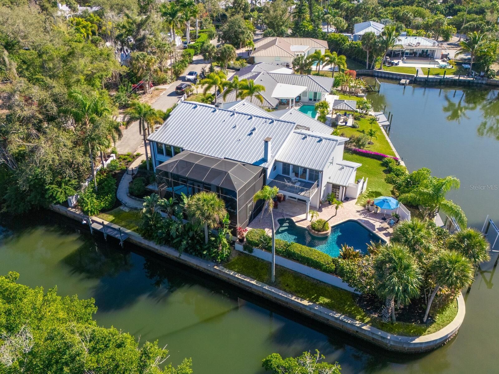 Beautifully private, this exceptional Siesta Key residence delivers the lifestyle discerning island buyers seek. Ideally near the aqua Gulf waters and powdery white sands of Crescent Beach, and moments from the peaceful shoreline of Turtle Beach, this remarkable coastal retreat spans approximately 230 feet of protected boating water and is tucked at end of a quiet, tree-lined street, offering rare privacy and a sense of peaceful seclusion seldom found on the island. This two-story home offers flexible living with three to four bedrooms, six and a half baths, an office or den, and thoughtfully designed indoor-outdoor areas that define relaxed island luxury. A gracious arrival sets the tone as antique wood and glass double entry doors open to a light-filled foyer and formal living room, anchored by a custom electric fireplace and framed by soaring windows. Natural light pours in, highlighting architectural details and creating an immediate sense of warmth and understated sophistication. The heart of the home is a magnificent kitchen designed for entertaining and everyday living, featuring a generous central island that flows seamlessly into the inviting family room with a wood-burning fireplace. Walls of glass throughout dissolve the boundary between indoors and out, creating a seamless connection to the lush, private surroundings. The main level includes a private guest en-suite with direct lanai access, along with a unique screened atrium, an inviting space for alfresco dining, sunning or quiet relaxation. An adjacent flex room easily serves as an office, studio or additional guest suite, offering versatility for today’s evolving lifestyles. Upstairs, a graceful, curved staircase leads to another en-suite bedroom, a full bath adjacent to the office or flex space, and owner’s retreat. The primary suite is a sanctuary, complete with separate spa-inspired baths, expansive walk-in closets, and a private sunset terrace overlooking the pool and tranquil canal waters, an ideal setting to unwind at the end of the day. Outdoors, the property transforms into a private waterfront oasis. The lushly landscaped pool area features cascading fountains, while boating enthusiasts will appreciate 230 feet of seawall, a private dock, 7,000-pound boatlift, kayak lift and separate fishing pier, all on deep, protected water with quick access to Sarasota Bay and the Intracoastal Waterway. Notably, the property experienced no damage or flooding during the 2024 storms, according to the owners, offering valuable peace of mind alongside its exceptional setting. Enjoy effortless access to the beach, nearby restaurants and shops, and free island trolley. When you’re ready to venture beyond the island, downtown Sarasota is just minutes away over the south bridge, offering world-class dining, arts and culture, including The Ringling, Van Wezel Performing Arts Hall, St. Armands Circle and vibrant Sarasota Farmers Market. This is a rare opportunity to own a storm-resilient waterfront retreat that seamlessly blends privacy, boating access, accessibility and timeless coastal elegance, the best of Siesta Key living.
