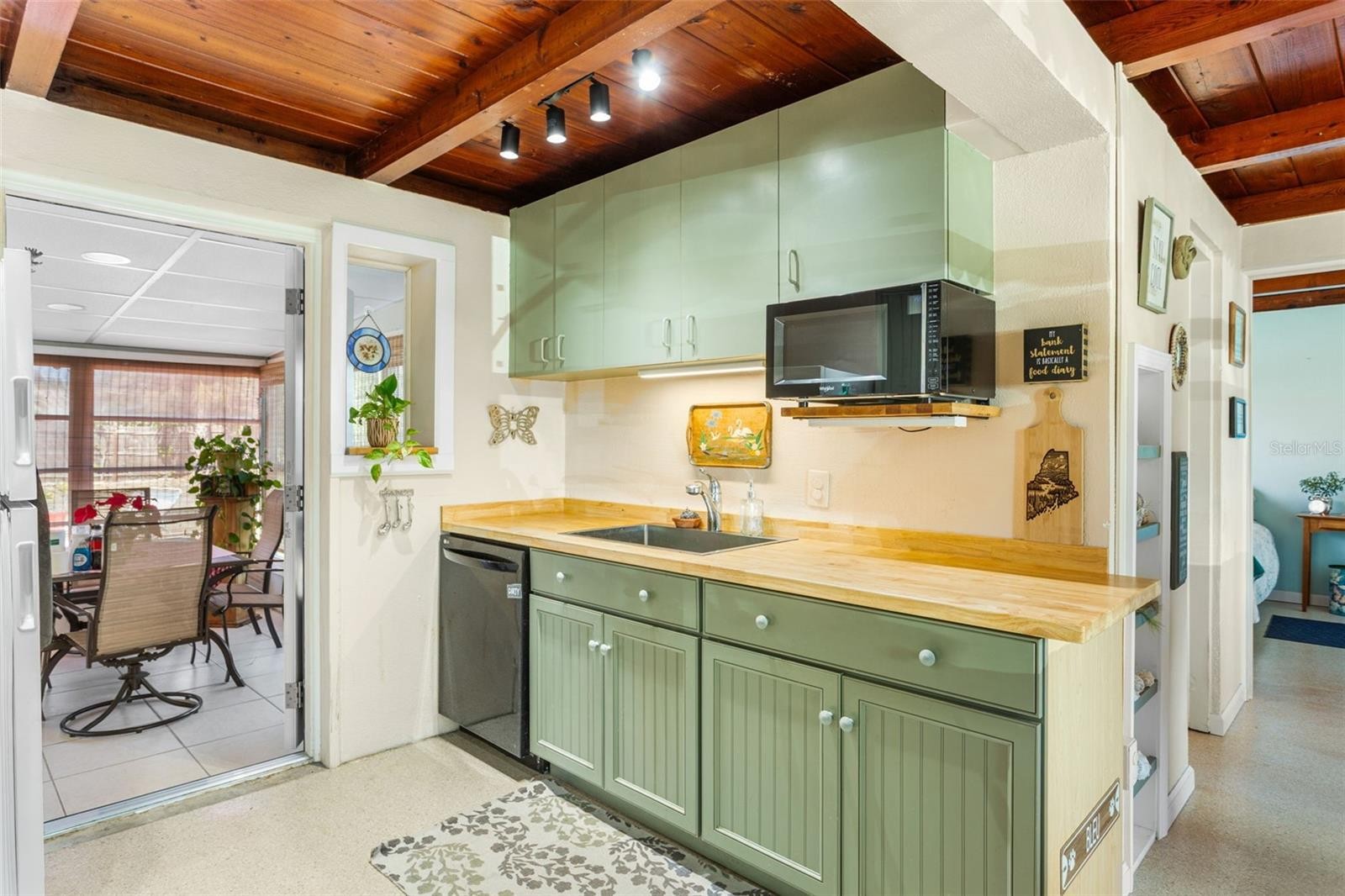 In the heart of Englewood is this charming 2 bedroom bungalow with a large 12' x 20' Florida room adding to your living space! There’s no Deed Restrictions and this is NOT located in a Flood Zone! This home has been well cared for and has features that preserve it’s lovely character such as exposed wood beam ceilings, Sage cabinets with Butcher Block countertops, and plantation shutters for each window! An abundance of natural light fills each room making this home feel bright and spacious. Neutral Tile and newer slip resistant epoxy terrazzo style flooring run throughout the home providing a long-lasting durability! The entryway currently used as an office is a great Flex space that can be customized to your needs. Once inside, you’ll find a spacious living room which opens to a Kitchen adorned with soft colors, downlighting highlighting the beautiful butcher block counters, a modern stainless-steel sink and appliances for all of your needs. Just off the Kitchen is a laundry room with space for a stackable washer and dryer and additional cabinetry for overflow pantry items. Step into the generously sized Florida Room with LED lighting and more cabinetry for pantry storage! From a dining area to a living room, the Florida Room has endless possibilities! Enjoy a very private, fully fenced back yard with room for a pool! This home’s location is spot on for walking/biking to Dearborn Street, Englewood Beach, shopping, dining and more! Start living your Best Southwest Florida Lifestyle!