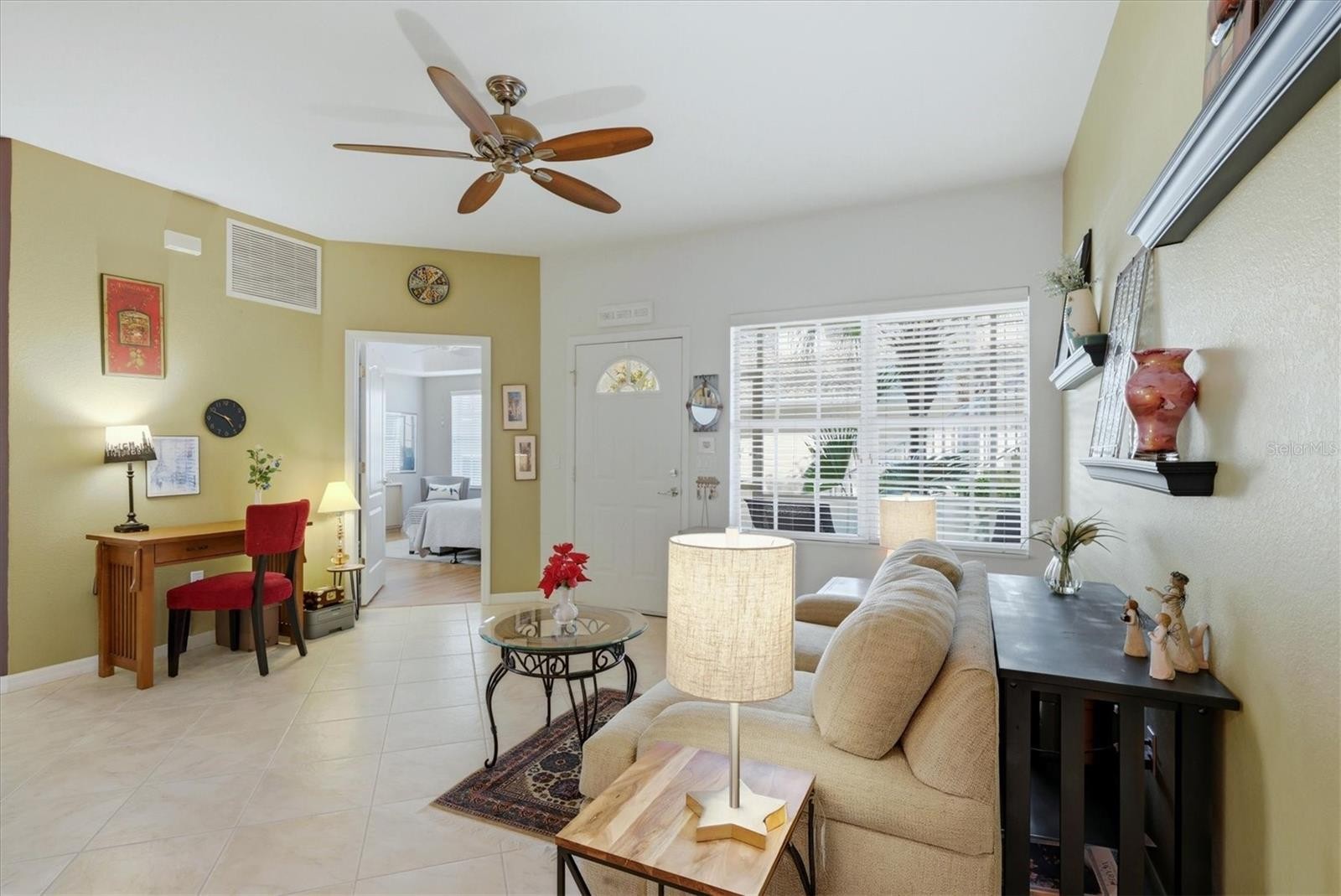 Welcome to your slice of paradise in the sought-after Mirabella Community in Venice, Florida. This 2-bedroom, 2-bath condo offers 1,235 square feet of living space. Your private screened porch is ideal for morning coffee and paper, or evening beverages. The kitchen and dining area have an abundance of cabinets, all equipped with pull-out drawers and shelves, and a water filtration system. The seating area behind the kitchen can serve as a family room or den. The split-bedroom layout has a pocket door that closes off the 2nd bedroom providing just the right amount of privacy for each. Both bedrooms have huge walk-in closets and tray ceilings. All the flooring is porcelain tile or wood, so don’t worry about tracking sand on the carpet. The private one-car garage is just steps from the front door. There is a private water bib for the owners use only for those times when you need external water. This intimate community offers fantastic amenities, including a heated swimming pool, a clubhouse for social events, and common outdoor spaces. Mirabella is conveniently located close to downtown Venice, area beaches, shopping, restaurants, medical facilities and much more. We will look forward to handing the front door keys to you very soon!