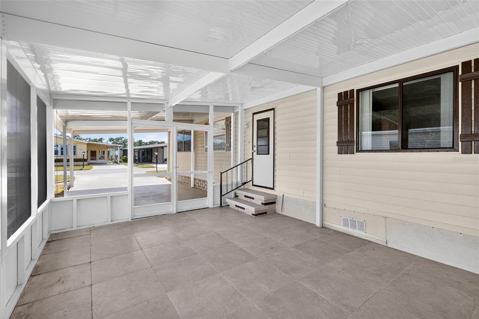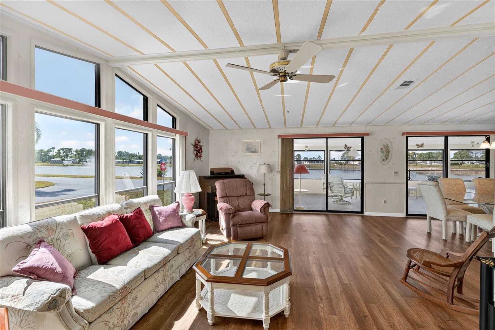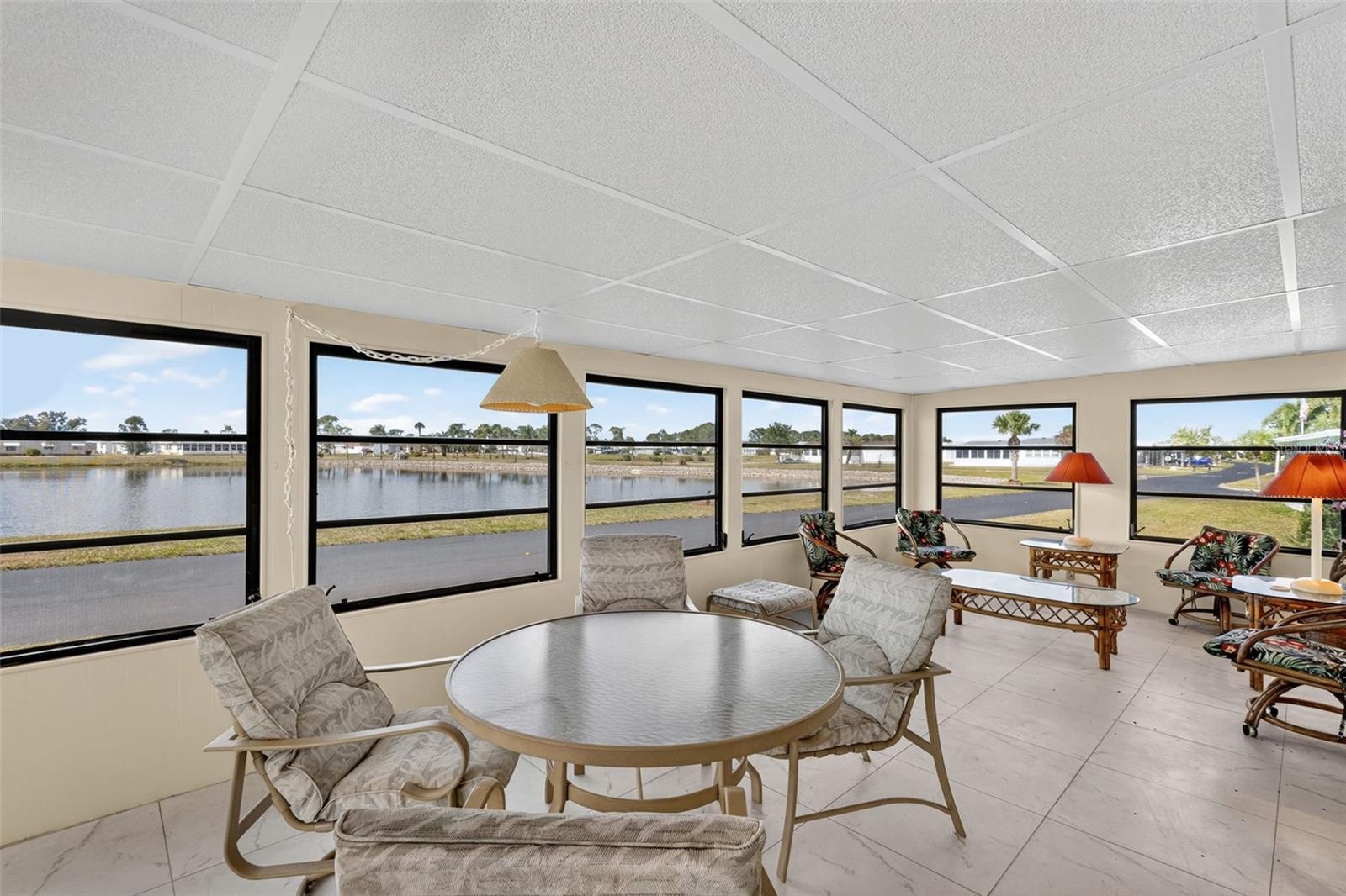 Grab your piece of paradise in La Casa, a vibrant 55+ community. This must-see home is on a substantial lake corner lot and offers stunning views of Lake Escondido, one of our larger lakes, along with glorious sunset views. You will have more than enough room to entertain guests in the spacious living/dining room combination with sliding doors opening onto the large Florida room with a wall of windows facing the lake. In addition to the open kitchen, the primary bedroom, bathroom and walk-in closet are substantial. The secondary bedroom and separate guest bathroom are also quite generous in terms of space. Vaulted ceilings in the living room and dining room. This home has had many upgrades such as a new shingle roof in 2023; new plywood floors in 2022 along with new waterproof laminate throughout the house; new H-vac system in 2020; porcelain floors installed in 2024 in the lanai, screened room and front porch; and the large rebuilt utility room w/washer, dryer, deep sink, work bench and storage. Enjoy this beautiful home in La Casa, a resident-owned community for persons 55+. La Casa offers the ultimate lifestyle on Florida's gulf coast, located between Sarasota and Fort Myers, welcoming you to the good life with loads of recreation, 2 clubhouses, 2 heated pools. There is no shortage of activities in La Casa. Come and see all that La Casa has for the enjoyment of its residents and guests.
