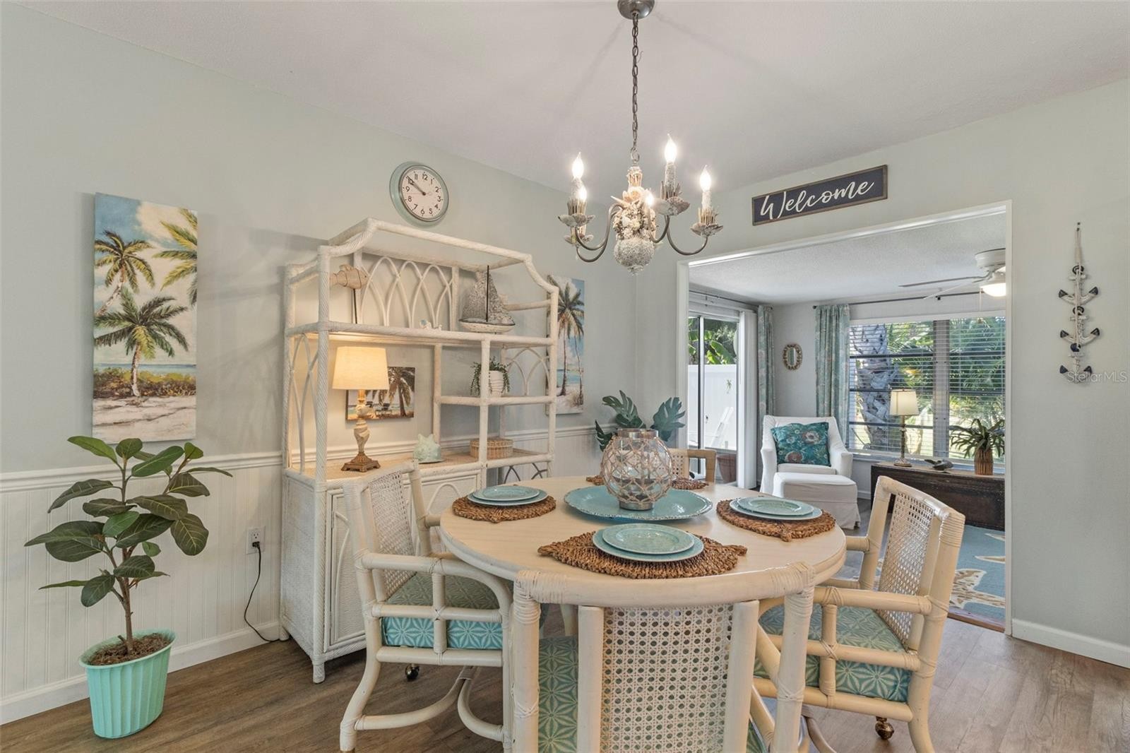 Welcome to this BEAUTIFULLY updated and well-cared-for 2-bedroom, 2-bath home in the quiet Bay Point neighborhood of Nokomis. Featuring an oversized one-car garage and a circular driveway with plenty of space to accommodate your RV or boat. The non-deed-restricted community offers flexibility and convenience with the Bay Point Park just down the street providing water access for swimming, fishing, and kayaking. Enjoy being only minutes from beaches, golf courses, shopping, and the charming downtown of Venice. Recent updates include a NEW AC, a NEW ROOF, NEW vinyl plank flooring, and an UPDATED kitchen. The fenced in backyard features a cozy patio and seating area with shade and party lights, perfect for relaxing and entertaining. This home is being sold COMPLETELY FURNISHED AND TURNKEY!! Just bring your toothbrush and start enjoying Florida living!