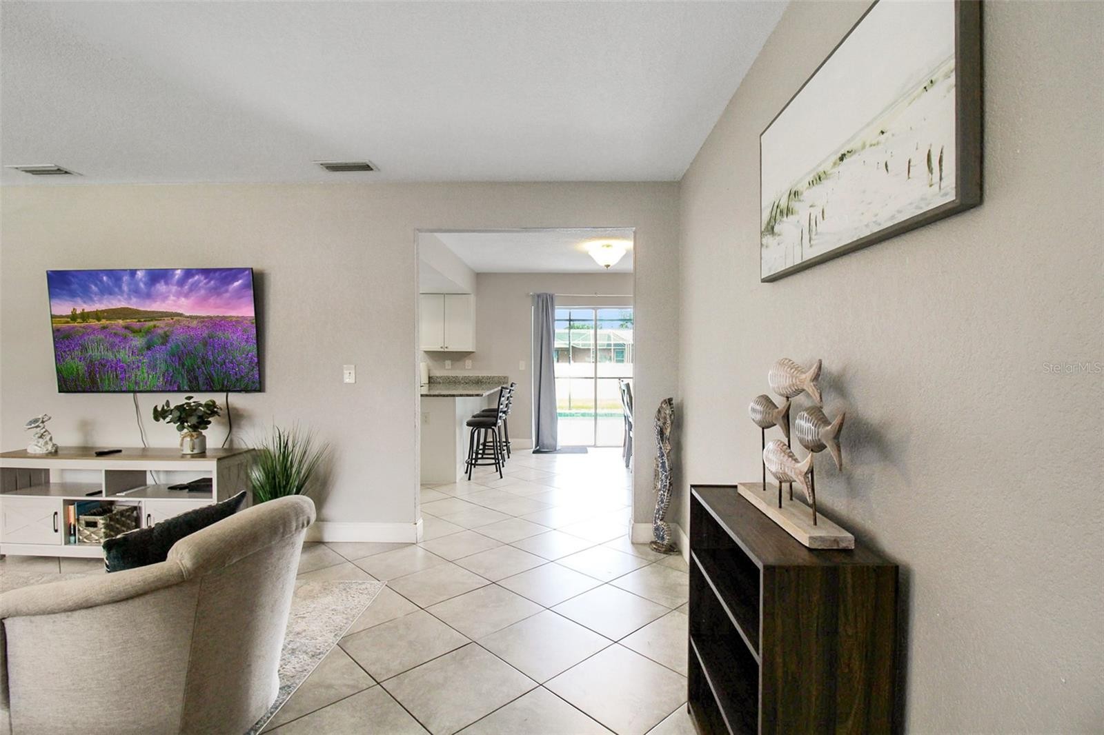 Welcome to your perfect Sunset Splash! Professionally managed by Gulf Coast Vacation Rentals. This beautiful 3-bedroom, 2-bathroom private pool home offers the ideal blend of comfort, relaxation, and coastal charm—all just a short drive from the world-renowned white sands of Siesta Key Beach, vibrant downtown Sarasota, and top attractions like St. Armands Circle, The Ringling Museum, and the Marie Selby Botanical Gardens. Upon entry, you'll be welcomed into a light and airy open-concept space designed for easy living. The spacious living room invites you to unwind after a day of exploring the Gulf Coast, with plenty of comfortable seating and a large TV for entertainment. The kitchen is a chef’s delight, featuring stainless steel appliances, expansive countertops, and three barstools perfect for casual meals or morning coffee. Just adjacent, the dining table seats up to six, making it the perfect spot for family dinners or game night. Slide open the glass doors to reveal your private outdoor oasis. Enjoy the Florida sunshine lounging beside the large free-form pool, or dine alfresco at the outdoor dining table while surrounded by lush tropical landscaping. The primary bedroom is a spacious retreat with a king-size bed and an additional twin-size bed, ideal for families or extra guests. It also features an en-suite bathroom with a large vanity and a walk-in shower. The second bedroom includes a cozy queen-size bed and plenty of room to relax, while the third bedroom also offers a queen-size bed with inviting décor. The second bathroom is thoughtfully designed with a large vanity and a shower/tub combo to accommodate guests with ease. Whether you're soaking up the sun poolside, exploring Sarasota’s vibrant arts and dining scene, or enjoying a beach day on the Gulf, this home offers the perfect base for your Florida vacation. House Rule: No smoking. No burning candles inside of lodging. No parties. Not Pets. THERE IS NO POOL HEATER.
