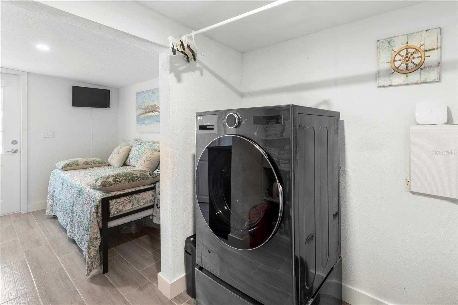 Land owned! Are you sure this isn’t a Tiny Home? It certainly doesn’t look or feel like a mobile home. This completely remodeled residence is stunning inside and out, with upgrades you truly have to see to believe. Everything is new—from the roof down. Built with 2x6 studs, plywood decking, and a reinforced rubber membrane roof, this home was designed for durability and peace of mind. The electrical system has been fully updated with a new main panel, surge protector, and sub-panel. There were countless upgrades completed in 2024, including stainless steel appliances with a washer/dryer combo, real wood shaker-style kitchen cabinets with soft-close features, and absolutely no paneling anywhere in the home. Instead, you’ll find textured walls and ceilings throughout, modern high-hat lighting, and stylish shiplap accent walls. All new shades have been installed as well. The cathedral ceiling in the entryway creates an open, airy feel that welcomes you in immediately. Tile flooring that looks like wood planking flows throughout the home, combining beauty with durability. The AC system was also replaced in 2024. Outside, the home features low-maintenance vinyl and aluminum siding. And the icing on the cake? This home comes fully furnished—everything stays, including the wall-mounted television and a Tempur-Pedic adjustable bed complete with safety lighting for nighttime comfort. This two-bedroom home also includes a bonus room that’s perfect for guests, a home office, den, or hobby space, along with a large laundry and storage area. You will be amazed and delighted to own this truly special, one-of-a-kind Tiny House. Looking for an active lifestyle? Fair Lane Acres offers an exceptional social and community atmosphere with pickle ball courts, shuffleboard, a heated pool, and a clubhouse full of activities. And with an HOA fee of just $135 per month, Florida living has never looked better. Call today to schedule your private showing—and don’t forget your checkbook. You’re going to want this home the moment you walk through the front door. ??