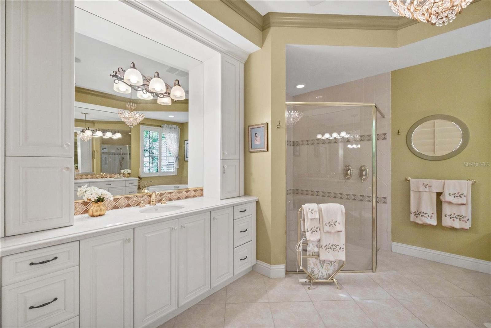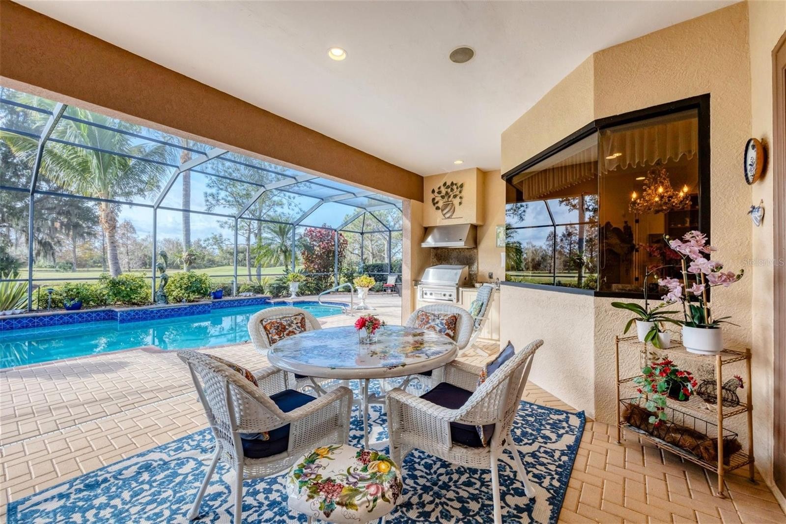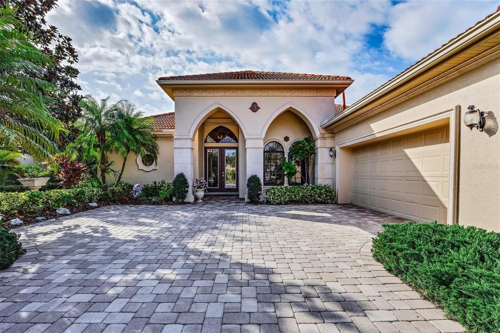 7042 Vilamoura Place is a distinctive single-family home located in the highly desirable, maintenance-free Vilamoura community within the Lakewood Ranch Country Club. This is located in the award-winning master-planned community. Built in 2004, this Spanish Mediterranean residence sits on beautiful golf course lot. Over 10,000 sq ft of land, fronting the championship golf course, offering serene preserve views and the coveted Southern exposure. The spacious home encompasses about 2,879 sq ft with an open floorplan, 2 bedrooms, a den and 2.5 bathrooms. The custom features include a chef’s kitchen with center island, dual walk-in pantries, and wood cabinetry. Its design offers a breakfast bar and a morning room with aquarium glass. The formal living and dining rooms have high ceilings, transom windows and crystal chandeliers. The owner's suite has separate vanities, 2 closets and the continued distinctive European flair that is throughout the residence. The den offers amazing views and has built-ins. It could easily become a 3rd bedroom. The 2nd bedroom is en-suite. Outdoor living is a highlight with a screened, heated pool and direct access to the powder room. It also includes an oversized 2-car garage with an air-conditioned storage room. An owner enjoys the amenities of a gated golf community with proximity to shopping, dining, top-rated schools, and Florida’s Gulf Coast beaches. There is an optional golf membership with access to 4 courses, tennis and pickleball, dining and social activities as well as a fitness center.