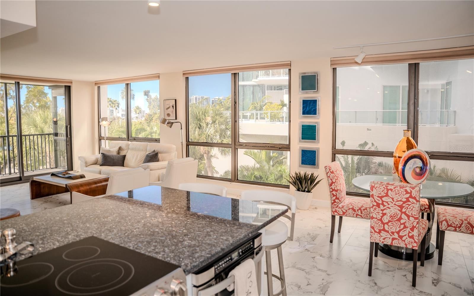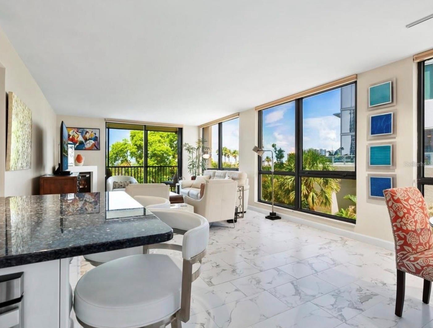 FOR LEASE in Sarasota at the Essex House. Turn key LUXURY Furnished ANNUAL RENTAL. Relax and enjoy the beautiful SARASOTA BAY WATER VIEWS in this elegant CORNER RESIDENCE AT ESSEX HOUSE. Perfectly positioned on Sarasota's DOWNTOWN Bayfront. This spacious two-bedroom, two-bath home offers an exceptional combination of location, privacy, and lifestyle ideal for an executive, professional, or long-term tenant. Direct view of Sarasota Bayfront from living-room and both spacious bedrooms. This rarely available gem is a desirable 2BR/2BA corner unit with front balcony. The main bedroom offers a king bed and en-suite bathroom and the second bedroom functions as dual office and guest room with a queen/sleeper sofa. Exceptional amount of interior closet and storage space as well as an ample space locked storage unit located on the ground floor. Panoramic floor to ceiling windows. Designer furnishings and upscale finishes with porcelain marble flooring throughout complete this impressive stylish home. Updated kitchen, baths, and in unit full-size laundry. Step out to shopping, art galleries, theaters, the opera, and the many fine dining restaurants. Sarasota's best downtown living. State of the art fitness center, large salt water heated community pool and a beautiful social room. One assigned parking spot in the parking garage. HOA APPLICATION FEE: $150. PETS: Pets not allowed. LEASE TERM: Available beginning 2/15/26 for a 12-month lease. Included in rent is Xfinity Comcast Basic Cable and Wi-Fi Internet, water, sewer, garbage. Call today to schedule a showing.