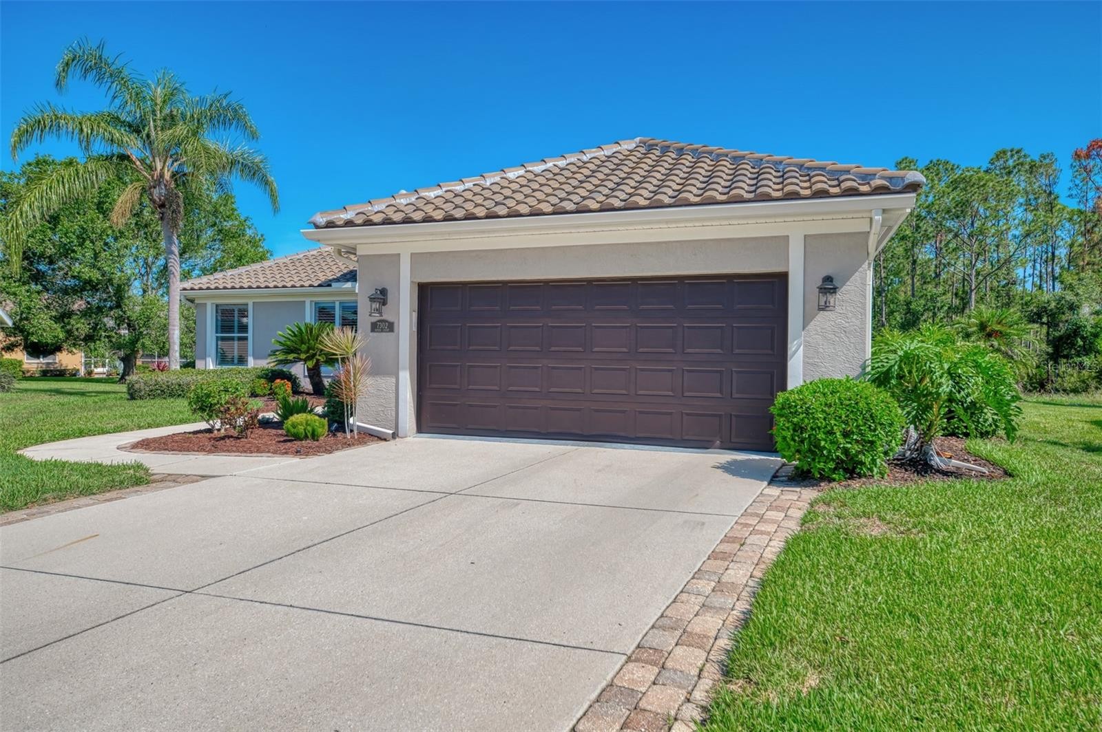 GORGEOUS TROPICAL LANDSCAPE VISTAS PROVIDE THE PERFECT SETTING FOR THE RELAXED FLORIDA LIFESTYLE! You will love the privacy of the Cul-de-Sac location backing up to the wooded Ritz Golf Club property. Light, bright Great Room overlooks your expansive screened lanai and pool with serene green space views, welcoming you to your private oasis to enjoy with family and friends, or to simply relax! Expansive heated 15' x 28' saltwater pool with cascading waterfall bowls, vibrant evening illumination and upscale travertine deck was added in 2022. Beautifully finished in neutral tones with 10' and tray ceilings, tile floors in main living areas, newer upgrade carpet in bedrooms, granite countertops and plantation shutters thru-out. Great Room design incorporates dining area and opens to your tastefully designed kitchen featuring wood cabinets with crown molding, sparkling granite countertops, tile backsplash, oversize single level island with breakfast bar for casual dining, stainless steel appliances and walk-in pantry. Retreat to the owners suite with tray ceiling, spacious walk-in closet, ensuite bath with tiled shower, linen closet and dual vanities with granite countertops. The desirable split bedroom and bath plan is ideal for family or guests. Convenient interior laundry room includes upper cabinets for extra storage and additional upgrades include impact windows on front of the home, easy close Nautilus roll down shutters for the balance of windows and sliders, and newer garage door opener for your peace of mind. This delightful home features radiant barrier in attic, Low-E dual pane windows, utility sink in garage, gutters and security system. Tuscan inspired architecture, tile roof, brick paver walkway and driveway and gorgeous tropical landscaping complete this wonderful home. Stylish Turnkey Furnishings from Crate & Barrel, Macy's, Houseworks and Leaders Outdoor Furniture is available separately for convenient and easy move-in. Ideally located in Country Club East with maintenance free landscaping and 2 amenity centers including Belleisle Resident Clubhouse, Pool & Spa and The Retreat with Gathering Room, Fitness Center and Resort Style Pool for outdoor and social gatherings. Live in the #1 Multi-Generational community in the country where you can enjoy recreational pursuits, boutique shopping and dining, farmer's market and an abundance of events at Lakewood Main Street and Waterside Place. You are just minutes to UTC Shopping Mall, Nathan Benderson Rowing Park and I-75 to travel north and south and close proximity to downtown Sarasota cultural venues, diverse cuisine and our gorgeous Gulf Coast Beaches.